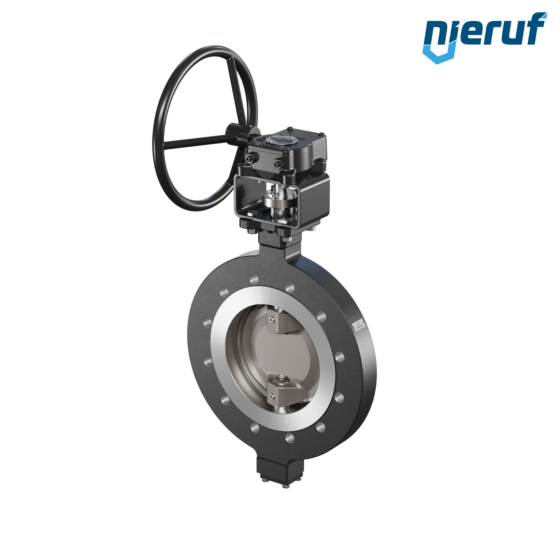 3-fach exzentrische Absperrklappe Gewindeaugen AK14 DN 200 PN16 mit Gehäuse aus Stahlguss max. 40 bar Getriebe