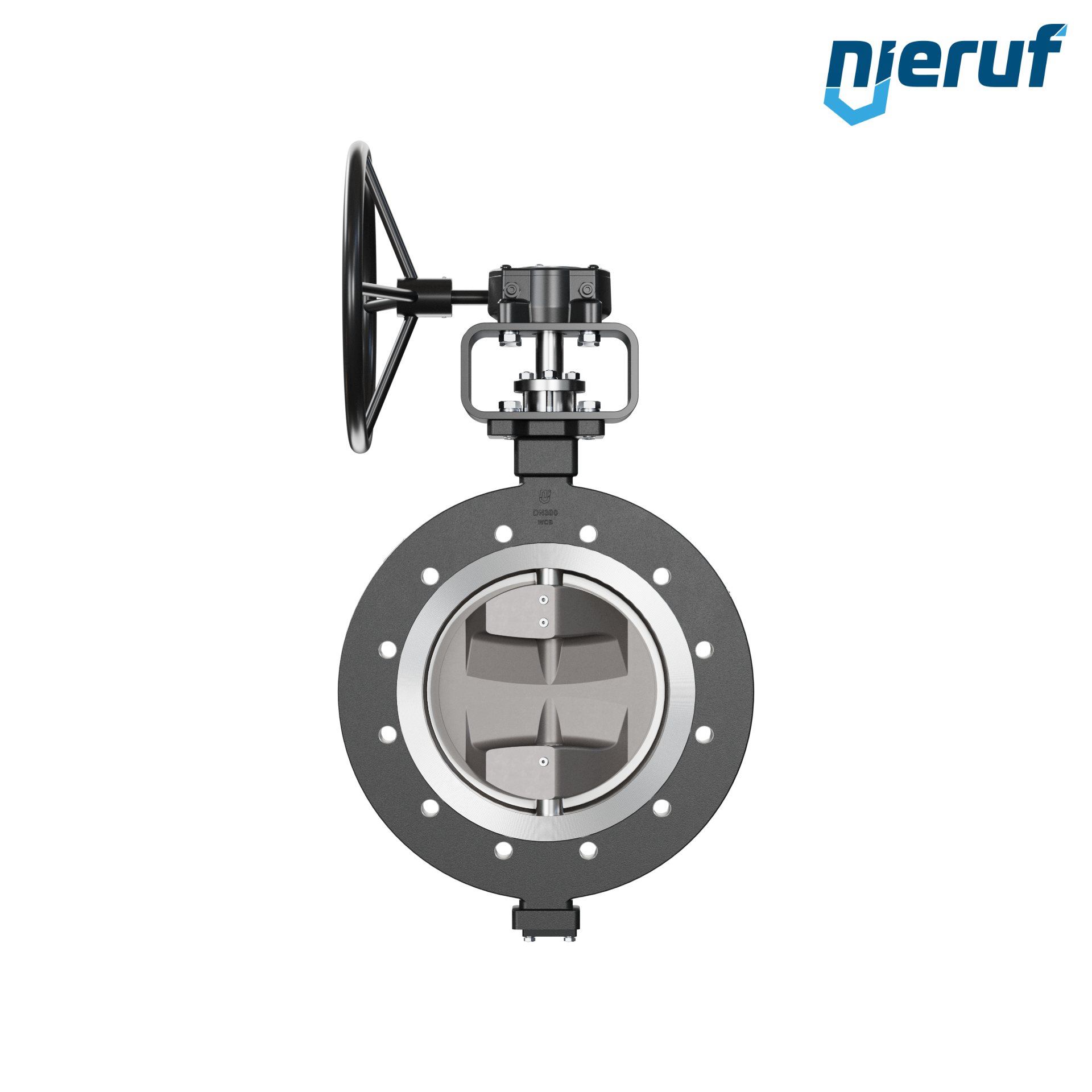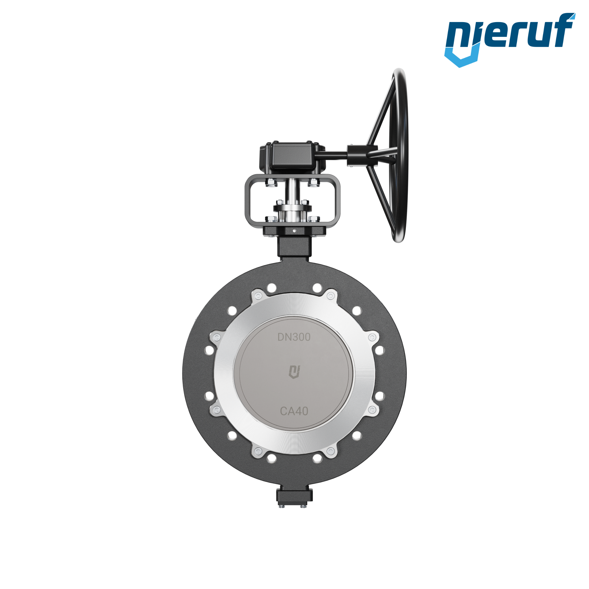 3-fach exzentrische Absperrklappe Gewindeaugen AK14 DN 300 PN16 mit Gehäuse aus Stahlguss max. 25 bar Getriebe