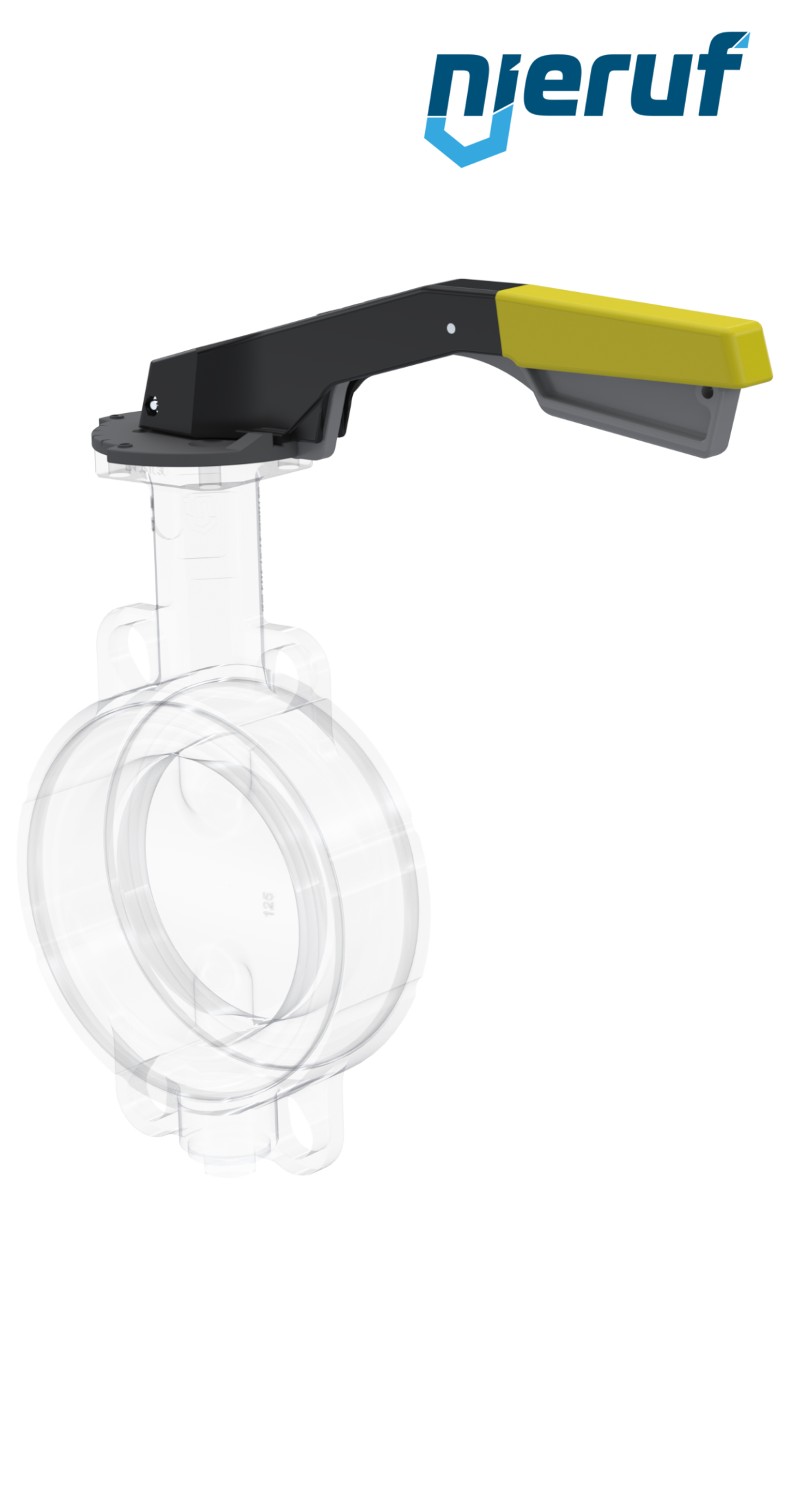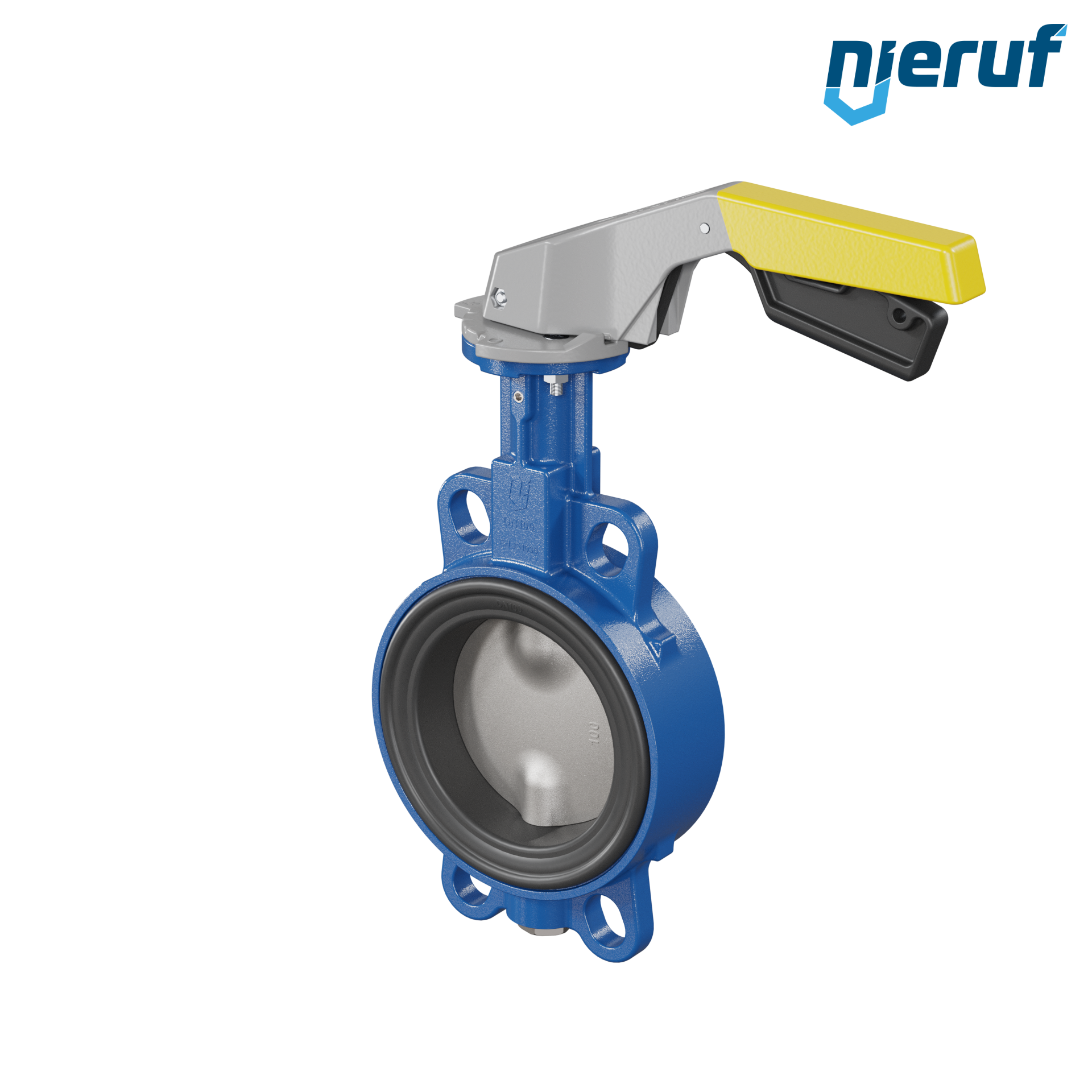 Absperrklappe DN 100 PN6-PN10-PN16 & ANSI150 mit Zentrieraugen aus Sphäroguss mit Handhebel gelb NBR-70-schwarz DVGW Gas