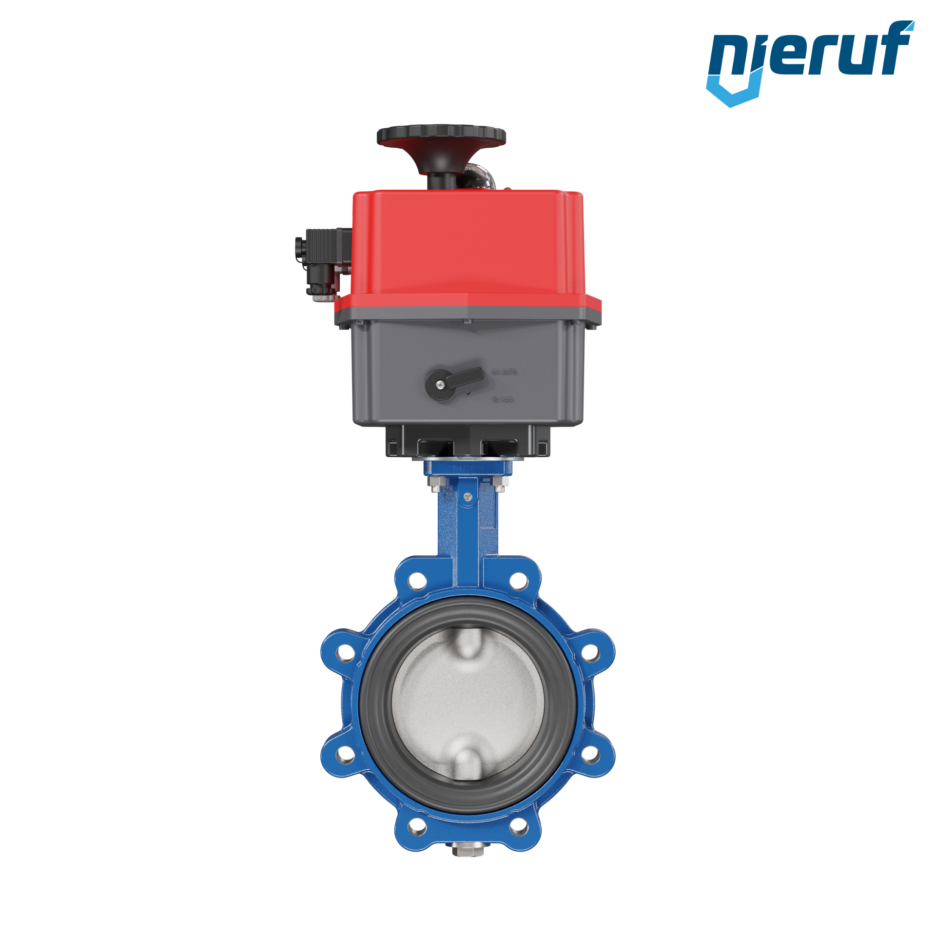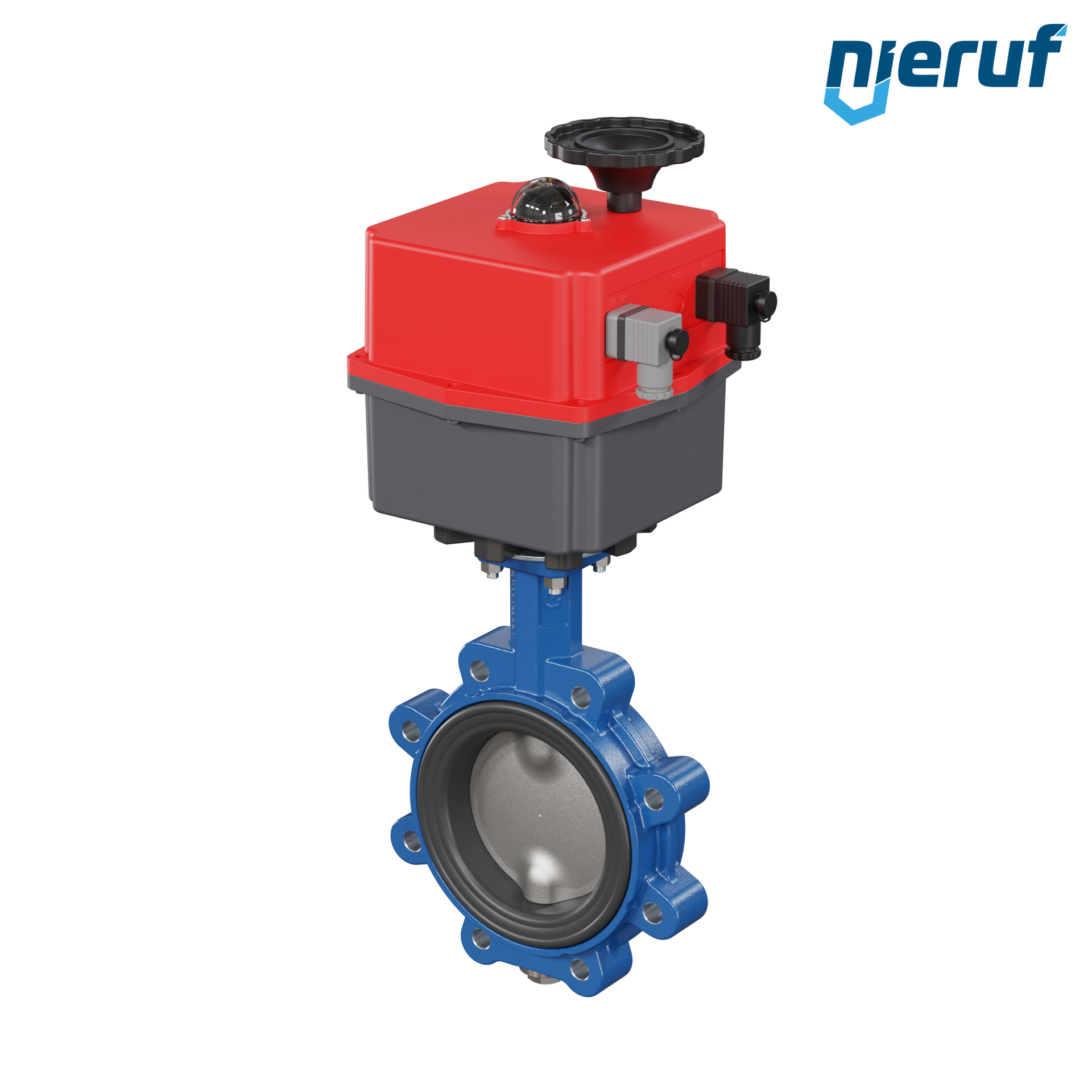 Absperrklappe DN 125 PN10-PN16 mit Gewindeaugen Gehäuse aus Sphäroguss mit elektronischer Schwenkantrieb 24-240V AC/DC Manschette aus NBR-70-schwarz DVGW Gas