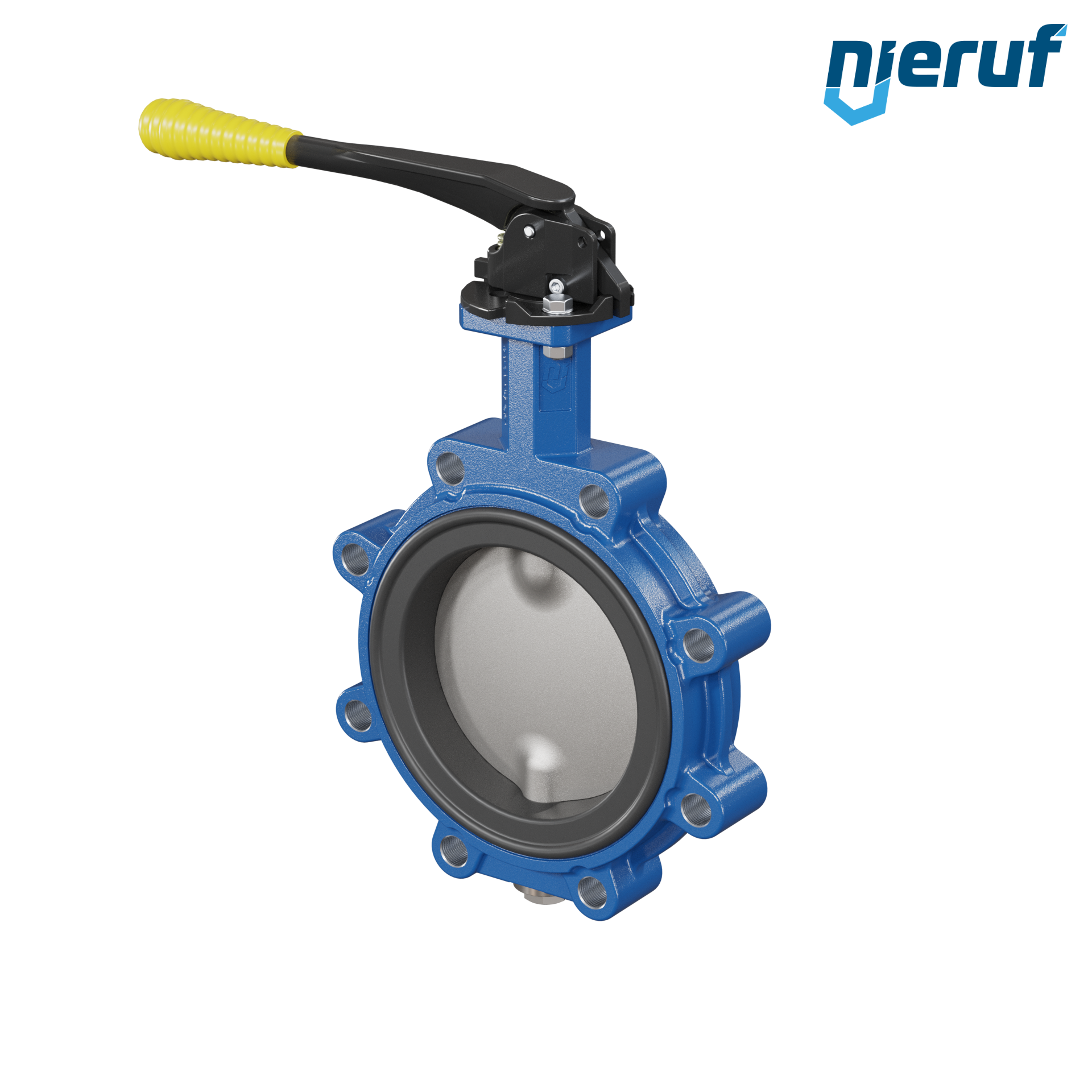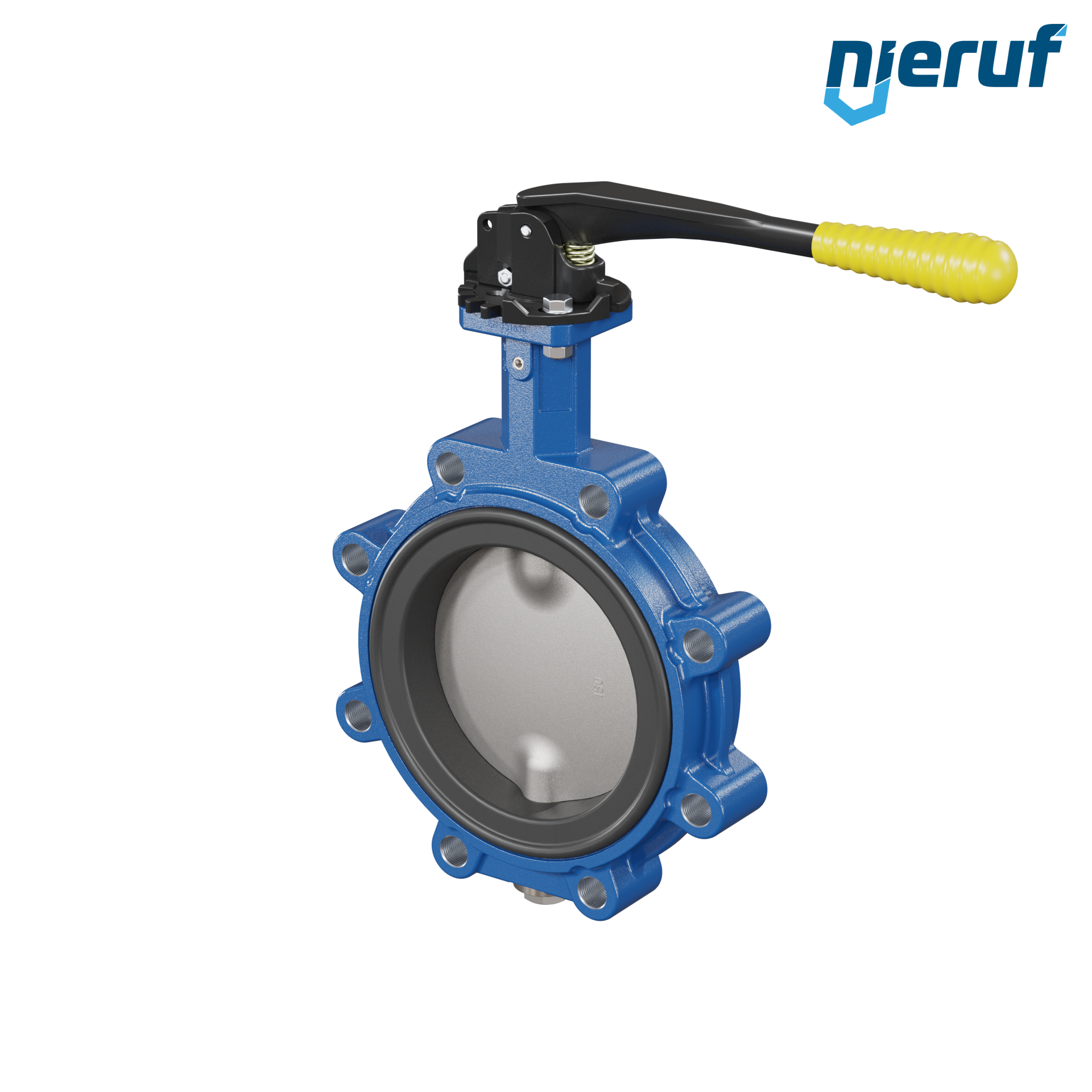 Absperrklappe DN 150 PN10-PN16 mit Gewindeaugen aus Sphäroguss mit Handhebel mit gelber Hülse NBR-70-schwarz DVGW Gas