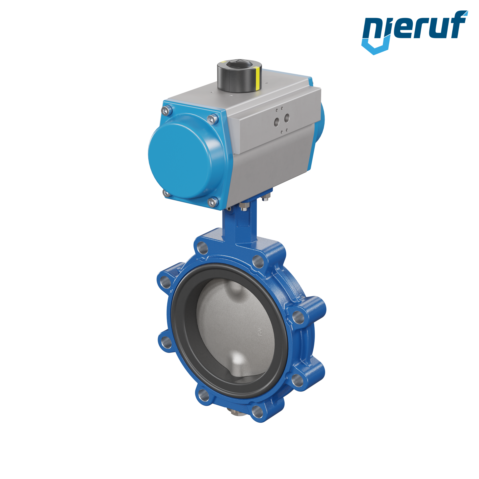Absperrklappe DN 150 mit Gewindeaugen Gehäuse aus Sphäroguss mit pneumatischer Schwenkantrieb doppeltwirkend Manschette aus FPM