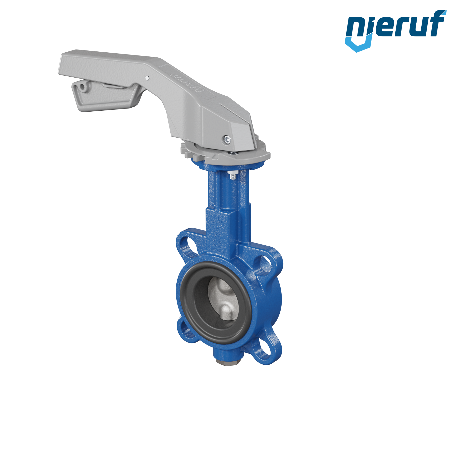 Absperrklappe DN 50 PN6-PN10-PN16 & ANSI150 mit Zentrieraugen aus Sphäroguss mit Handhebel grau EPDM Hochtemperatur & FDA