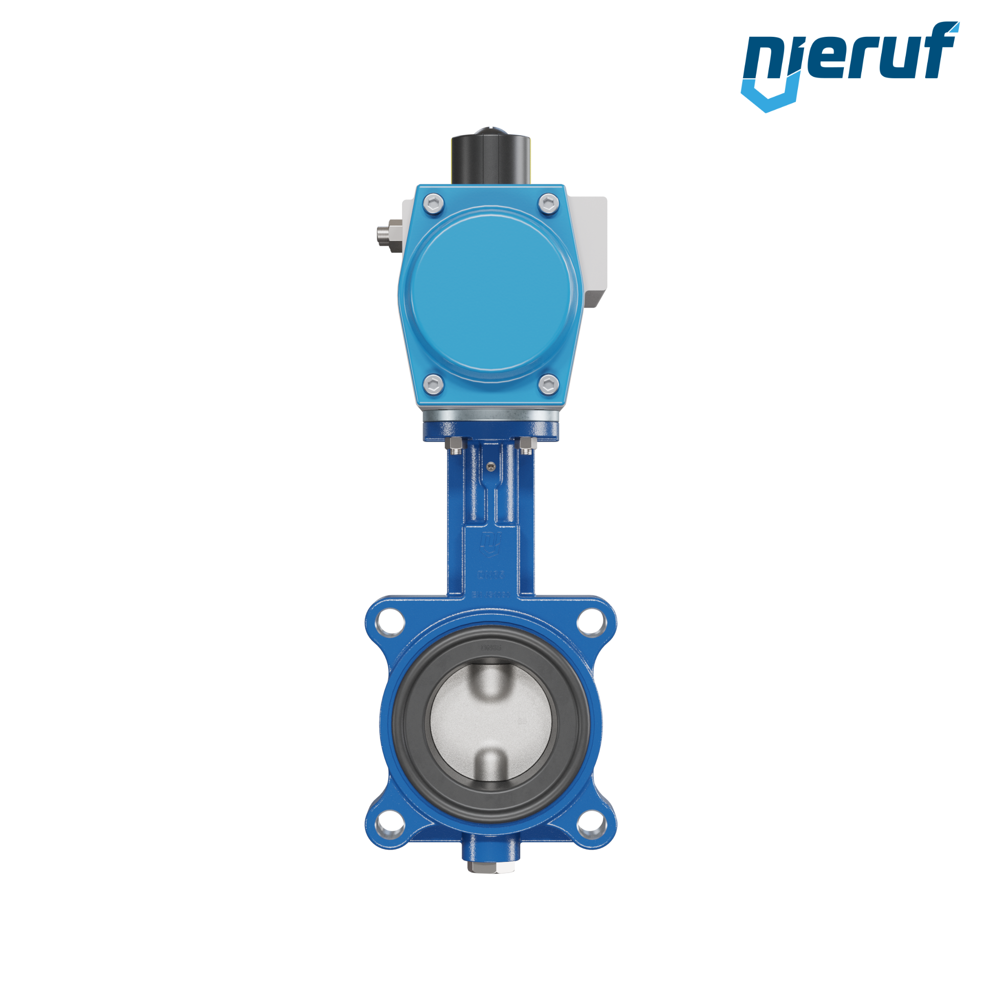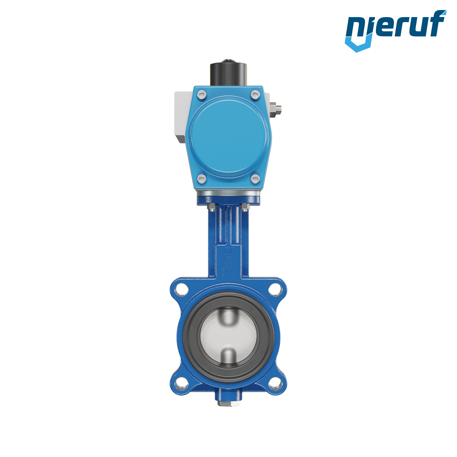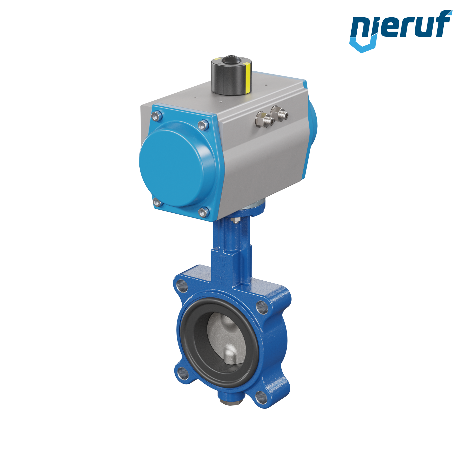 Absperrklappe DN 65 mit Gewindeaugen Gehäuse aus Sphäroguss mit pneumatischer Schwenkantrieb einfachwirkend federschließend Manschette aus EPDM DVGW Trinkwasser, WRAS, ACS, W270