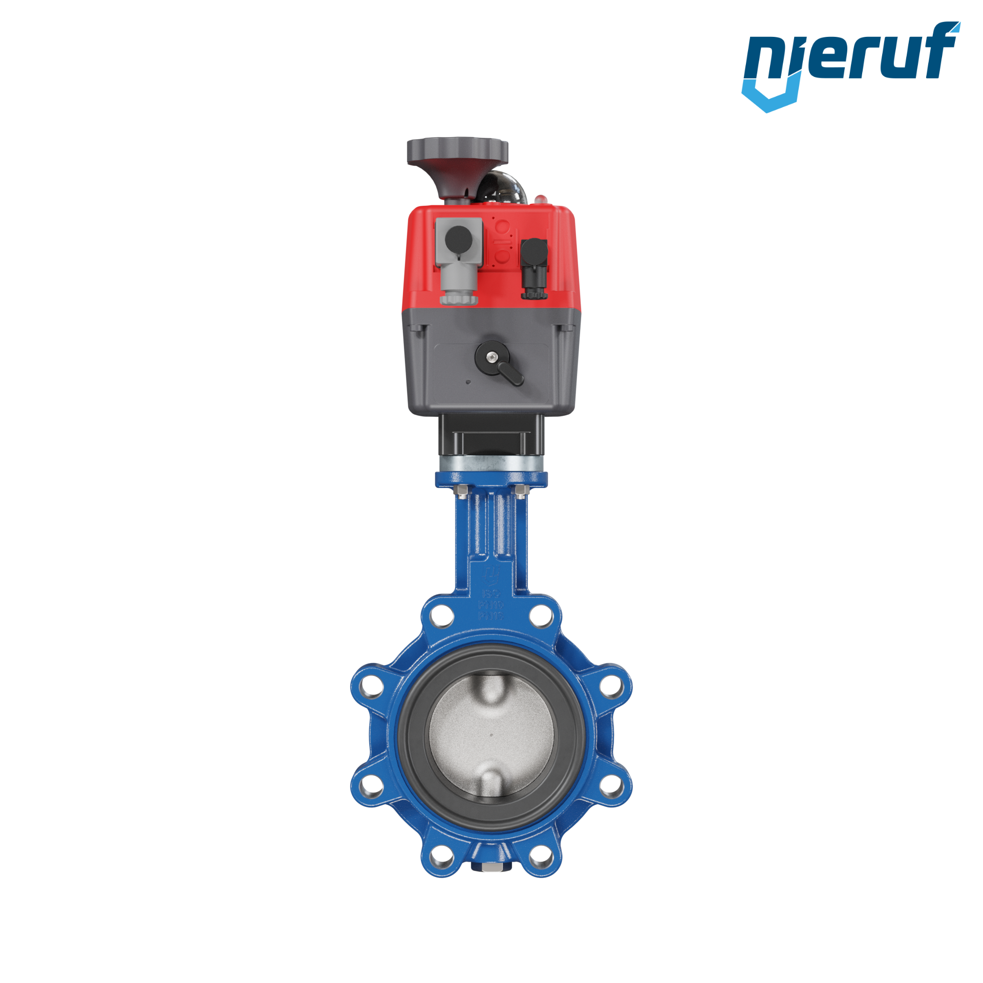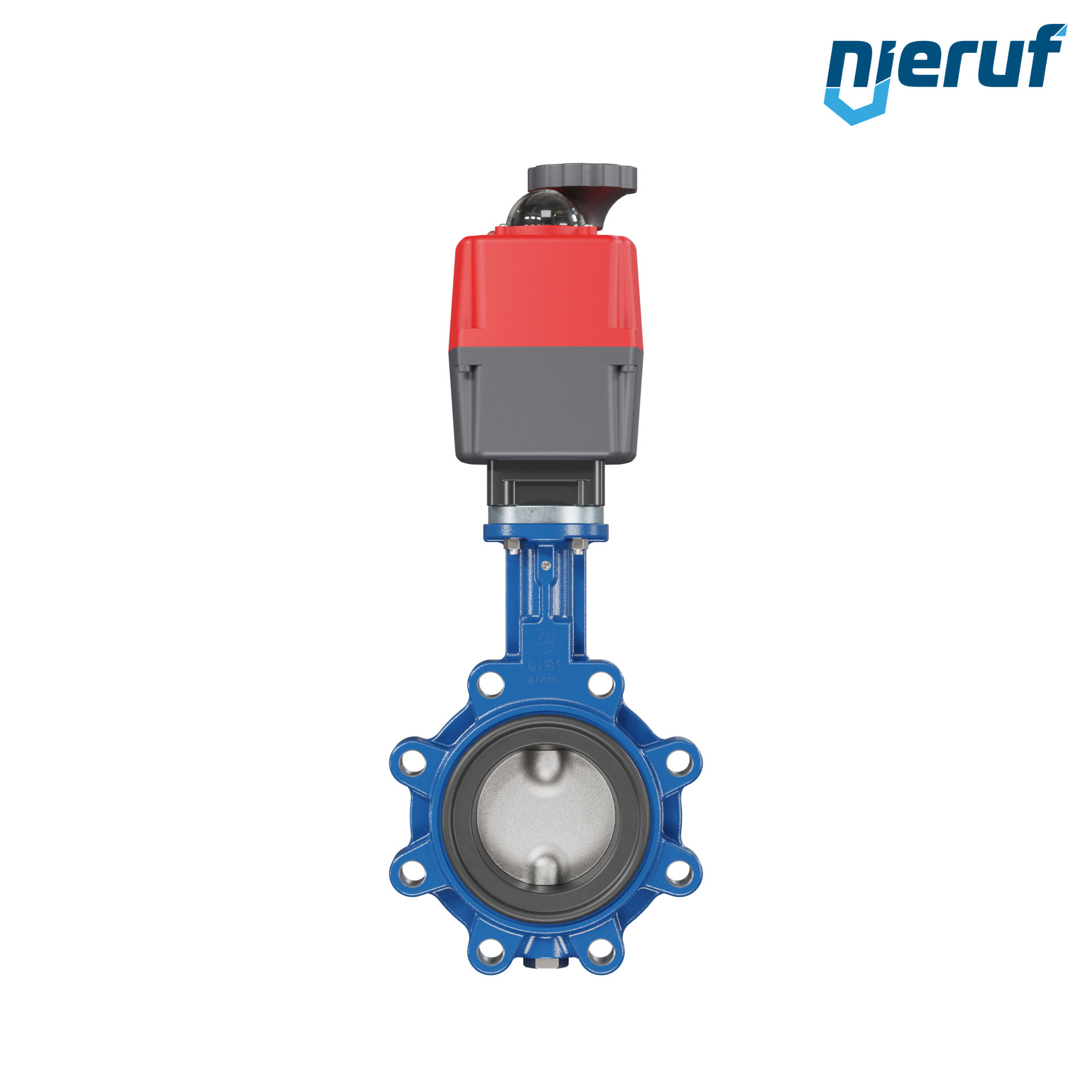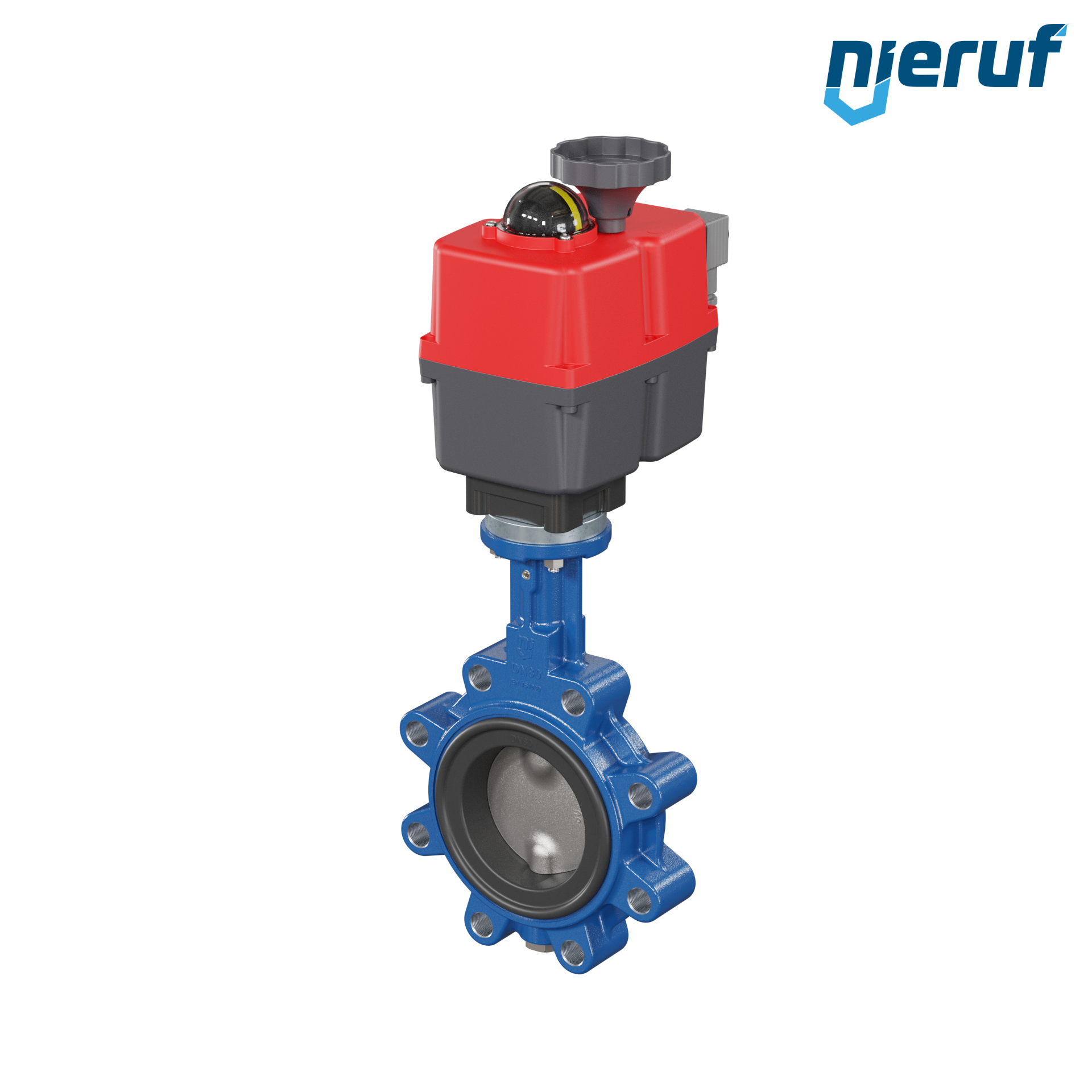Absperrklappe DN 80 PN10-PN16 mit Gewindeaugen Gehäuse aus Sphäroguss mit elektronischer Schwenkantrieb 24-240V AC/DC Manschette aus NBR-70-schwarz DVGW Gas