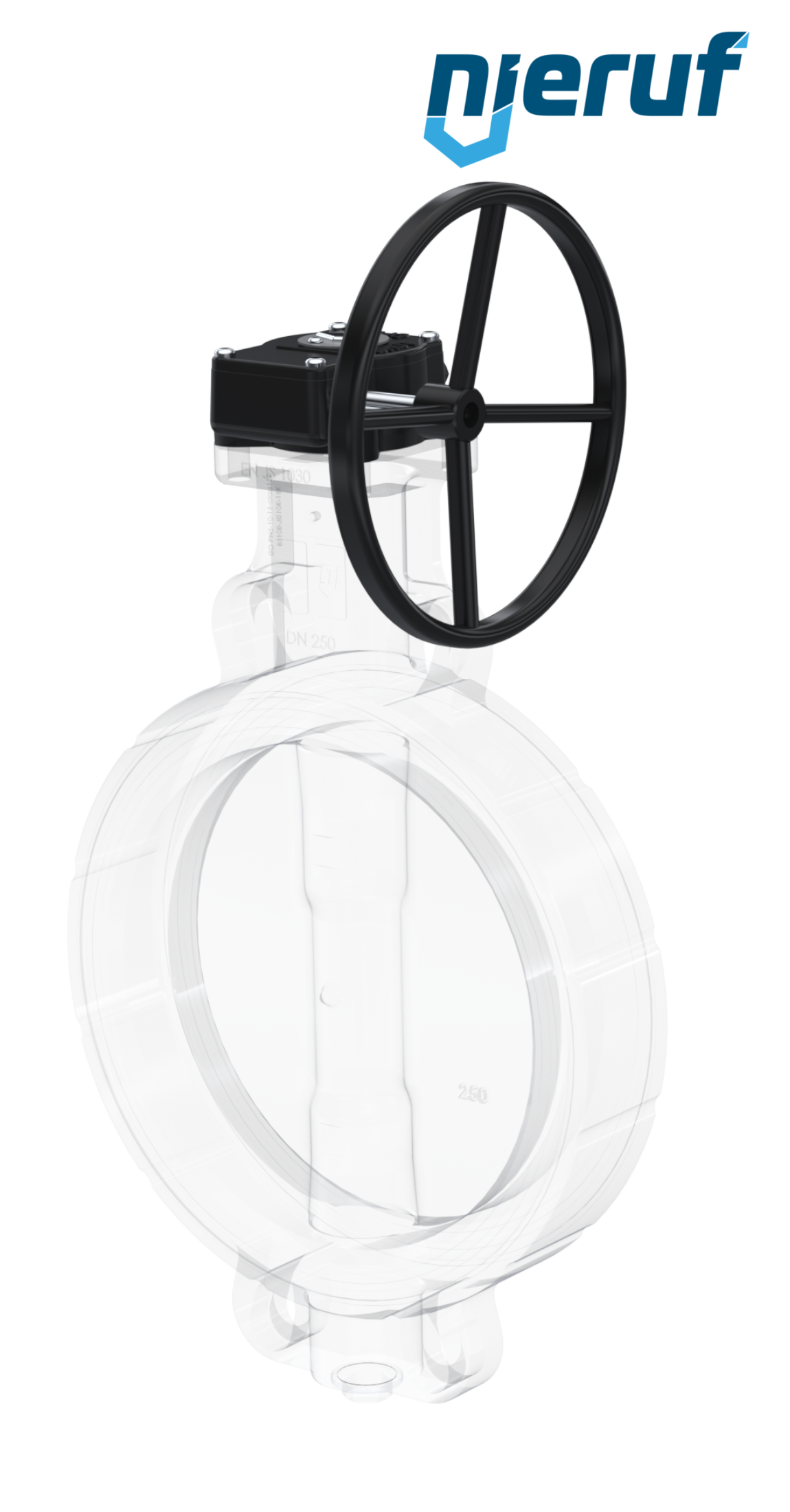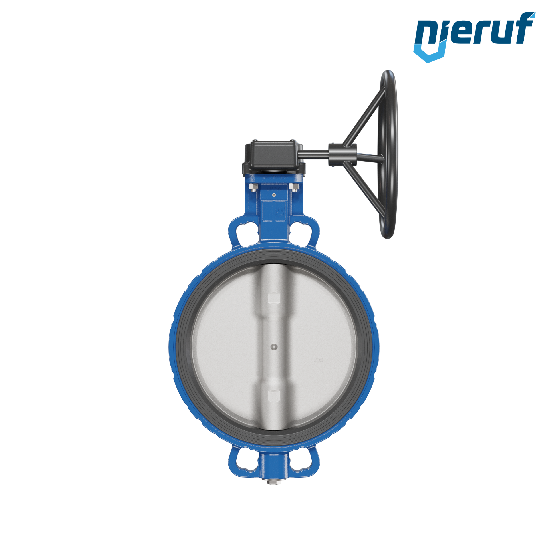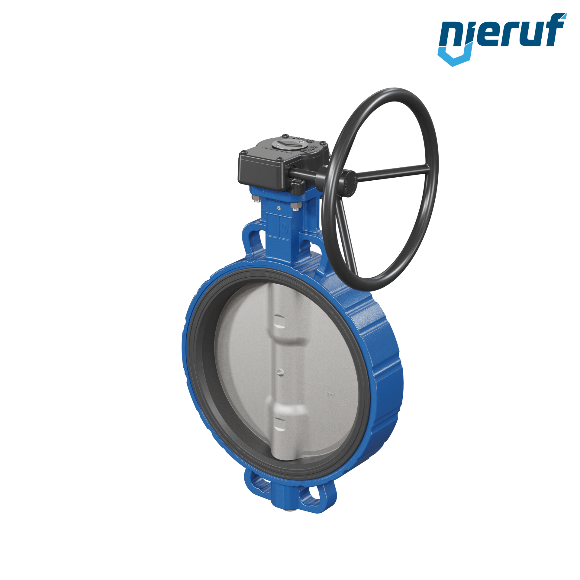 Absperrklappe DN 300 PN6-PN10-PN16 & ANSI150 mit Zentrieraugen aus Sphäroguss mit Schneckenradgetriebe NBR-70-schwarz DVGW Gas