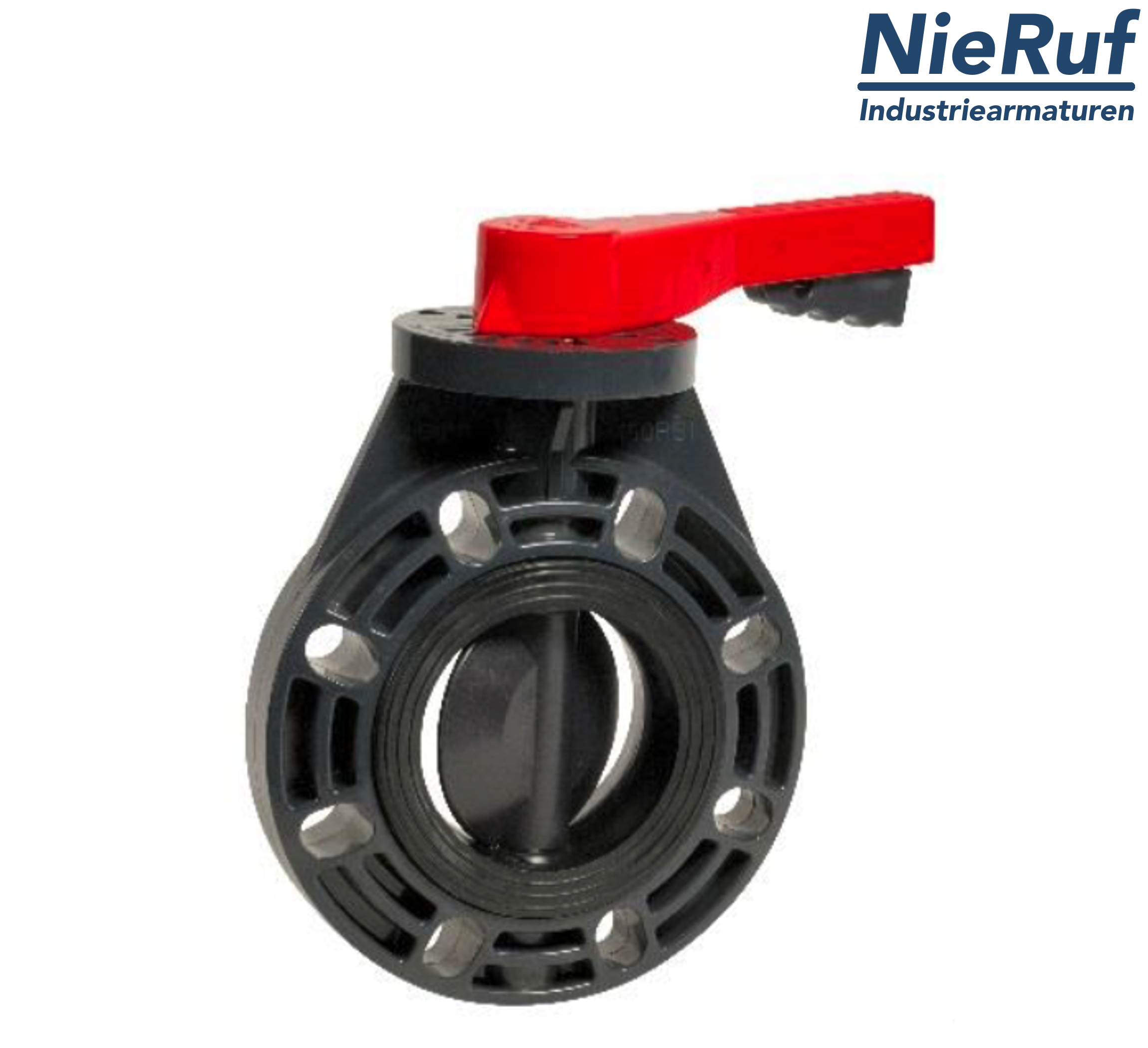 Absperrklappe-PVC-U DN 125 PN10 mit Zentrieraugen Gehäuse aus PVC-U Klappenscheibe aus PP-GF mit Handhebel und Dichtung aus EPDM