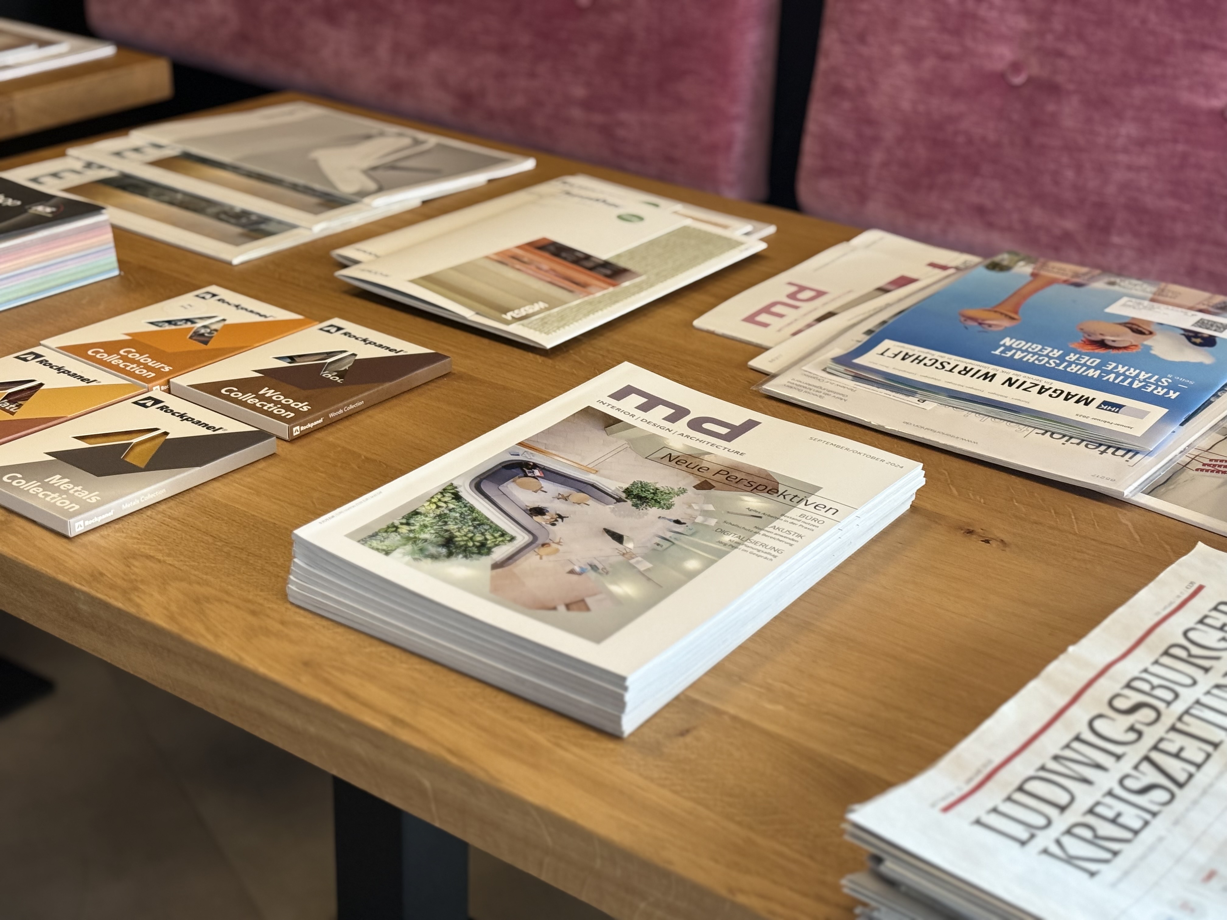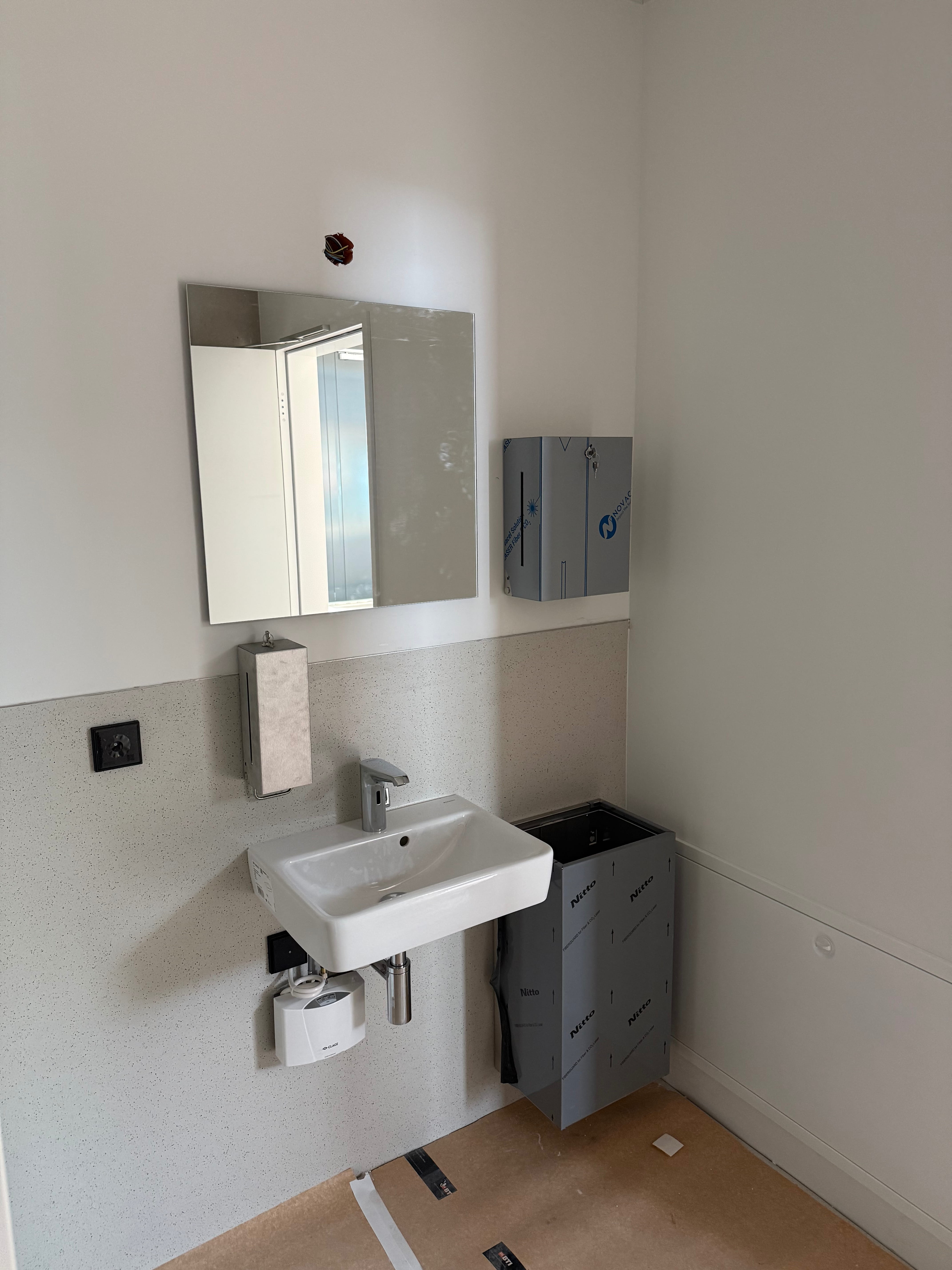 Für die Duschbereiche wählen wir aktuell die Farbe der Beschichtung aus. Dabei bleiben wir unserem Konzept treu: Im gesamten Gebäude wurde bewusst keine einzige Fliese verbaut – stattdessen setzen wir auf durchgängige, hochwertige Oberflächen.