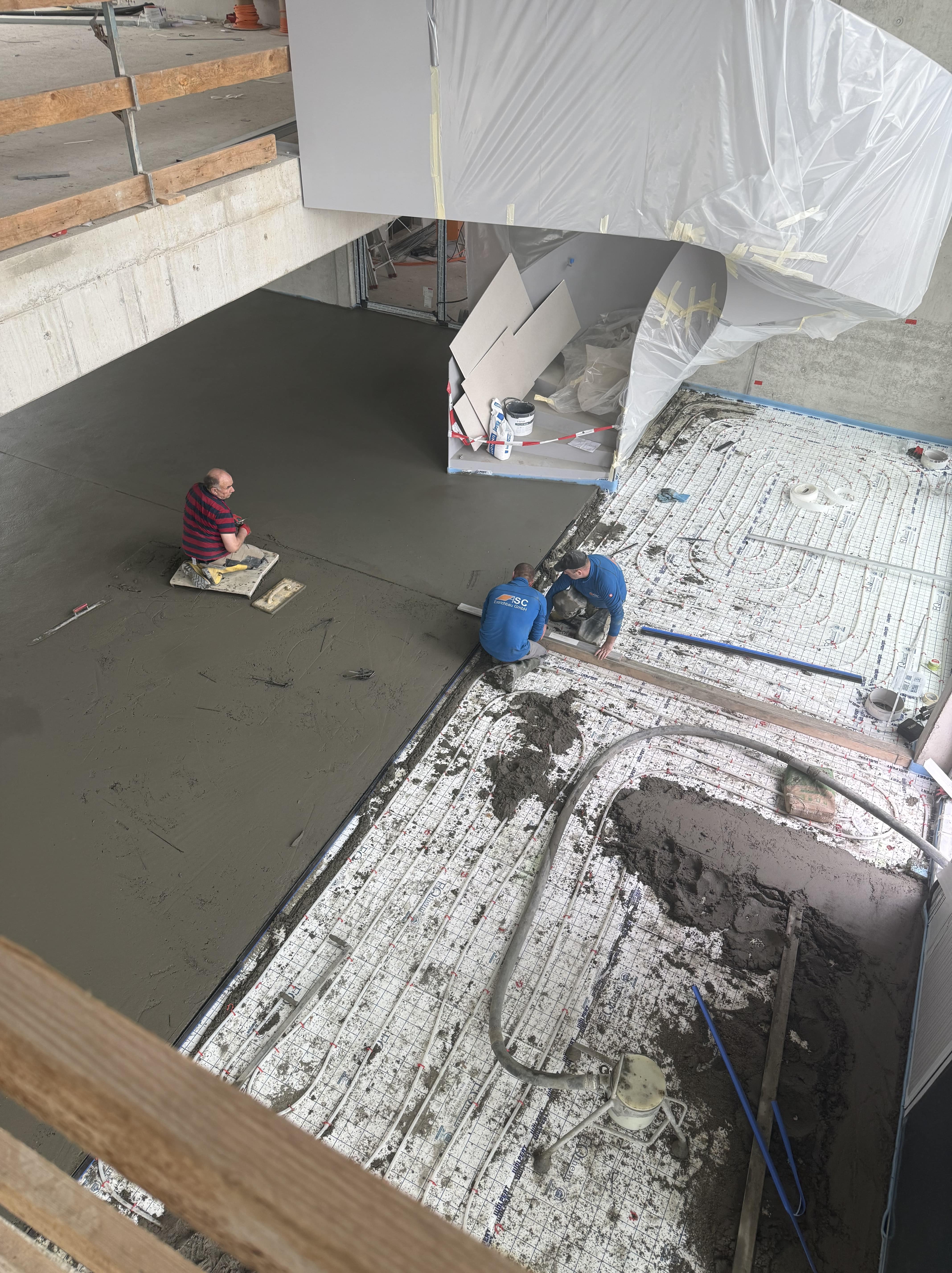 Innen geht’s rund – erste Estricharbeiten.