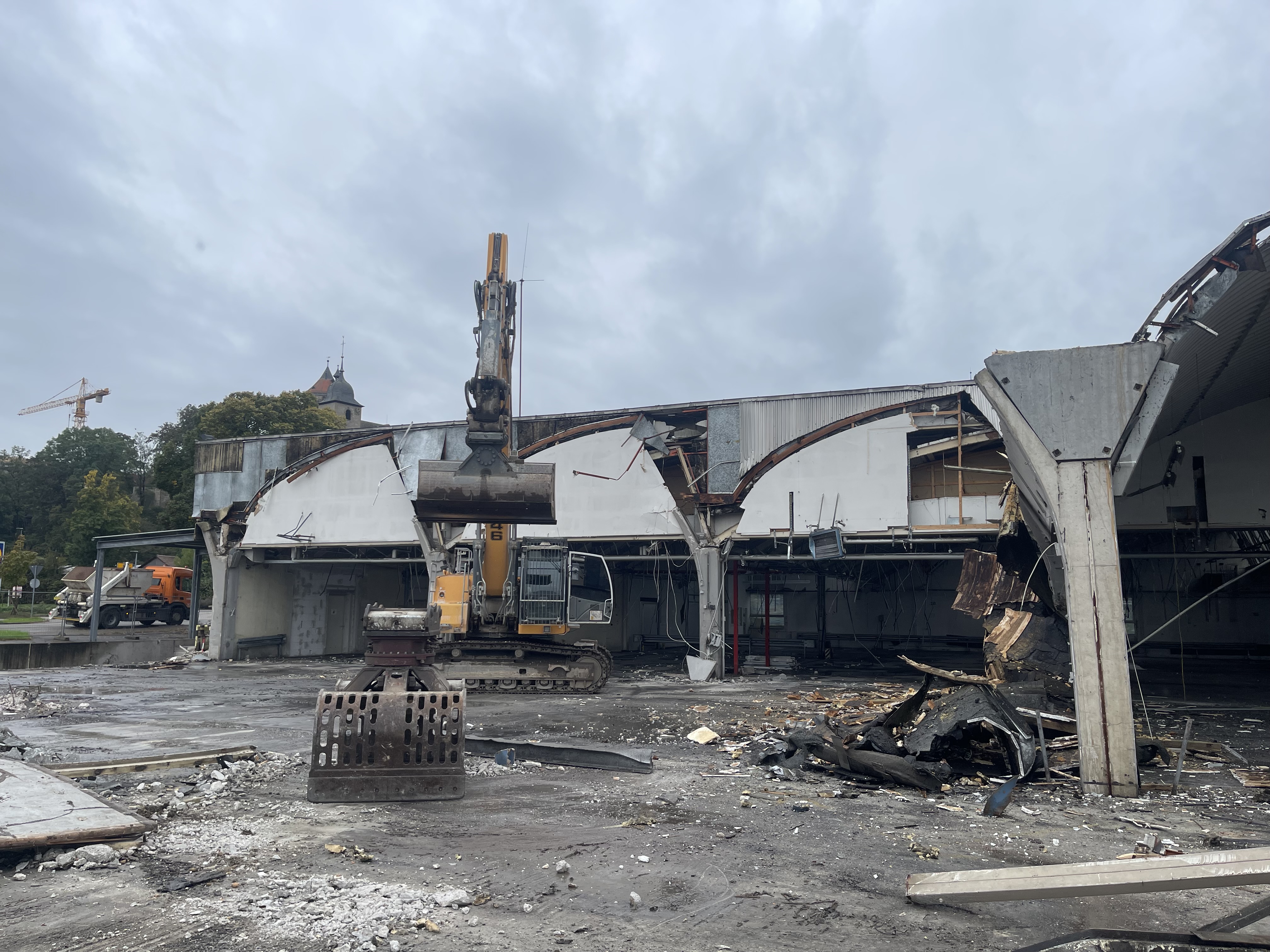 Der Abriss der alten Industriehalle hat begonnen. Ursprünglich in den 1960er Jahren als Näherei erbaut, war sie ein Symbol des wirtschaftlichen Aufschwungs. Generationen von Näherinnen arbeiteten hier, bis die Textilproduktion ins Ausland verlagert wurde und das Gebäude als Lagerhalle und Produktion für Autoscheiben genutzt wurde.