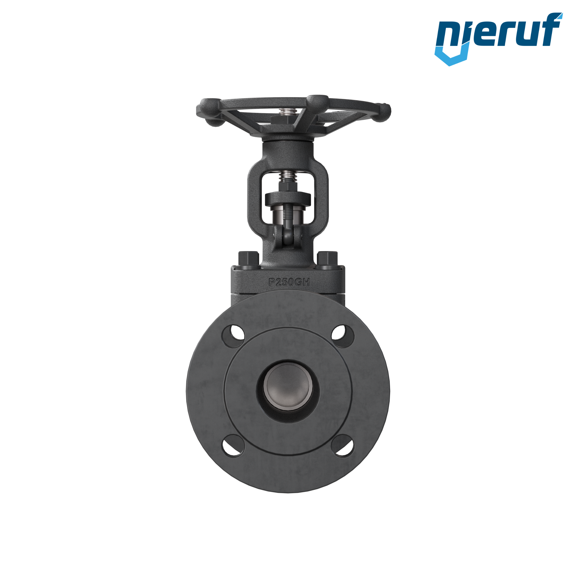 Kleinschieber in Durchgangsform mit Flanschanschluss und steigender Spindel sowie nicht steigendem Handrad. Mit TA-Luft 2021 und ATEX 2014/34/EU Zulassung.