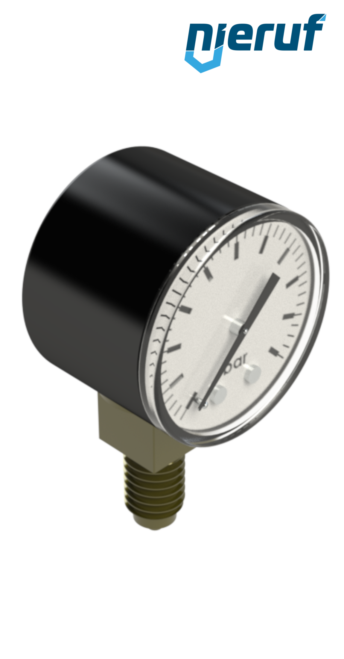 Manometer 0 - 4,0 bar G 1/4" Gehäusedurchmesser: 50 mm Stahl Anschluss: Aussengewinde, unten am Gehäuse aus Messing