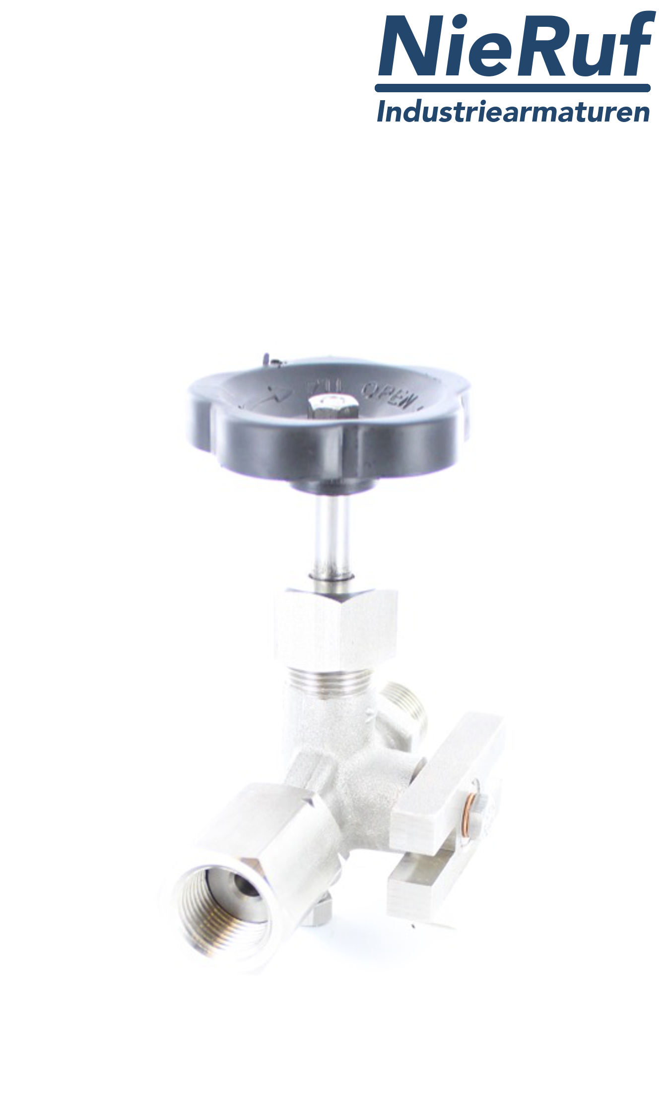 Manometerabsperrventil 1/2" Zapfen x Spannmuffe x Prüfflansch 60x25 mm DIN 16271 Edelstahl 1.4571 400 bar