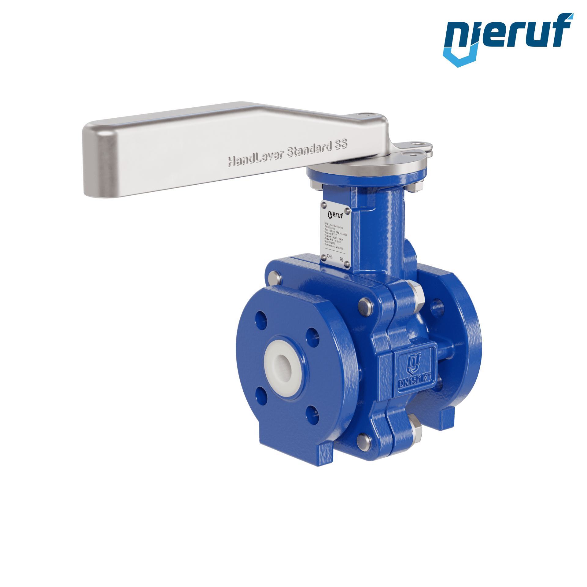 PFA-Flanschkugelhahn FK13 DN15 - 1/2" Zoll ANSI 150 aus Sphäroguss mit Hebelgriff