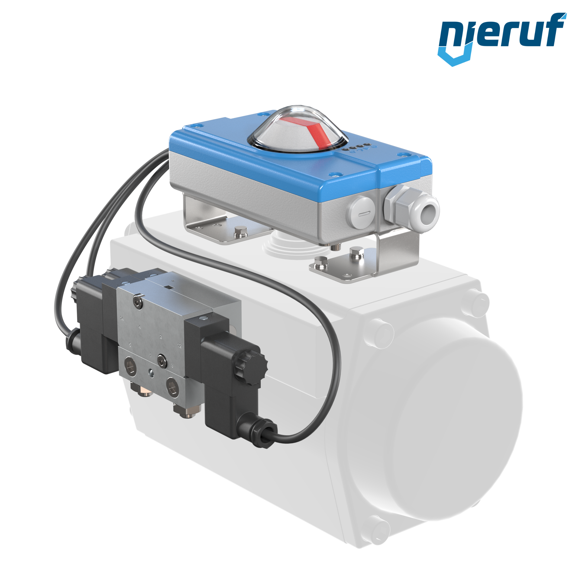 Stellungsregler zur Verstellung und Regelung sowie zur genauen Positionierung von pneumatischen Antrieben. Wechsel zwischen Positionierung und 3-Positionsmodus möglich. Passende Montagebrücke, Magnetventilgruppe und Kabelverbindungen im Lieferumfang enthalten.