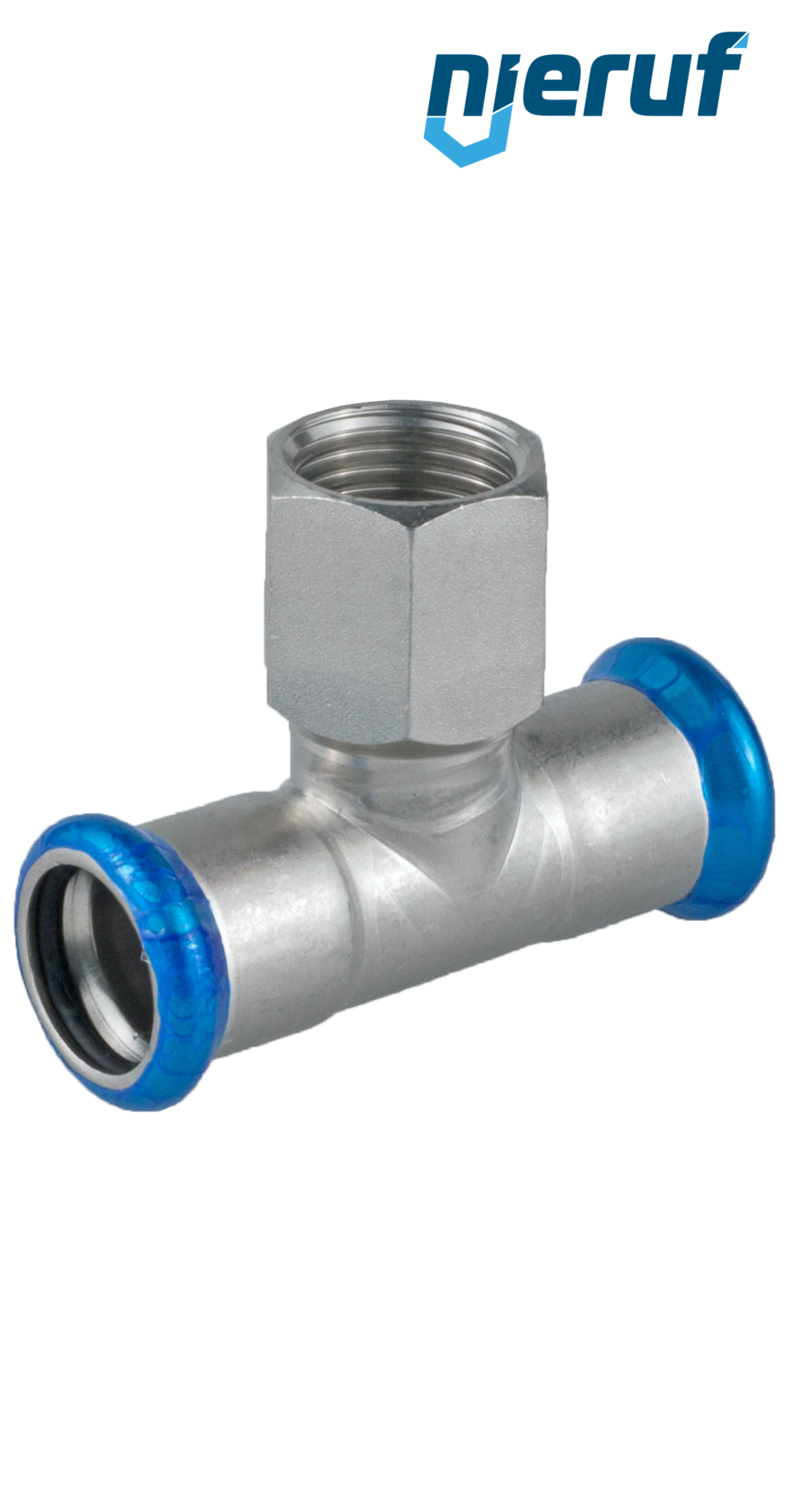 T-Stück PF01-01 mit Pressanschluss I x I DN20 - 22,0 mm, Innengewinde 3/4" Zoll aus Edelstahl für flüssige & gasförmige Medien