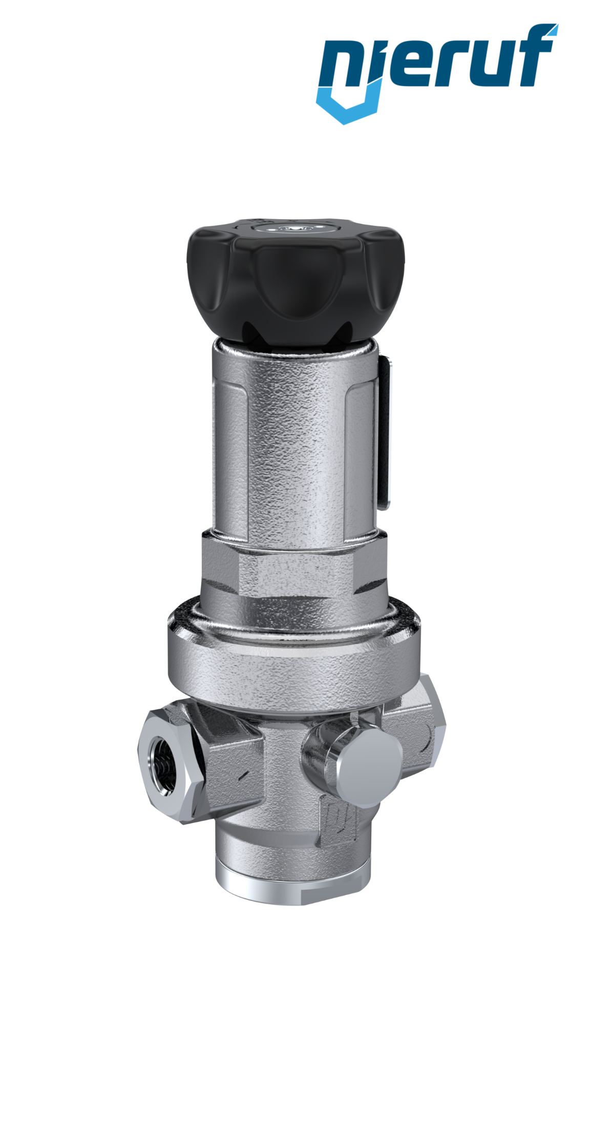 Membran Präzisions-Druckminderer ohne Sekundärentlüftung. Druckverstellung über nicht steigende Spindel und integriertem Manometeranschluss 1/4"