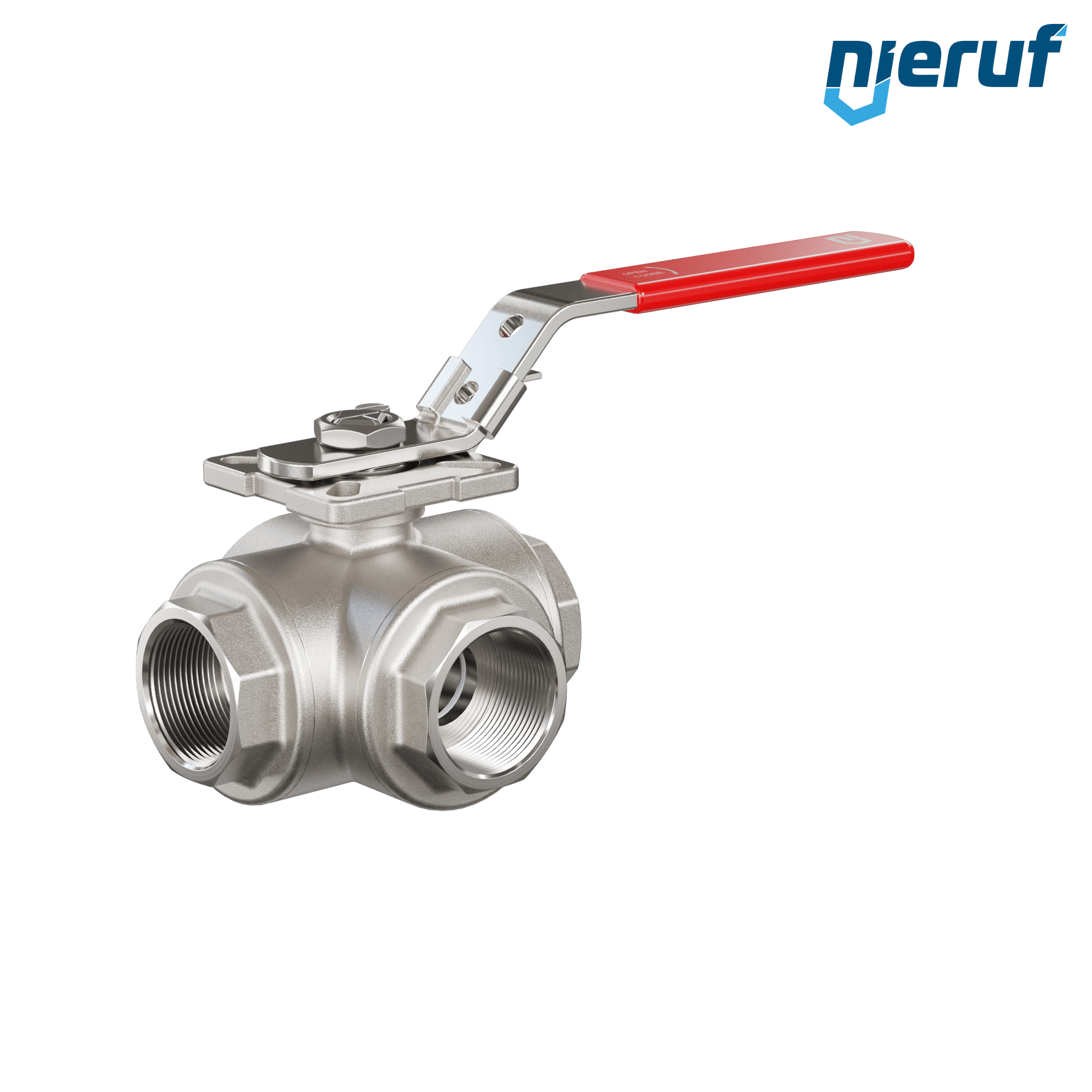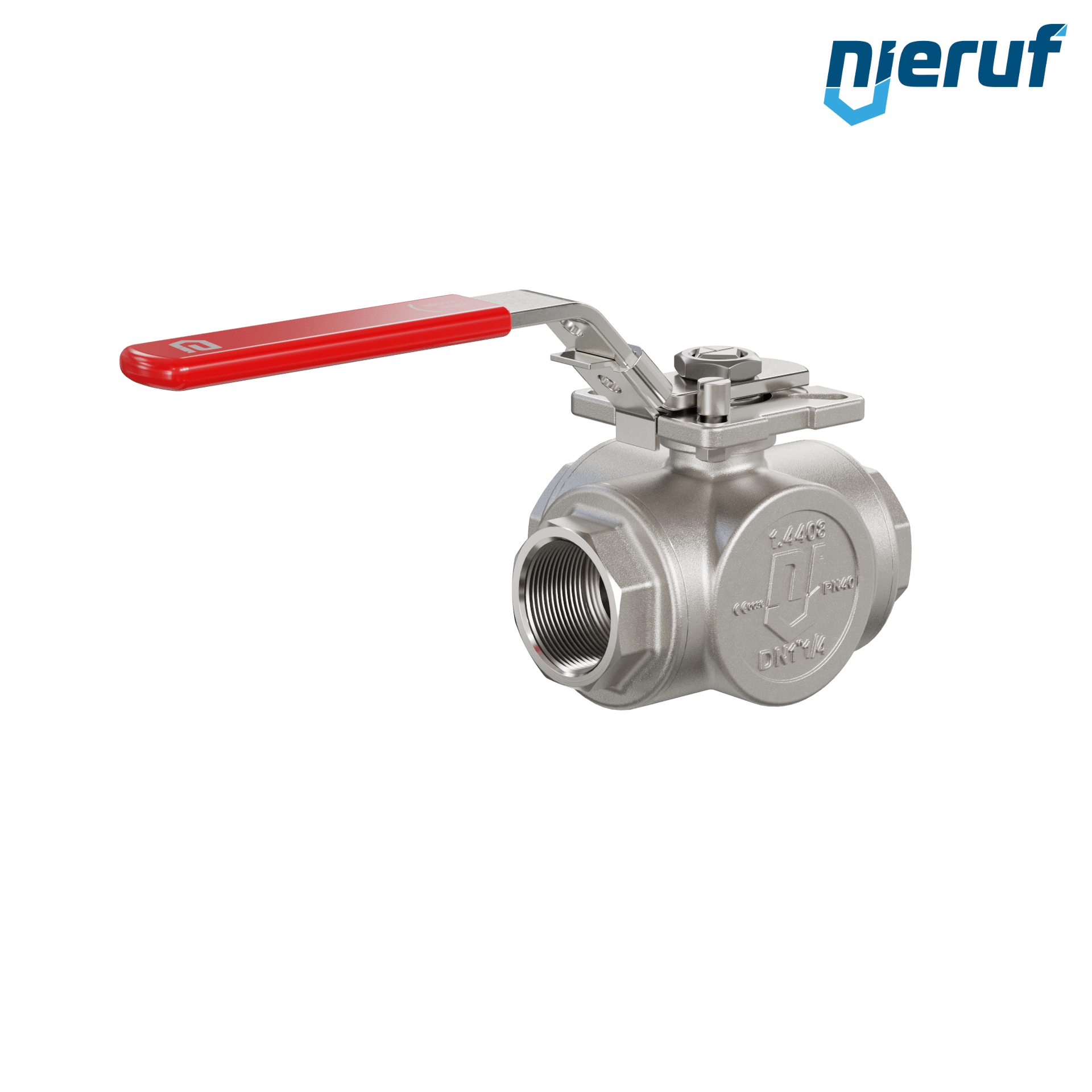 | Produktmerkmale | Dreiwege-Kugelhahn aus Edelstahl mit Stopfbuchse und schwimmender Kugel mit T-Bohrung |