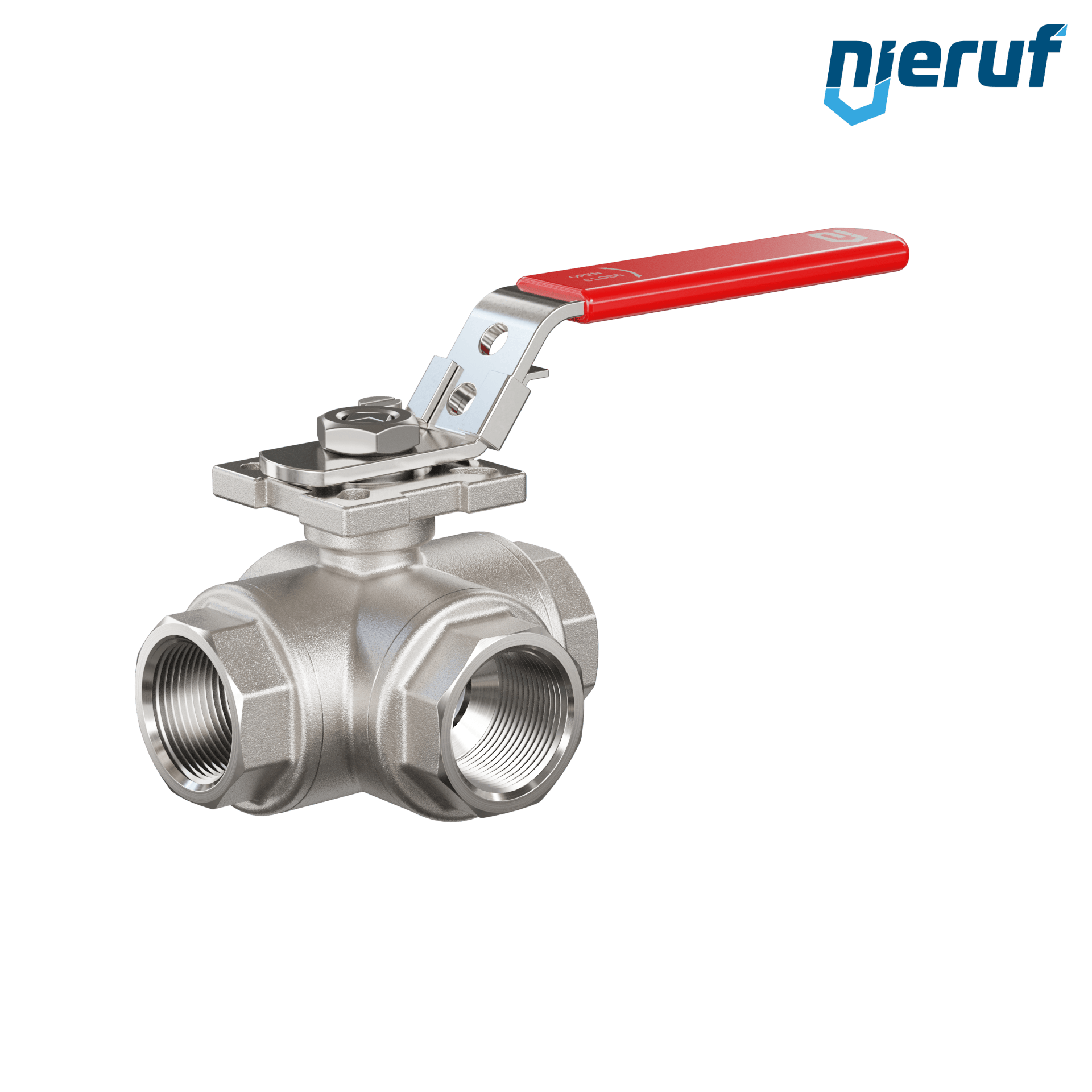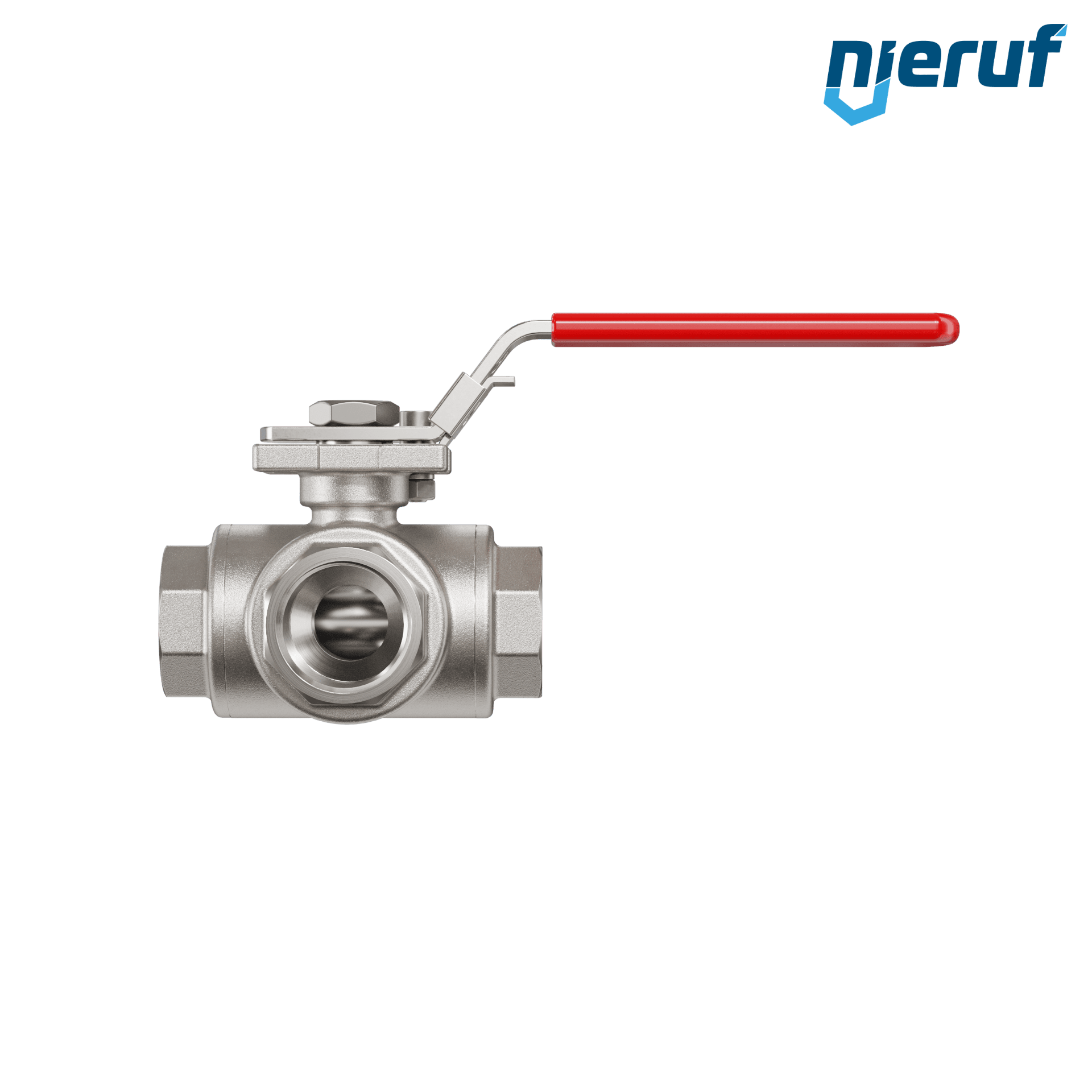 | Produktmerkmale | Dreiwege-Kugelhahn aus Edelstahl mit Stopfbuchse und schwimmender Kugel mit L-Bohrung |