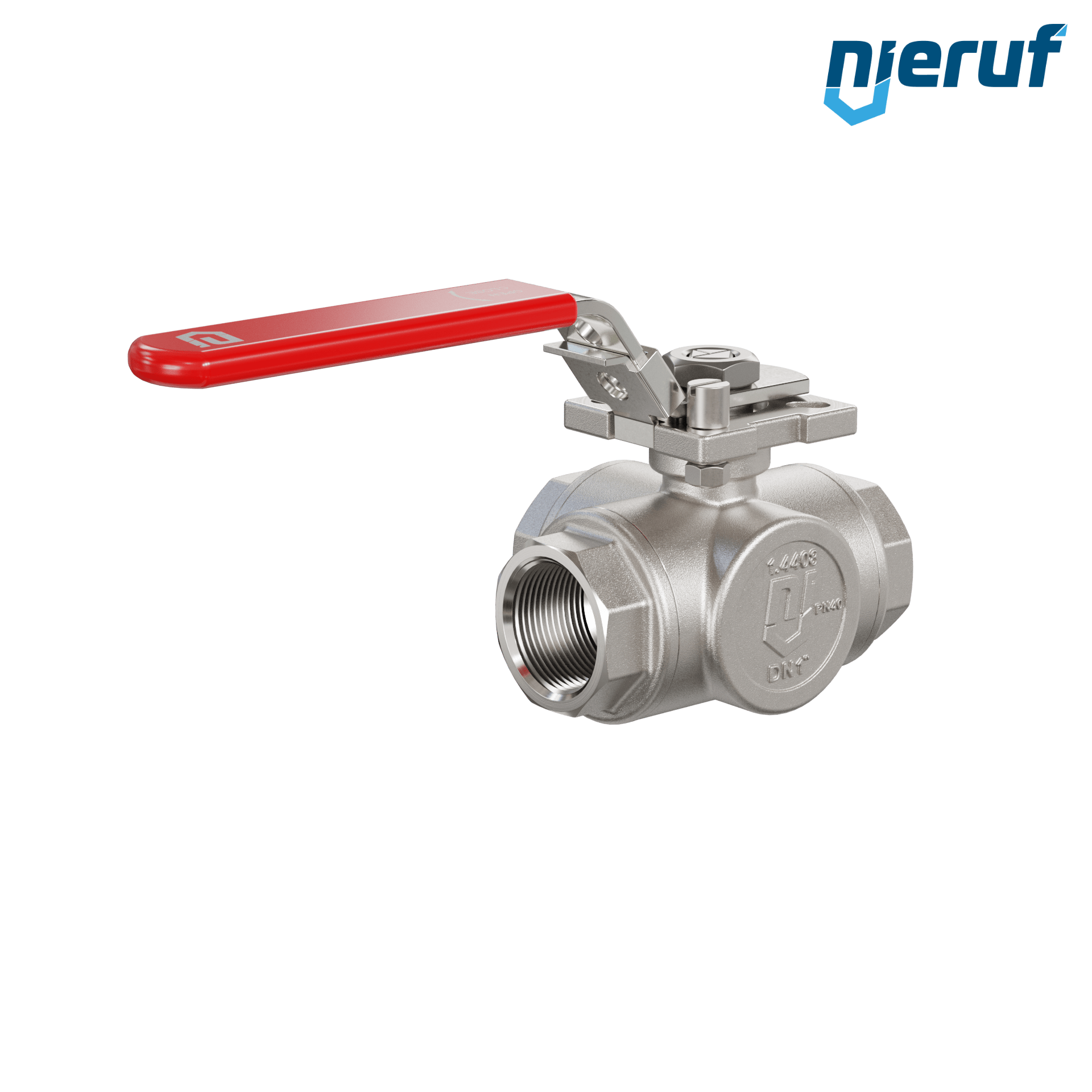 | Produktmerkmale | Dreiwege-Kugelhahn aus Edelstahl mit Stopfbuchse und schwimmender Kugel mit T-Bohrung |