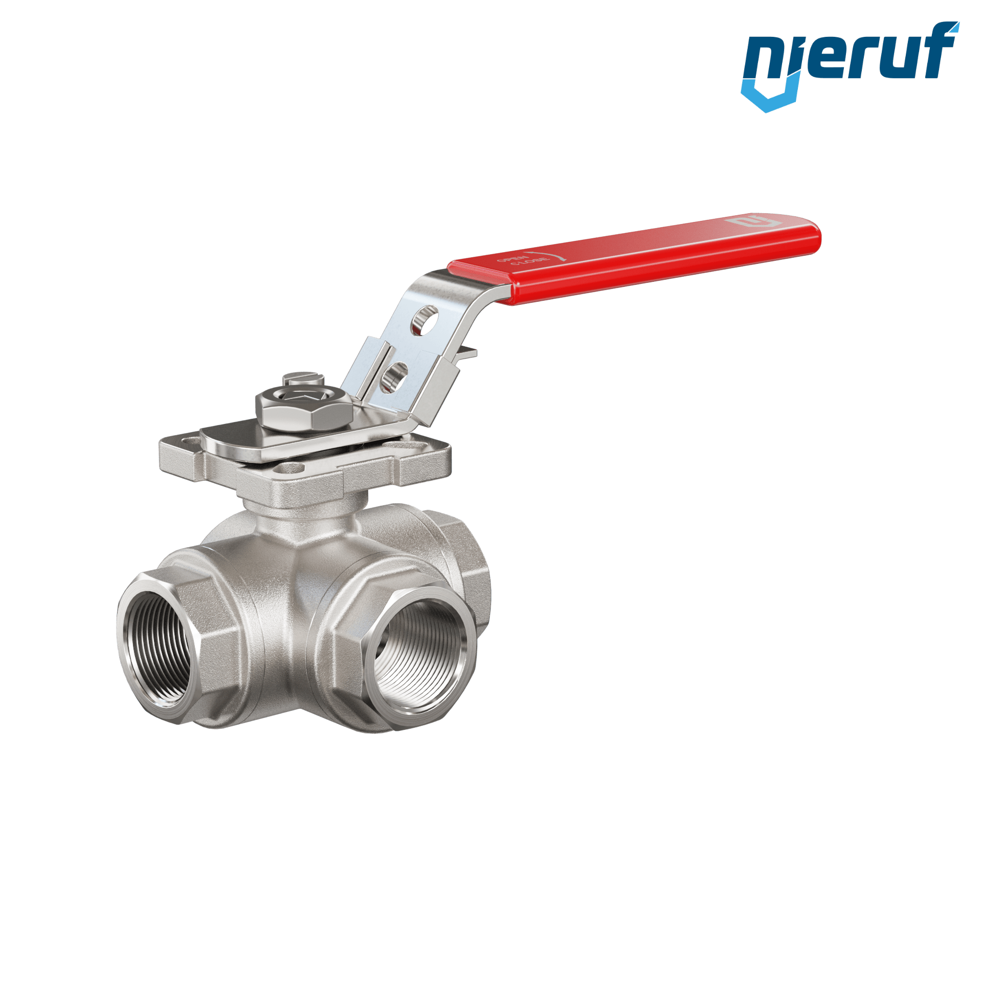 | Produktmerkmale | Dreiwege-Kugelhahn aus Edelstahl mit Stopfbuchse und schwimmender Kugel mit L-Bohrung |