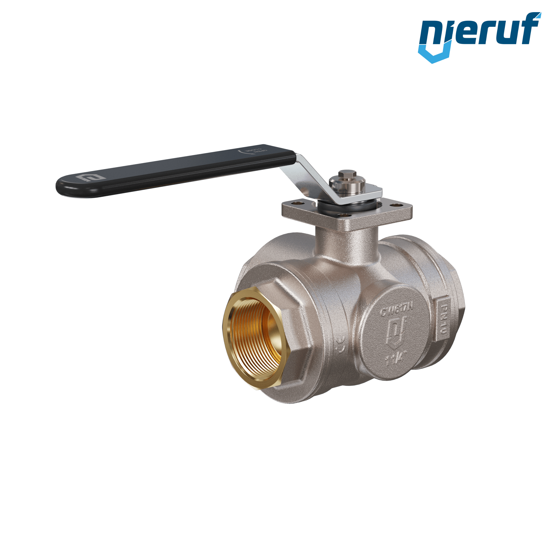| Produktmerkmale | Dreiwege-Kugelhahn aus Messing mit Stopfbuchse und schwimmender Kugel mit L-Bohrung |