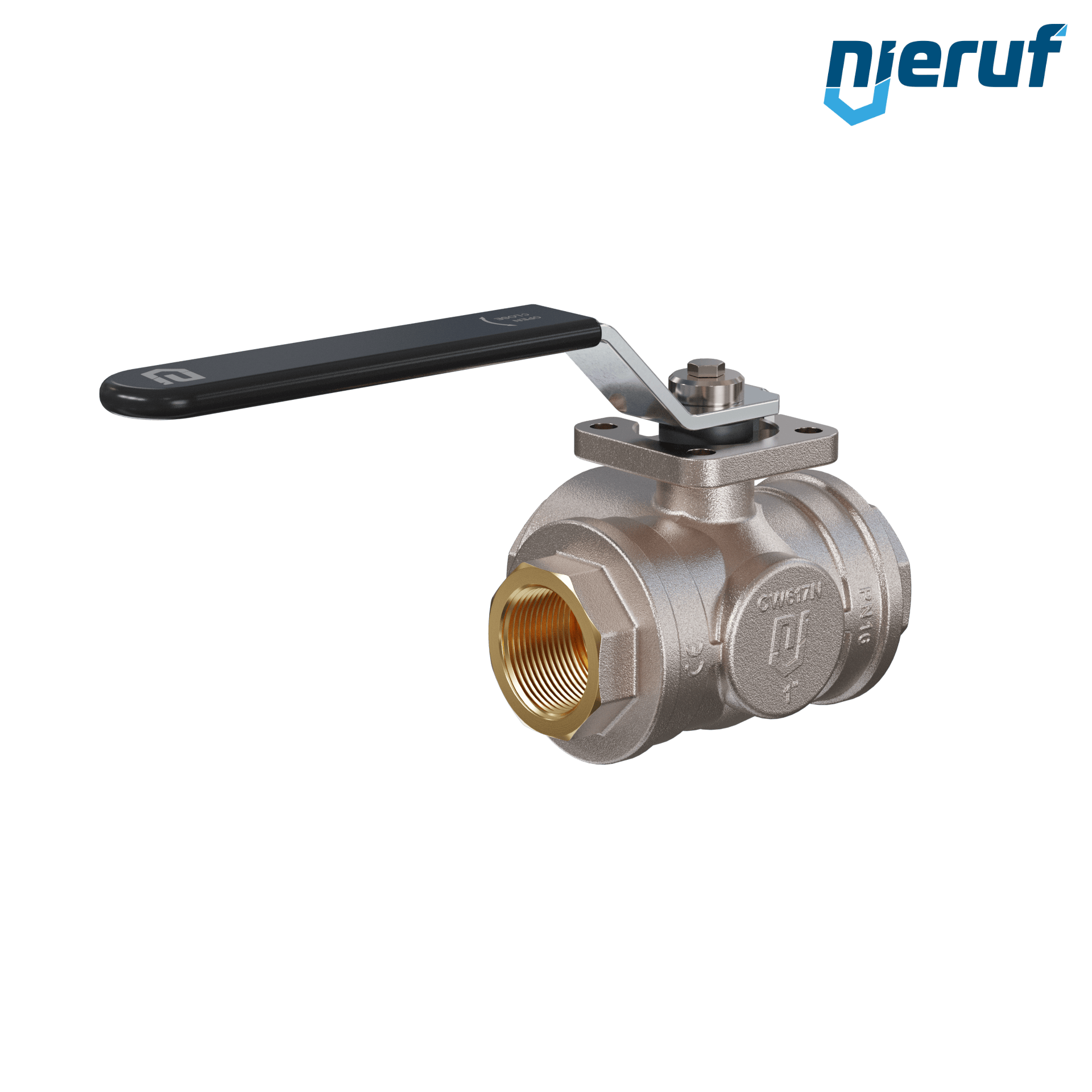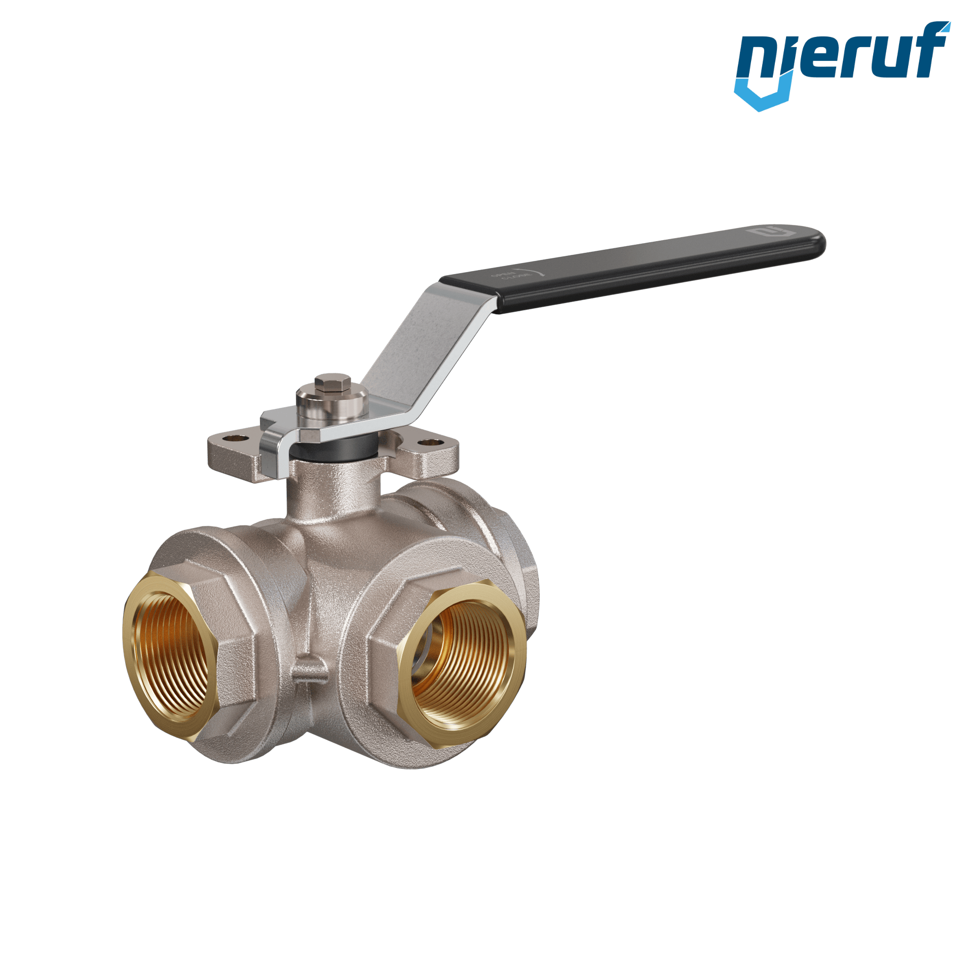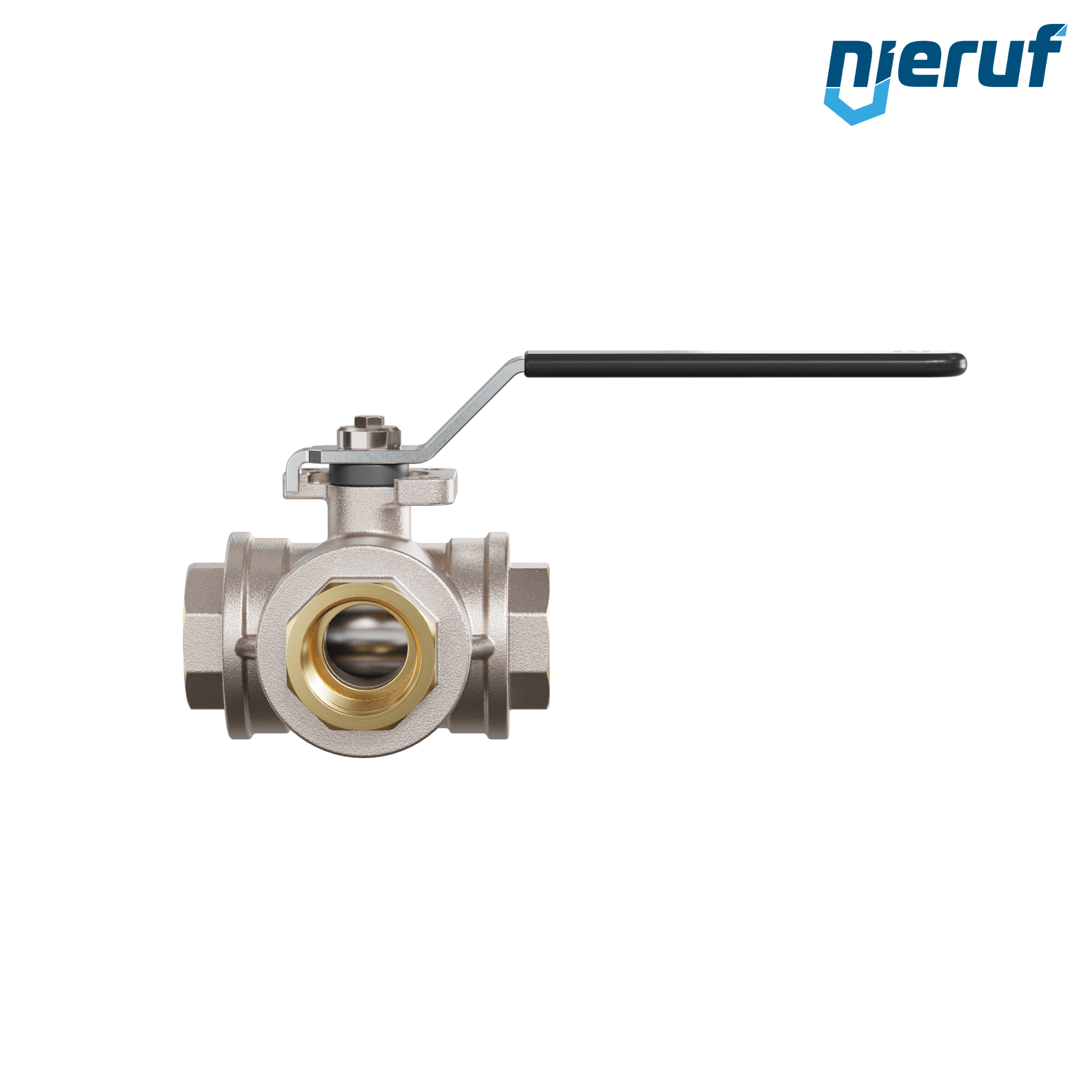 | Produktmerkmale | Dreiwege-Kugelhahn aus Messing mit Stopfbuchse und schwimmender Kugel mit T-Bohrung |