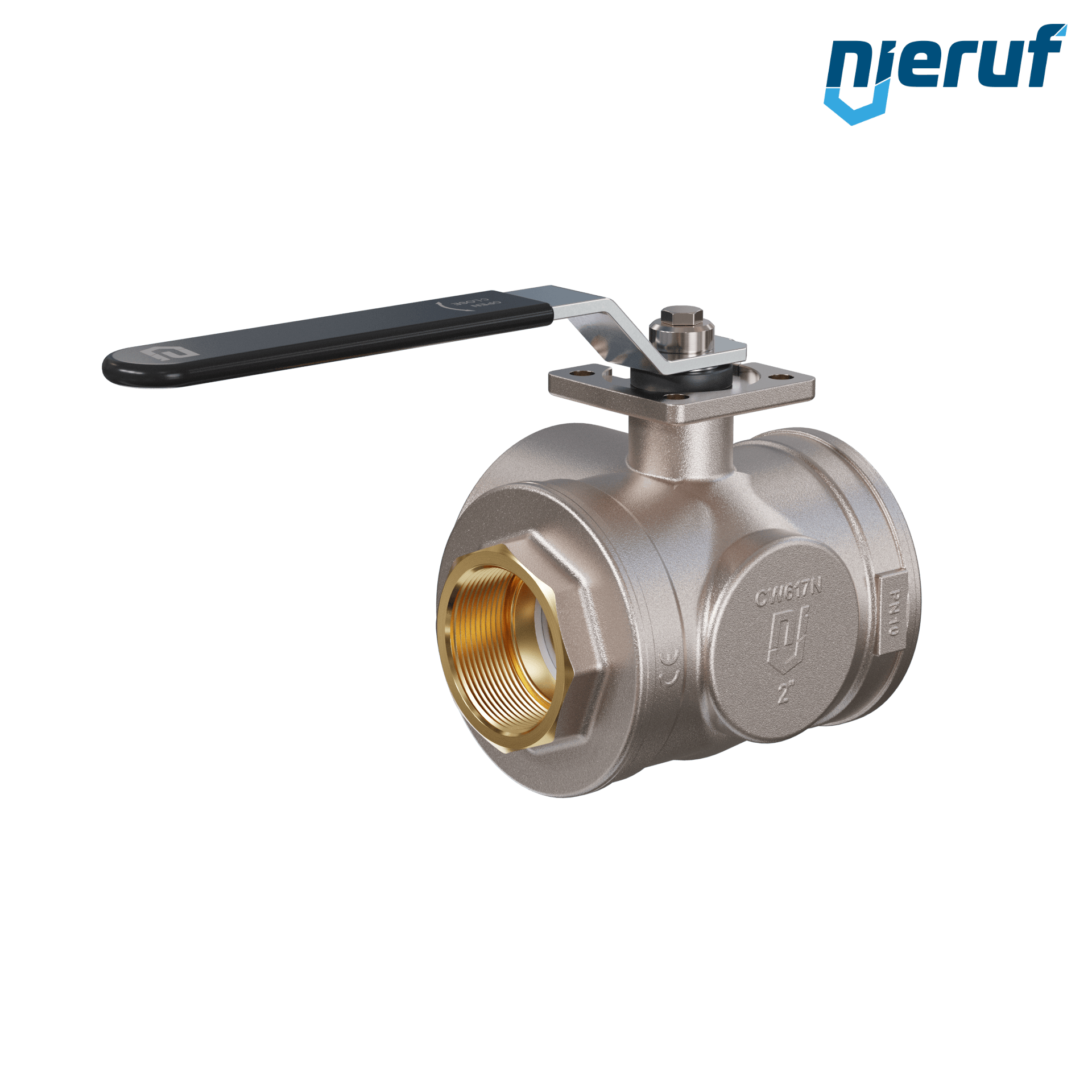 3 Wege Messing Kugelhahn DN50 - 2" Zoll voller Durchgang mit L-Bohrung Dichtungen aus PTFE für flüssige & gasförmige Medien