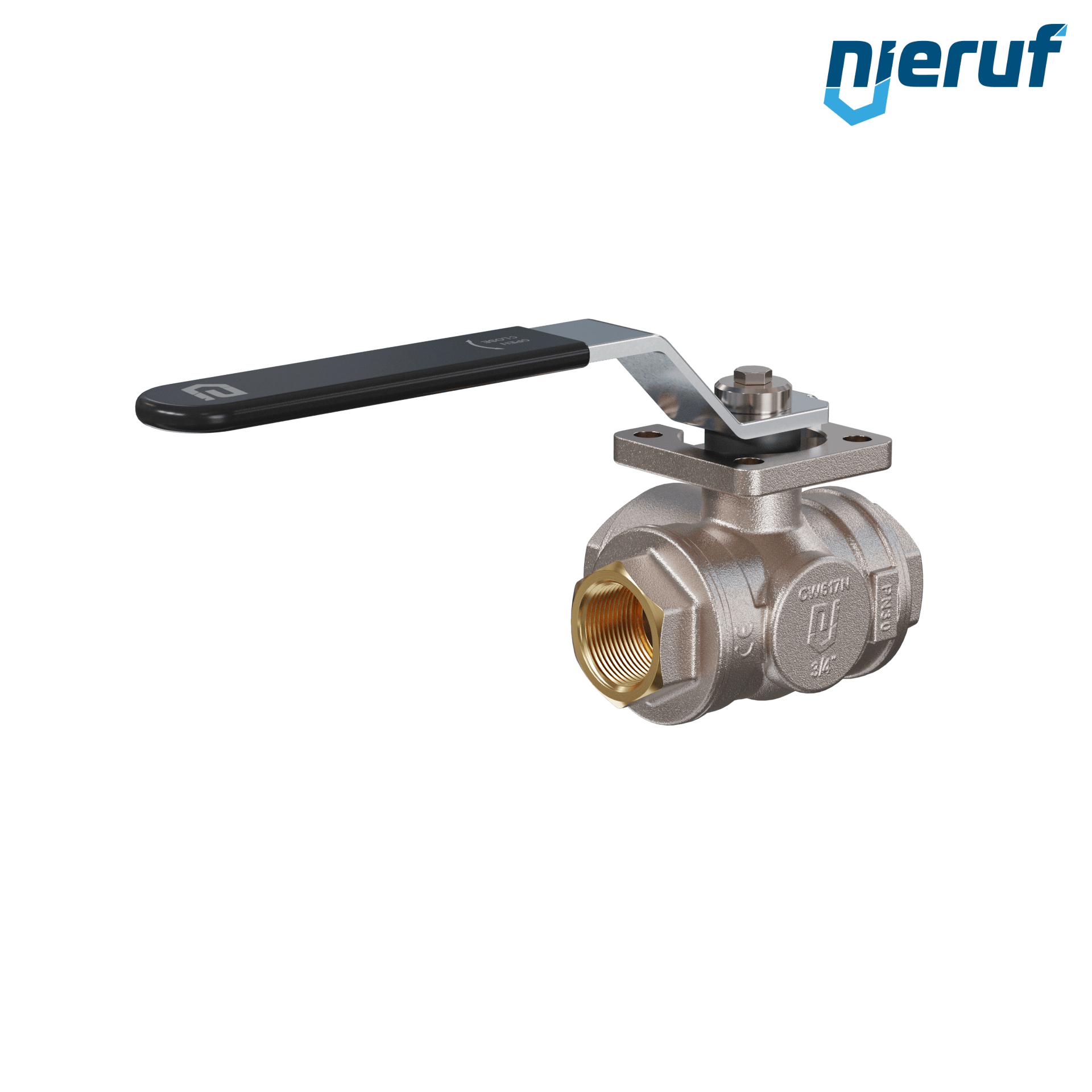 | Produktmerkmale | Dreiwege-Kugelhahn aus Messing mit Stopfbuchse und schwimmender Kugel mit T-Bohrung |