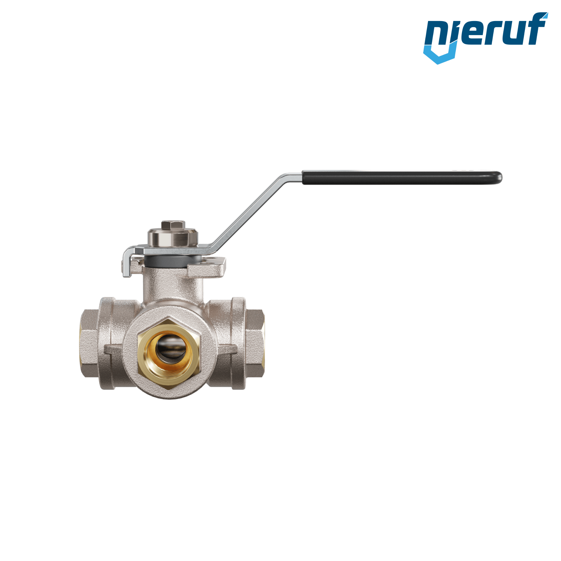 | Produktmerkmale | Dreiwege-Kugelhahn aus Messing mit Stopfbuchse und schwimmender Kugel mit L-Bohrung |