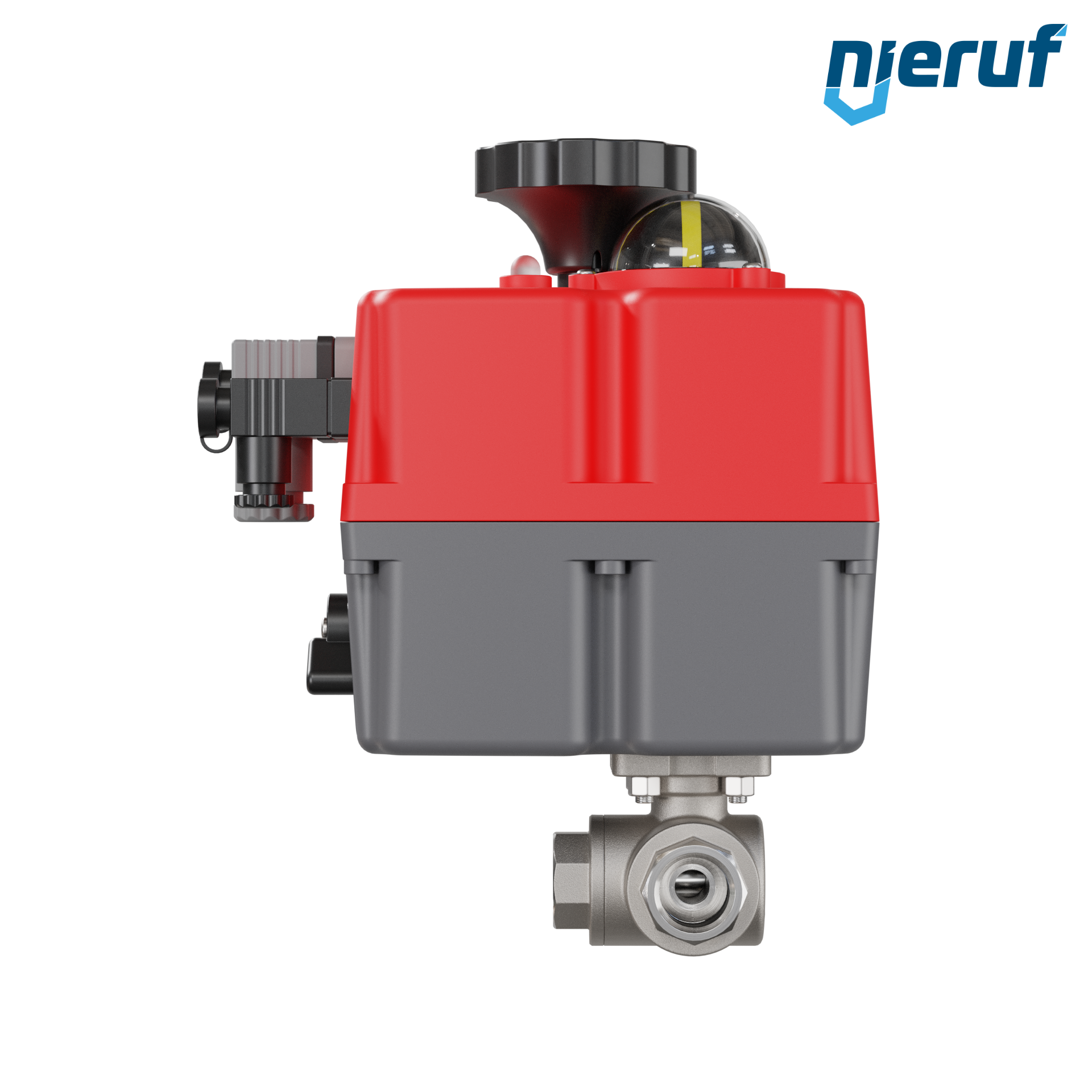 Produktmerkmale Dieser hoch qualitative Automatik-Muffenkugelhahn aus Edelstahl mit elektronischem Drehantrieb (Serie S) hat eine optische Stellungsanzeige und eine Handnotbetätigung.