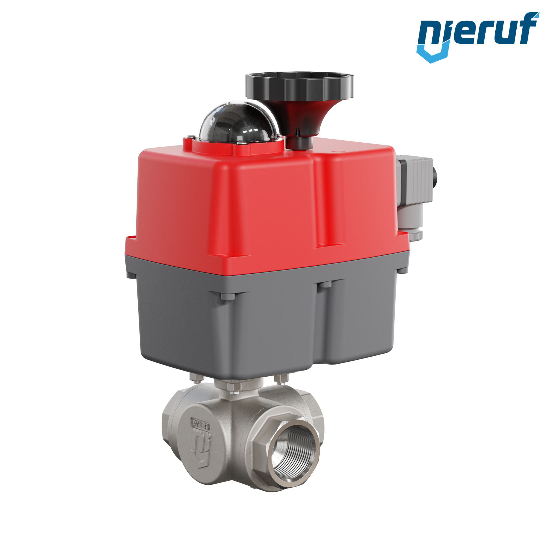 Dieser hoch qualitative Automatik-Muffenkugelhahn aus Edelstahl mit elektronischem Drehantrieb (Serie S) hat eine optische Stellungsanzeige und eine Handnotbetätigung.