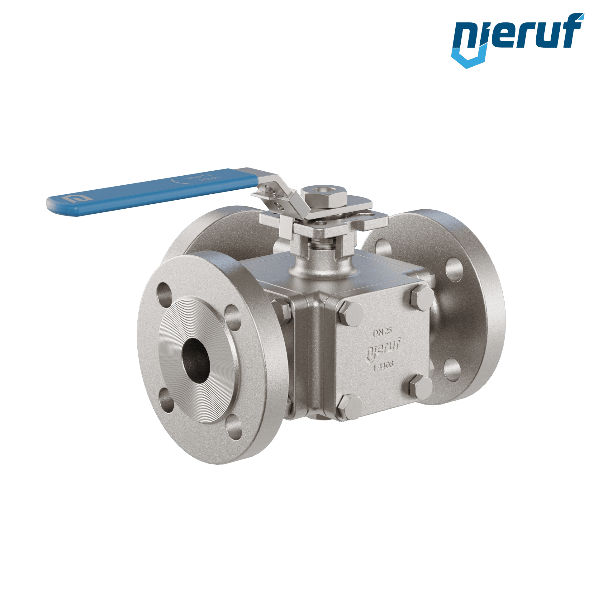 3 Wege Flanschkugelhahn aus Edelstahl DN25 FK09 T-Bohrung Edelstahl 1.4408