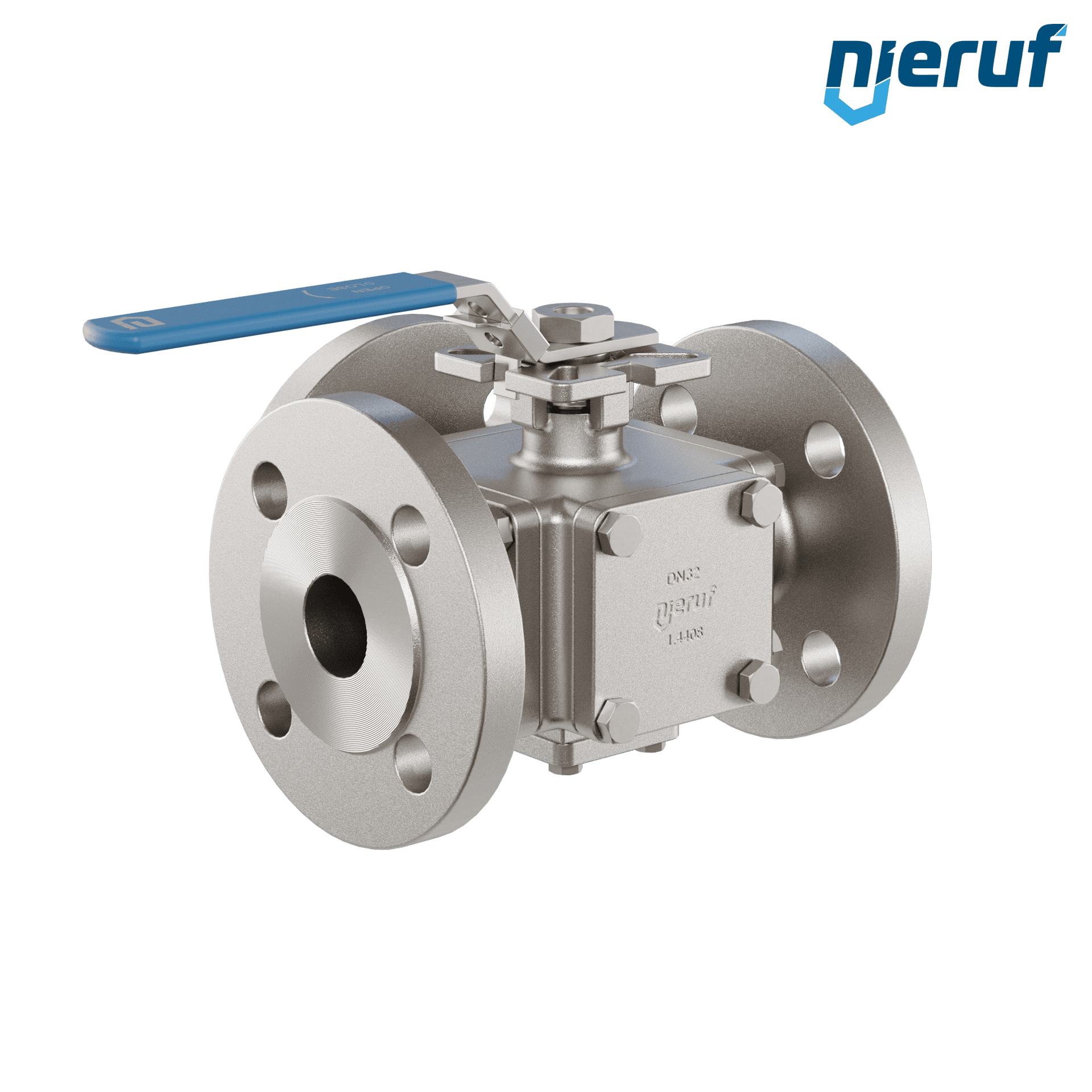 3 Wege Flanschkugelhahn aus Edelstahl DN32 FK09 L-Bohrung Edelstahl 1.4408