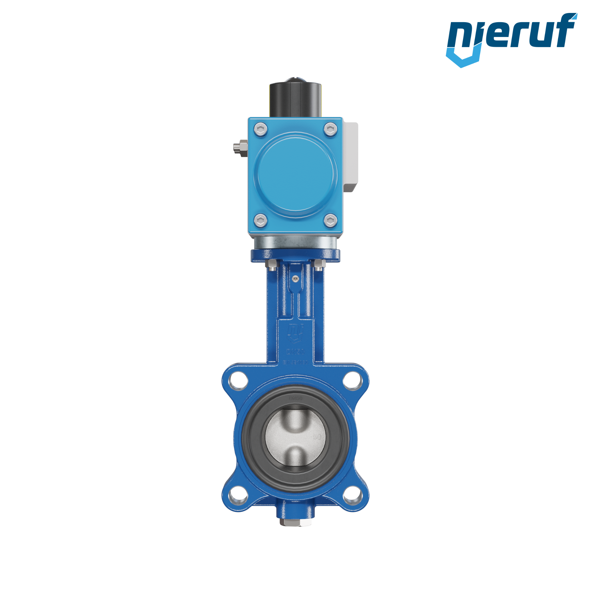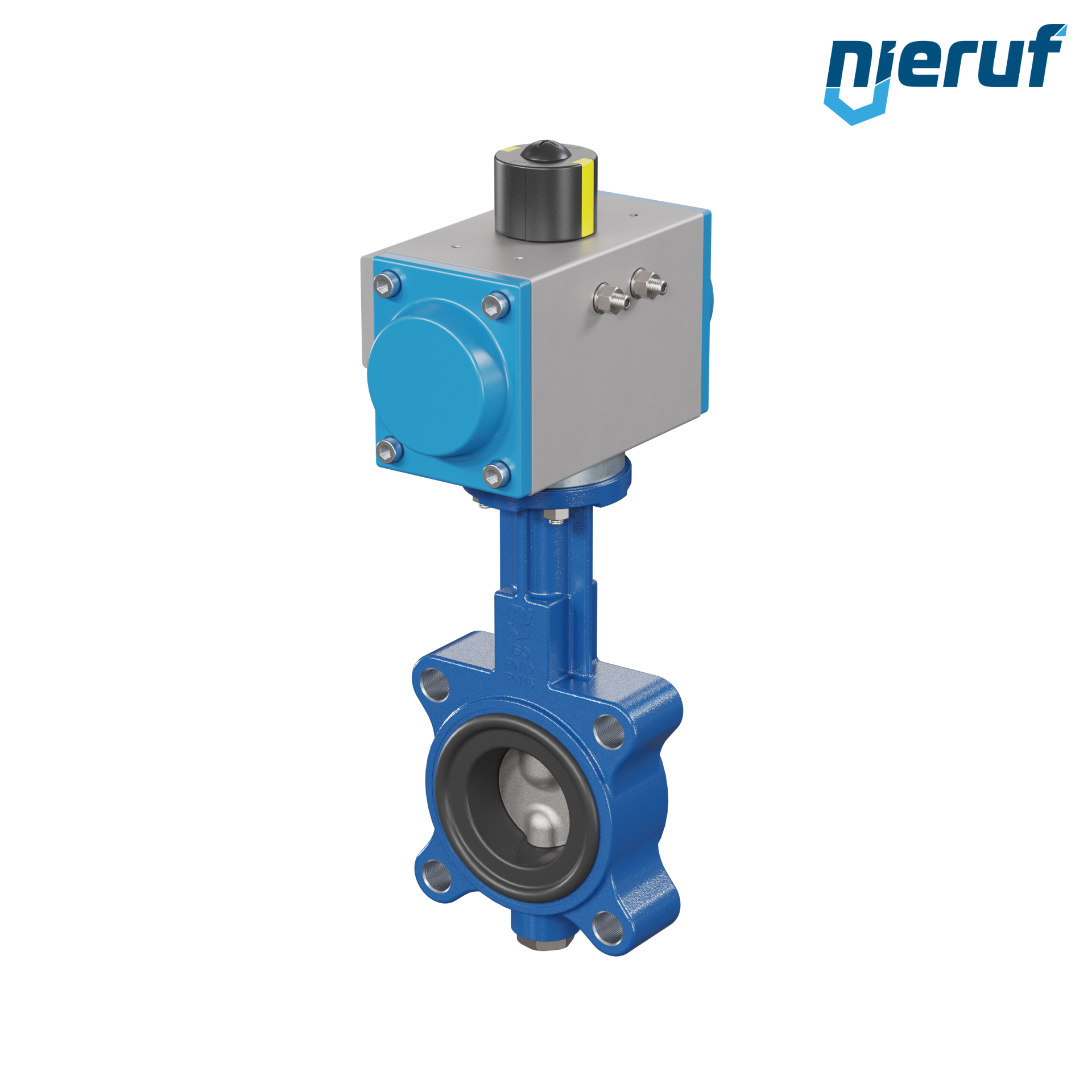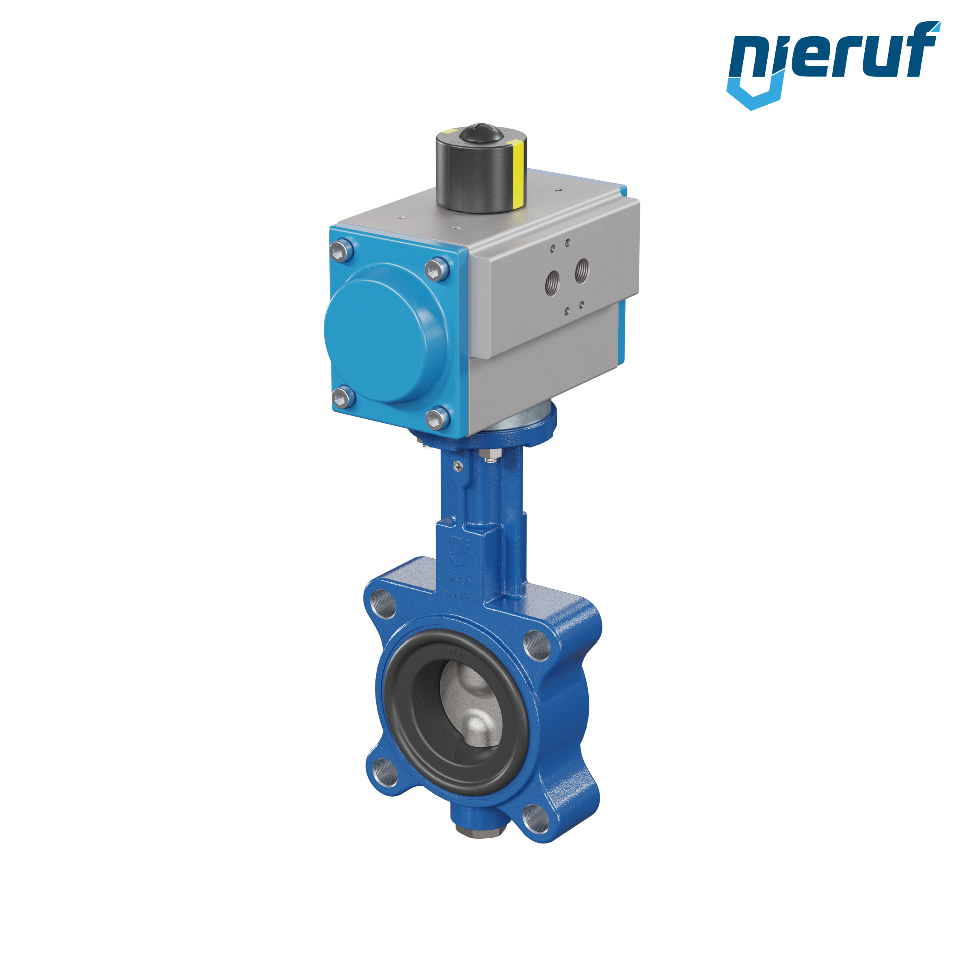 Absperrklappe DN 50 mit Gewindeaugen Gehäuse aus Sphäroguss mit pneumatischer Schwenkantrieb doppeltwirkend Manschette aus NBR-70-schwarz DVGW Gas