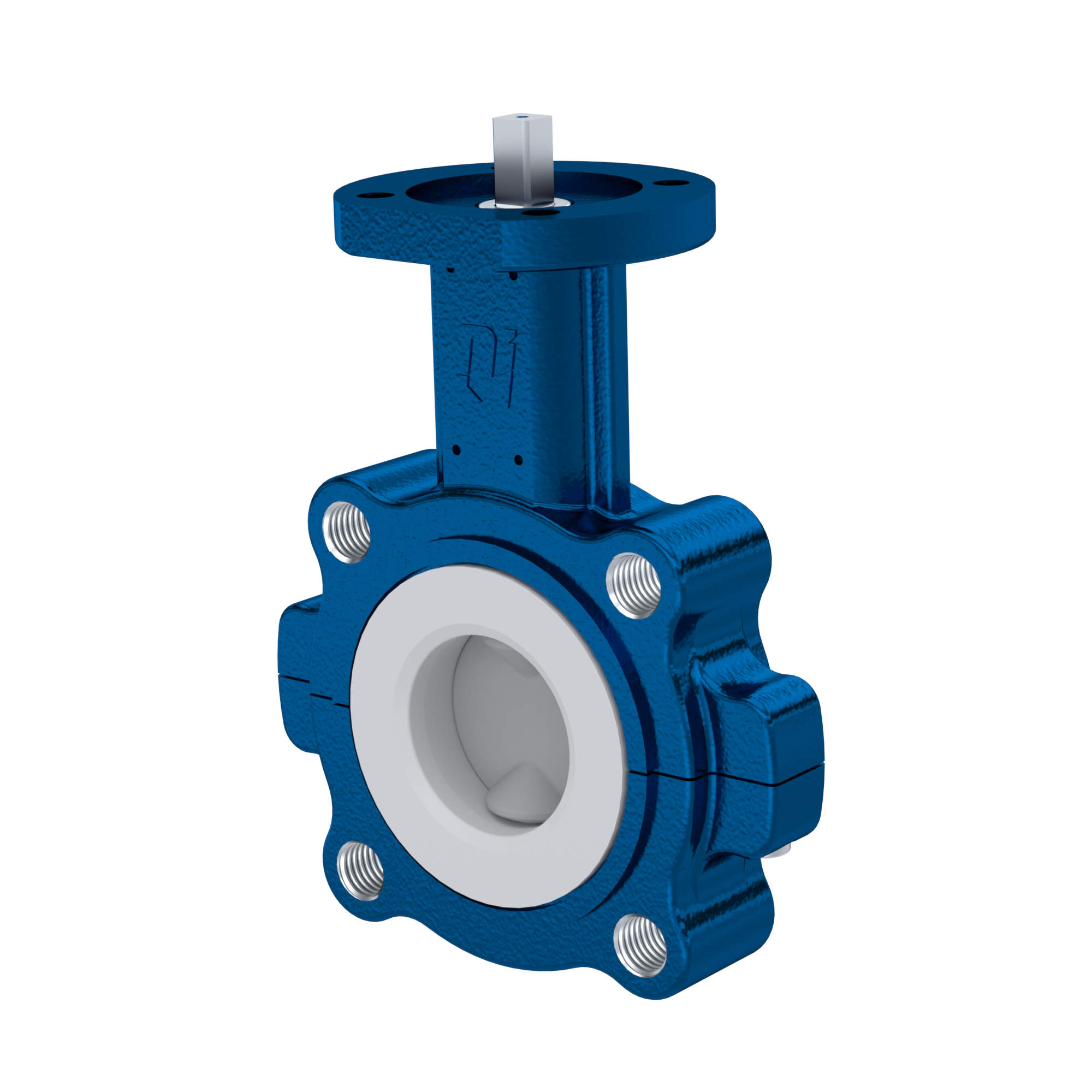 | Produktmerkmal | Absperrklappe mit PTFE Manschette und Edelstahl Klappenscheibe für aggressive Medien. |