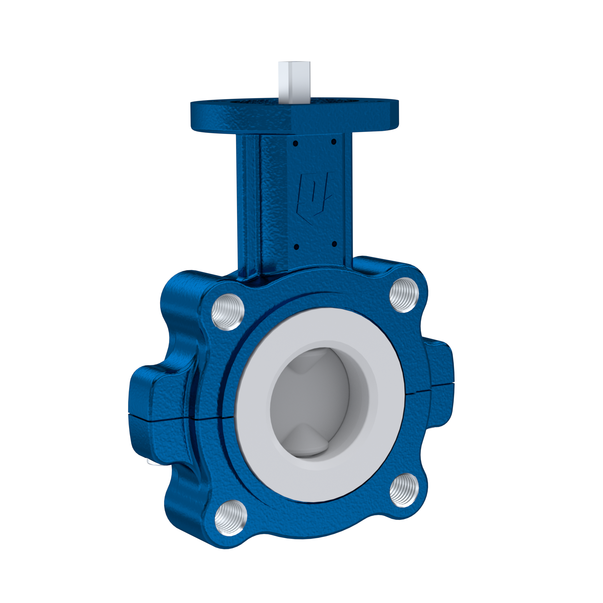 Absperrklappe DN50 PN10-PN16 mit Gewindeaugen Klappenscheibe aus Edelstahl 1.4469 Dichtung aus PTFE und Silikon Einlage für aggressive Medien