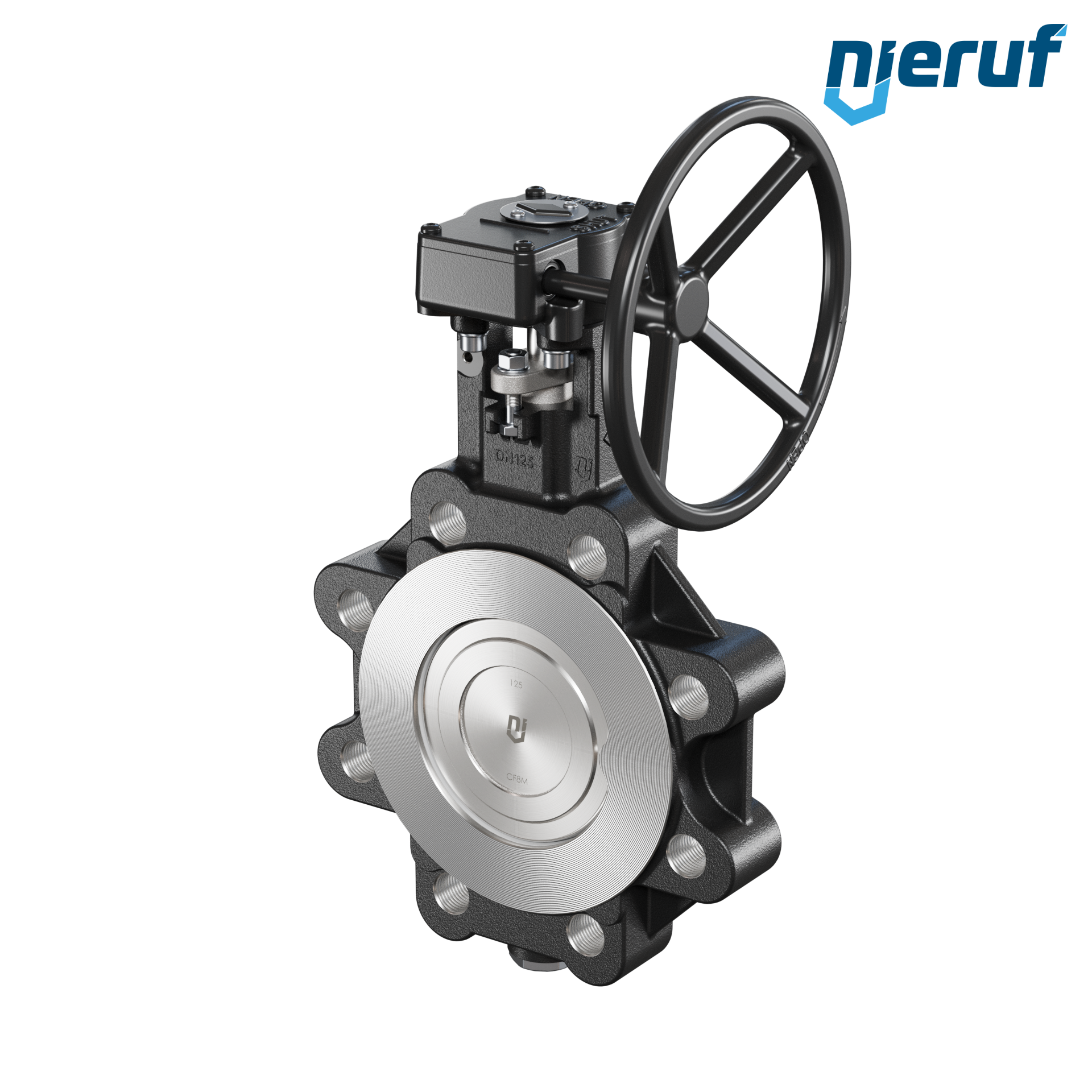Doppelexzentrische Absperrklappe Gewindeaugen AK12 DN 125 PN25-PN40 mit Gehäuse aus Stahlguss max. 40 bar Getriebe
