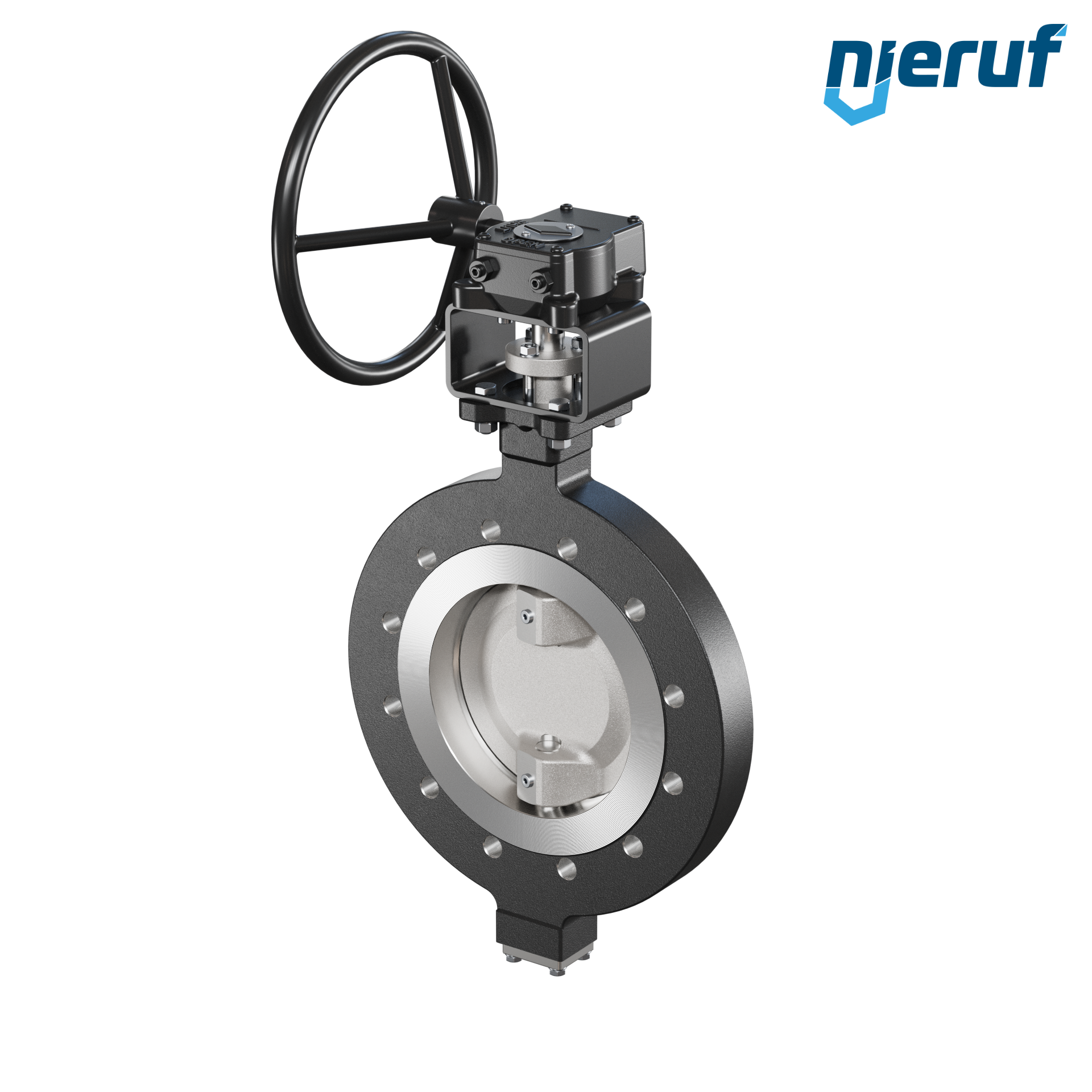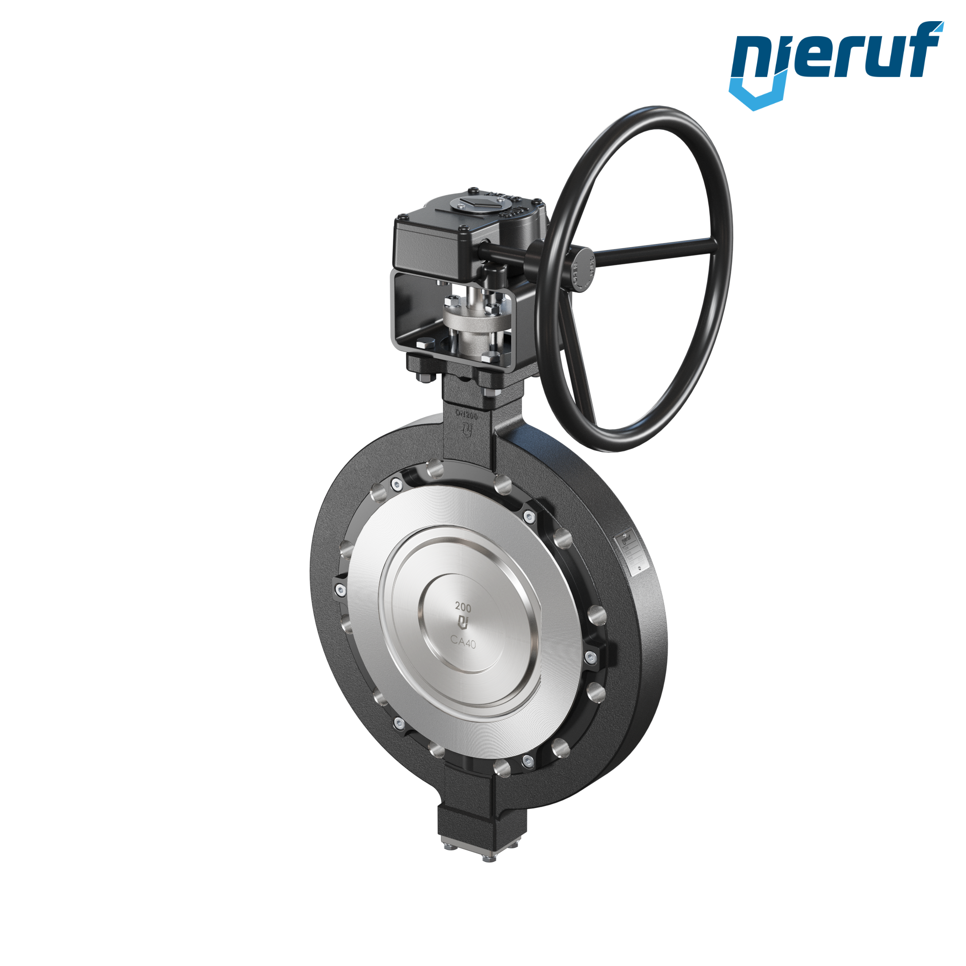 Doppelexzentrische Absperrklappe Gewindeaugen AK12 DN 200 PN16 mit Gehäuse aus Stahlguss max. 40 bar Getriebe