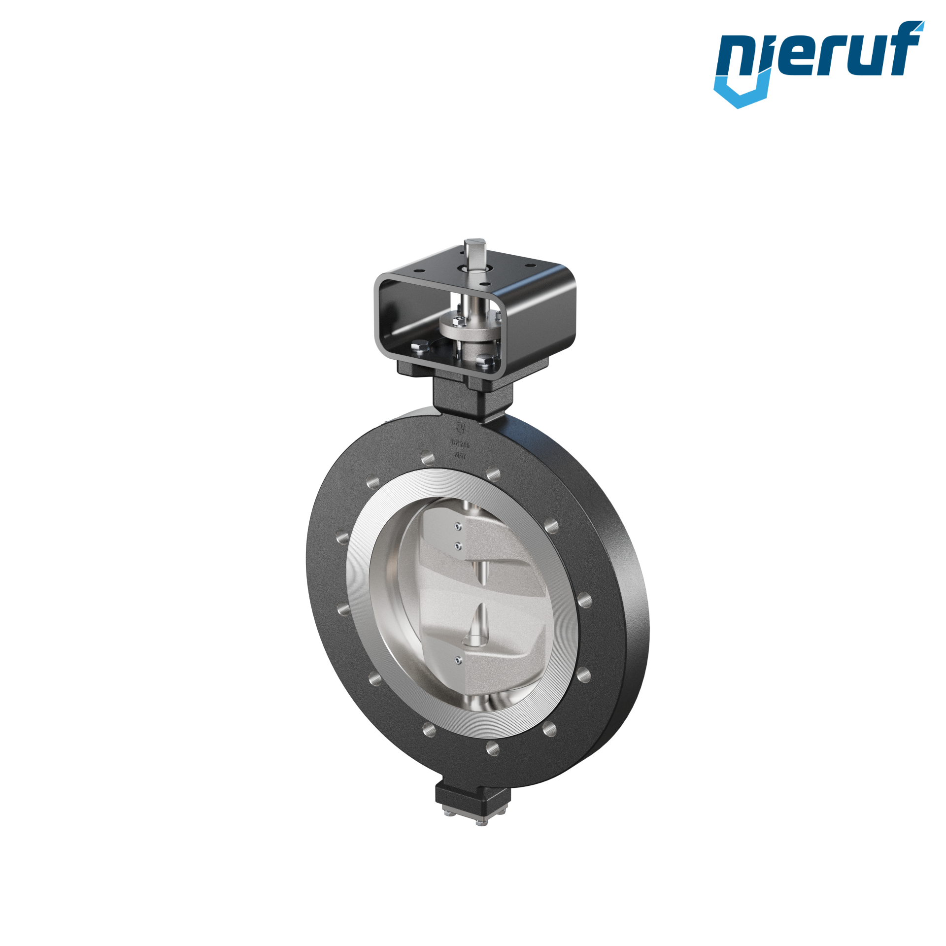 Doppelexzentrische Absperrklappe Gewindeaugen AK12 DN 250 PN10 mit Gehäuse aus Stahlguss max. 25 bar freies Wellenende