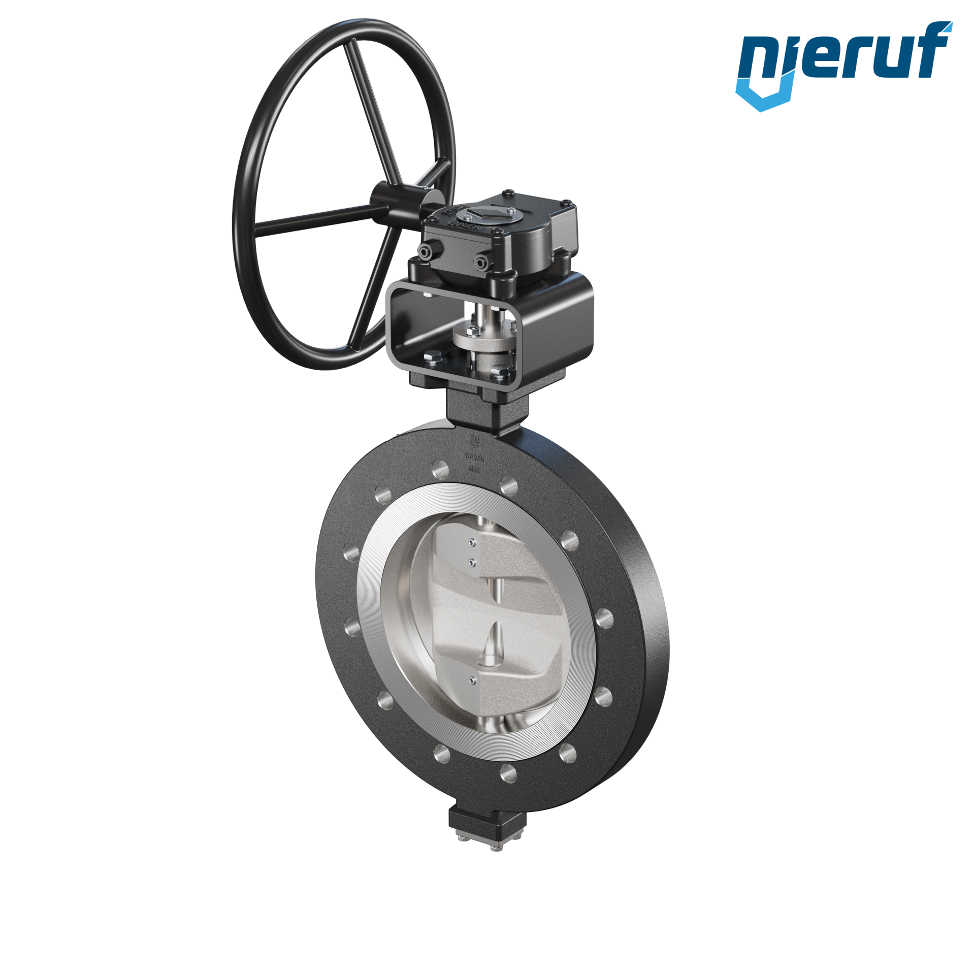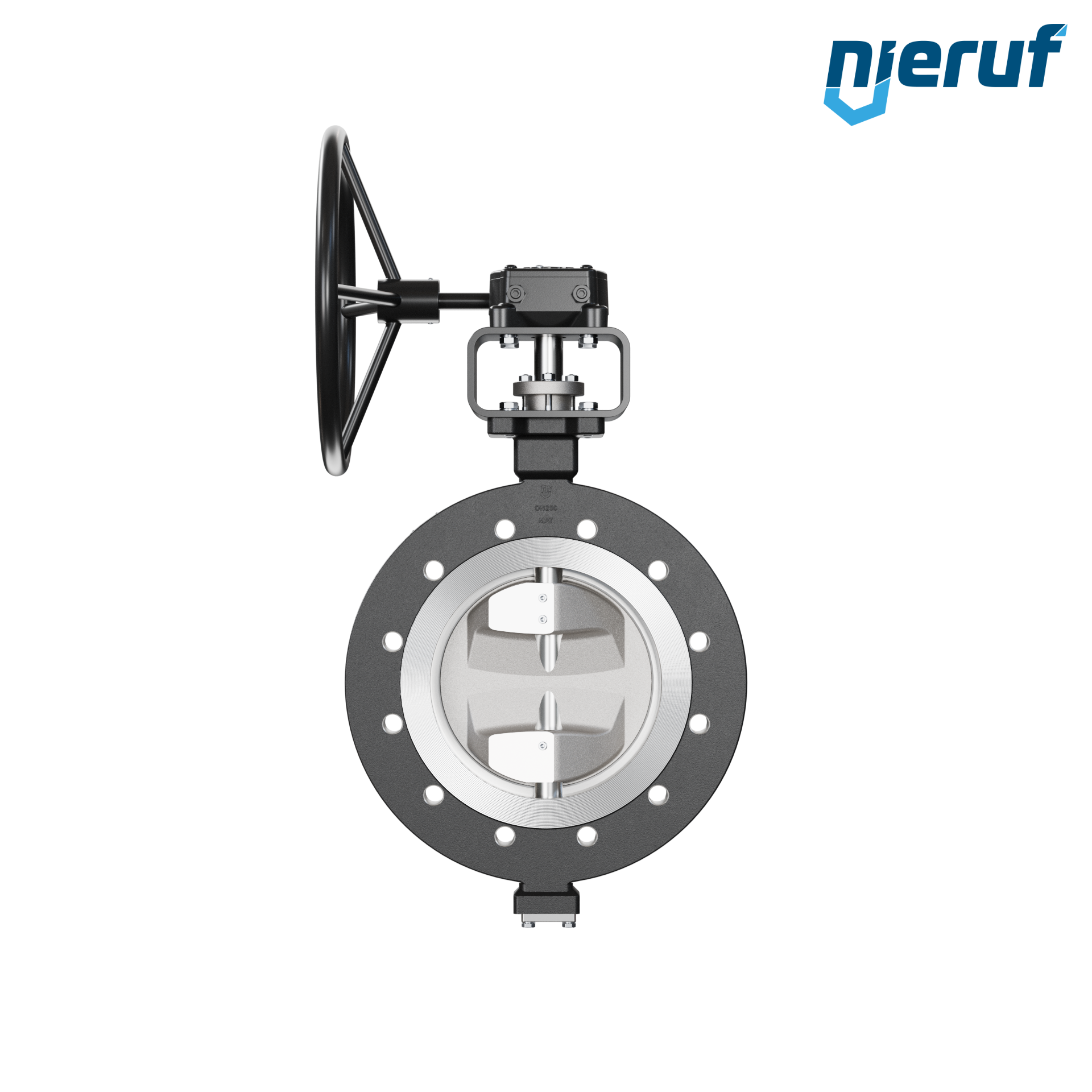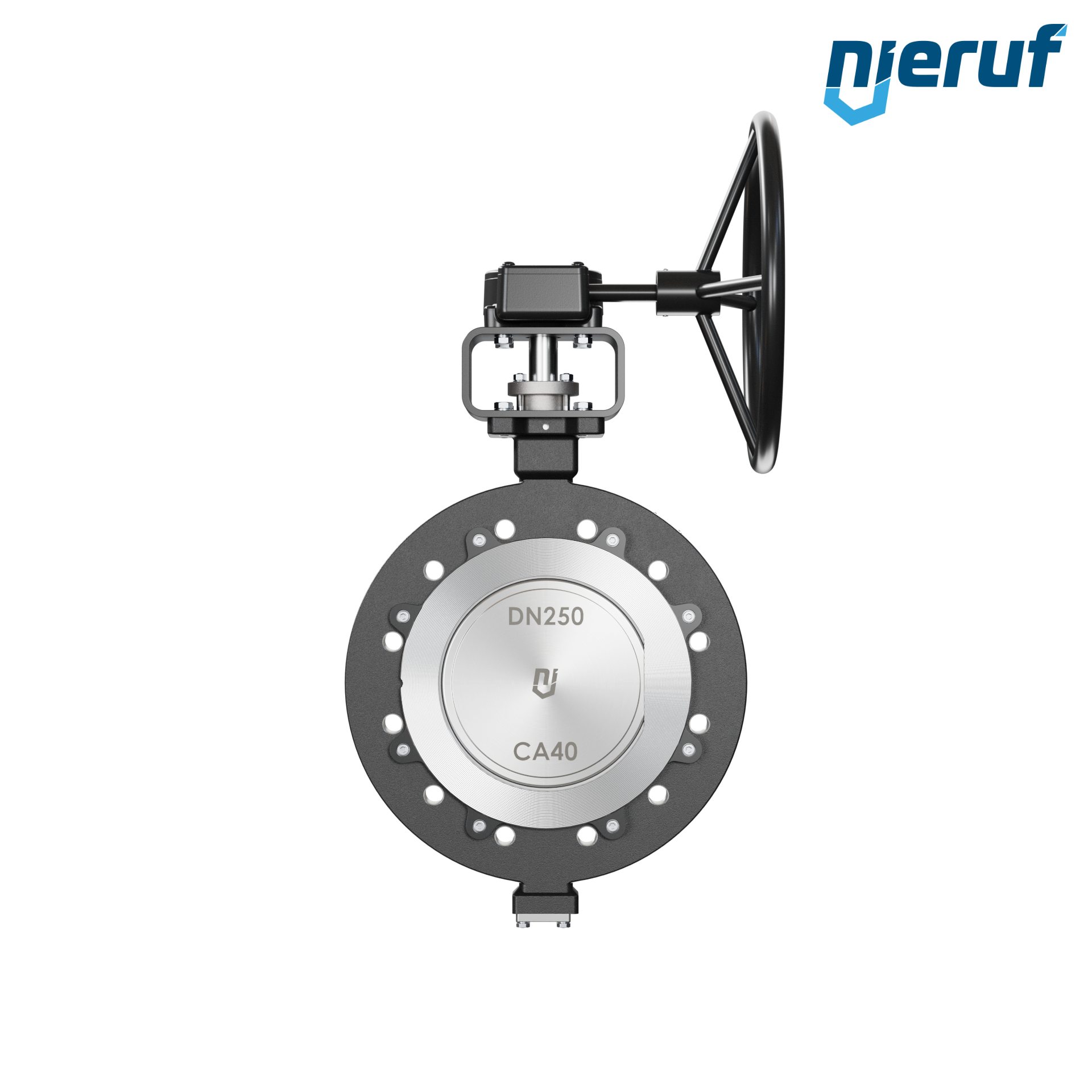 Doppelexzentrische Absperrklappe Gewindeaugen AK12 DN 250 PN16 mit Gehäuse aus Stahlguss max. 25 bar Getriebe