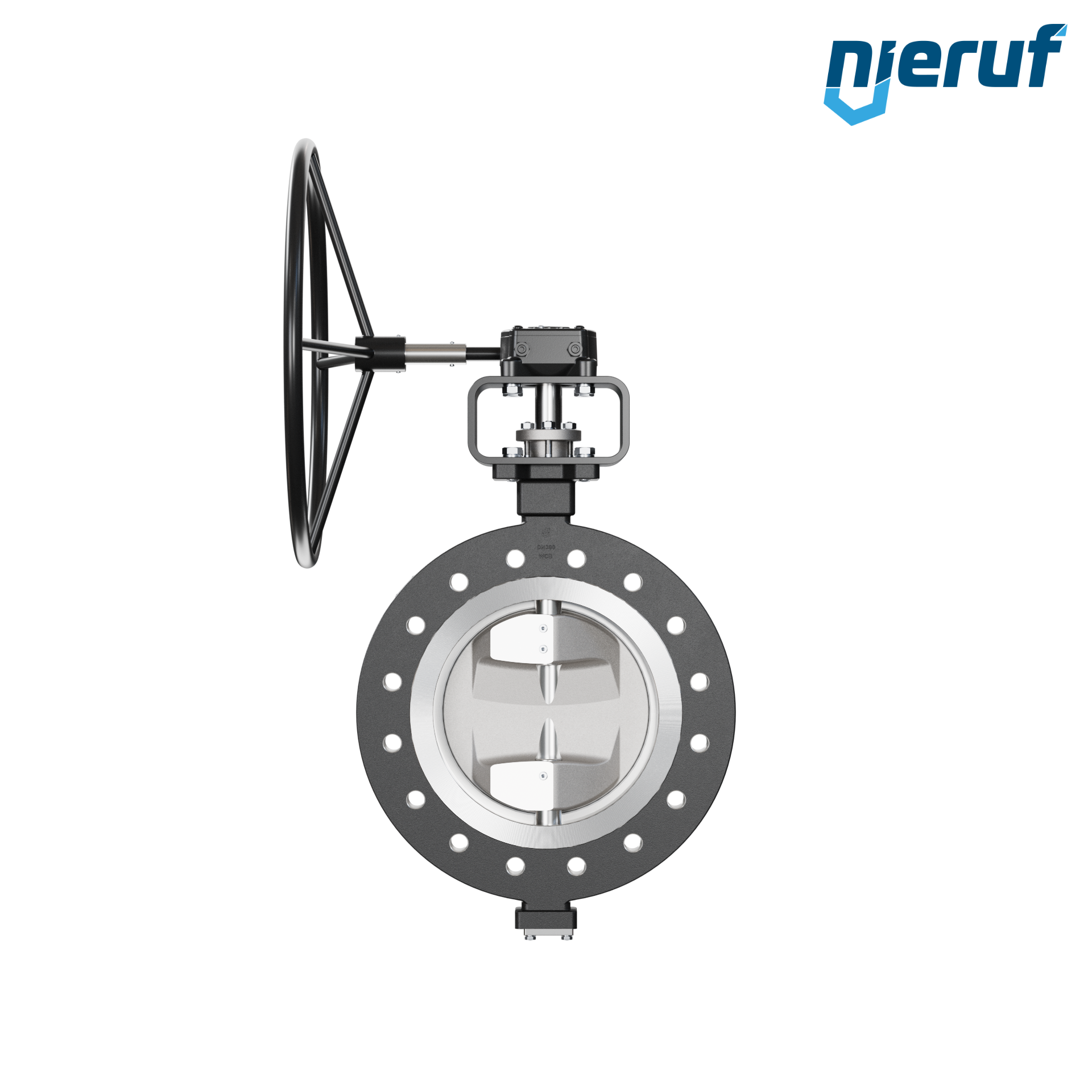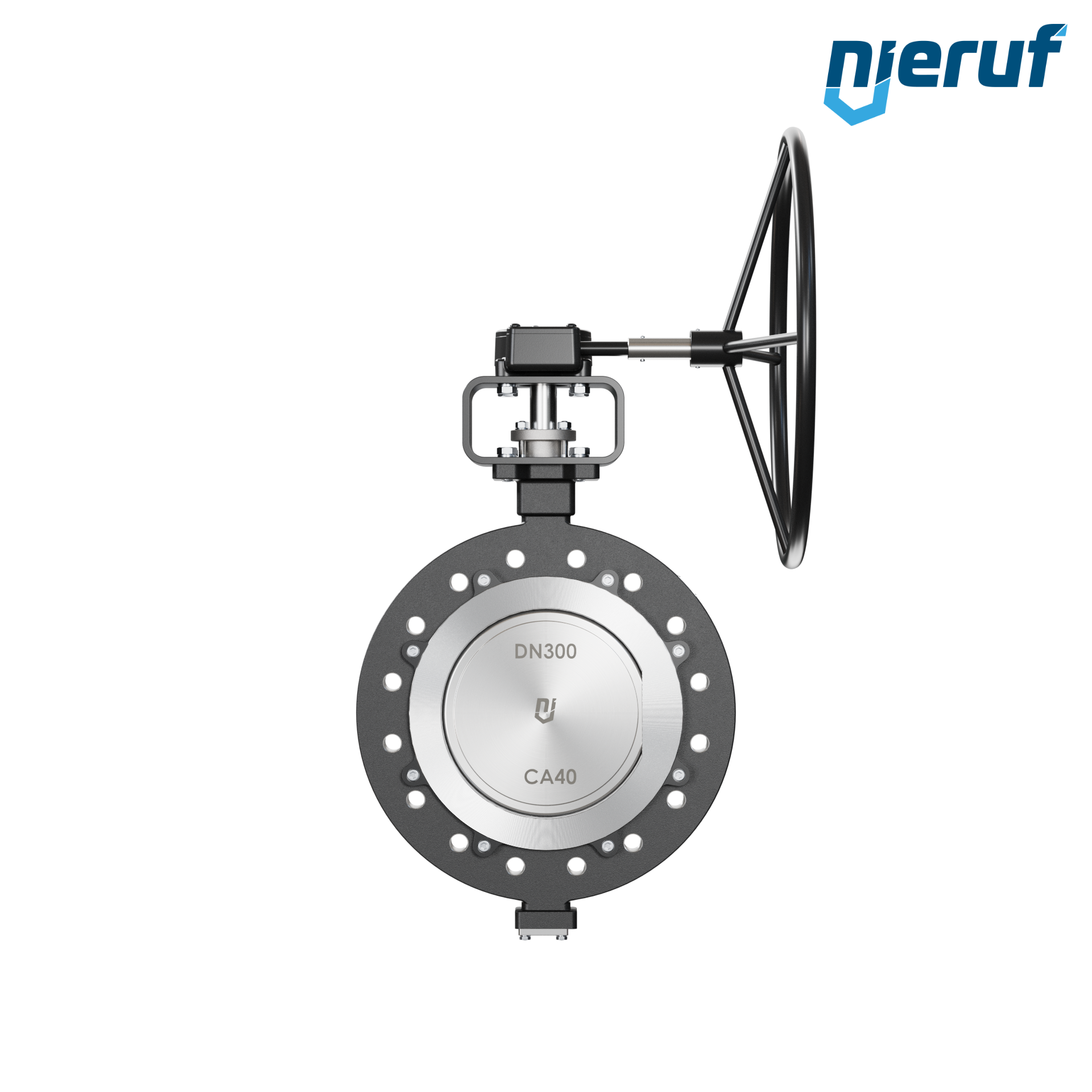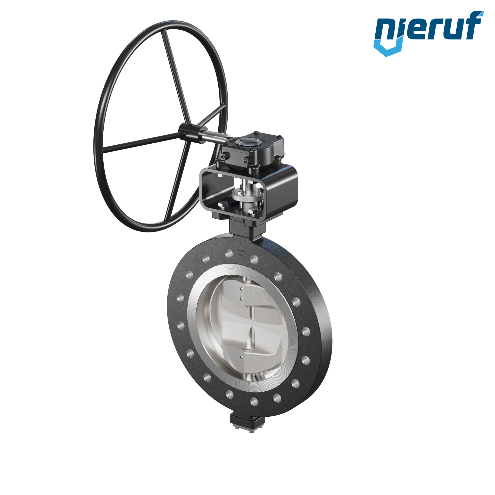 2-fach exzentrische Absperrklappe Gewindeaugen AK12 DN 300 PN25 mit Gehäuse aus Stahlguss max. 25 bar Getriebe