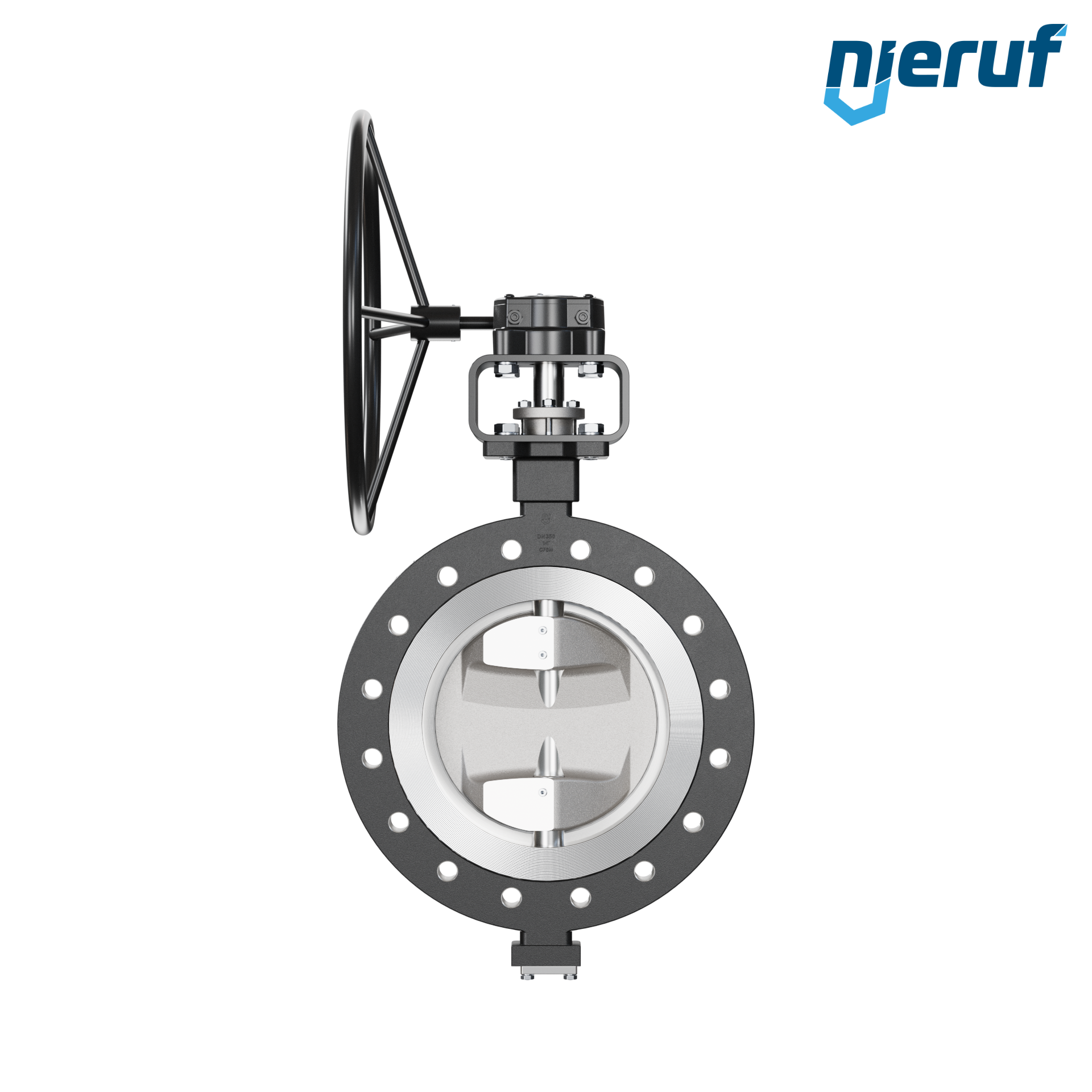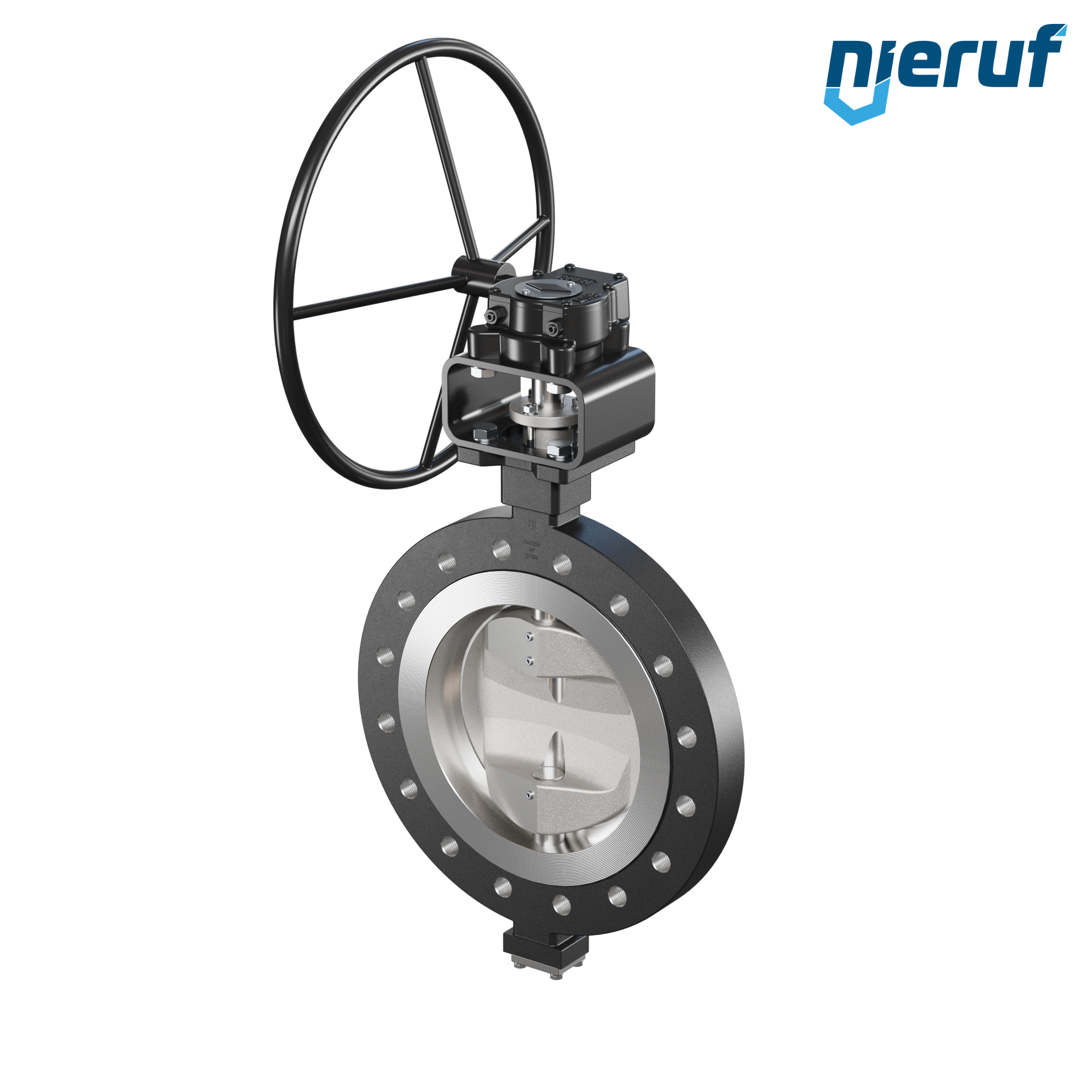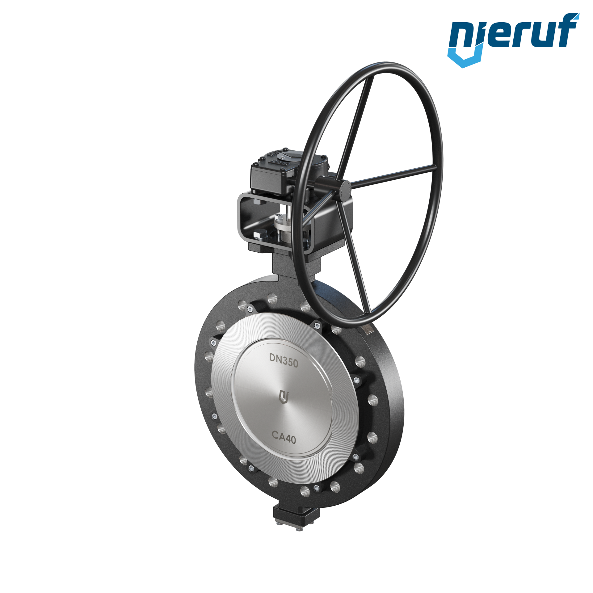 Doppelexzentrische Absperrklappe Gewindeaugen AK12 DN 350 PN25 mit Gehäuse aus Stahlguss max. 25 bar Getriebe