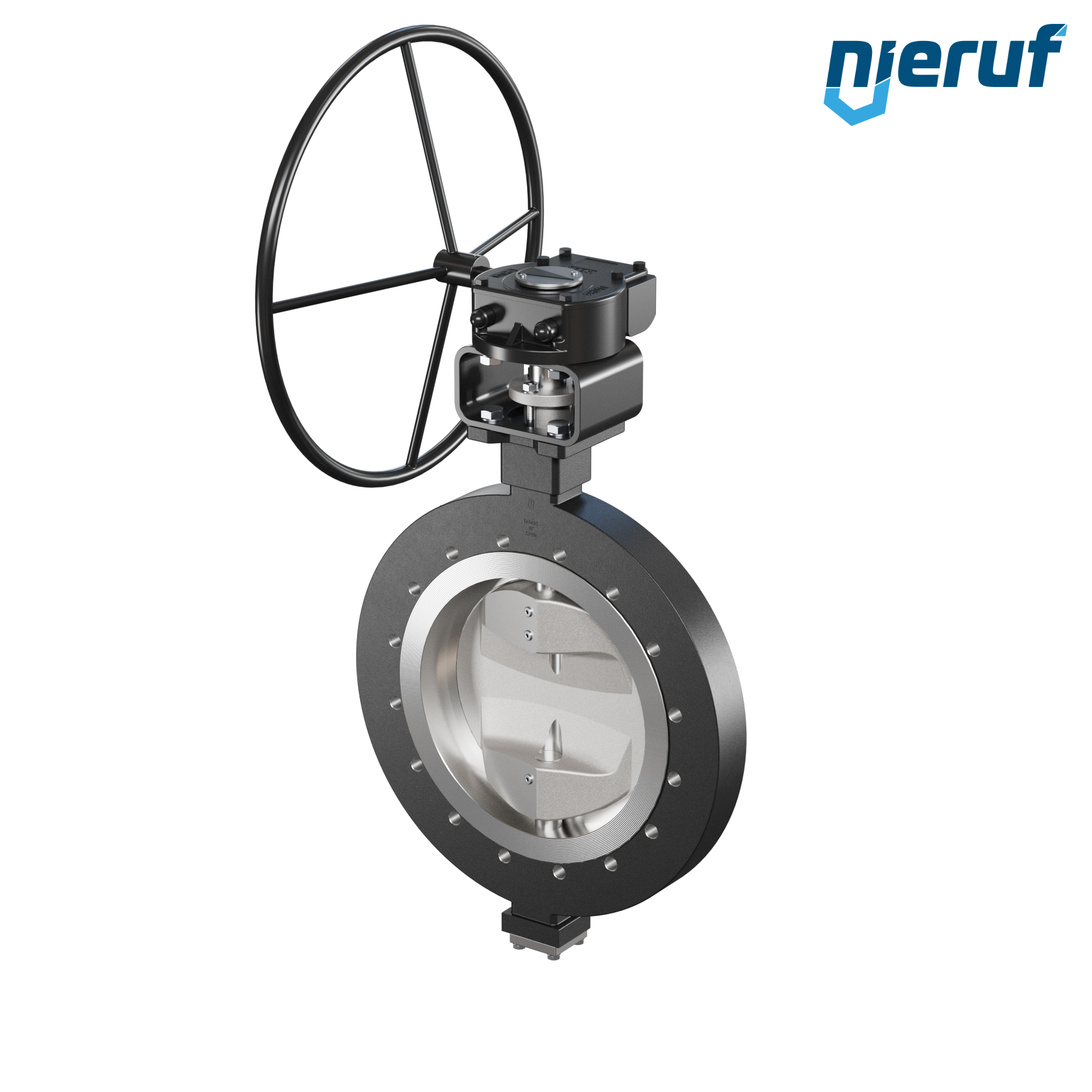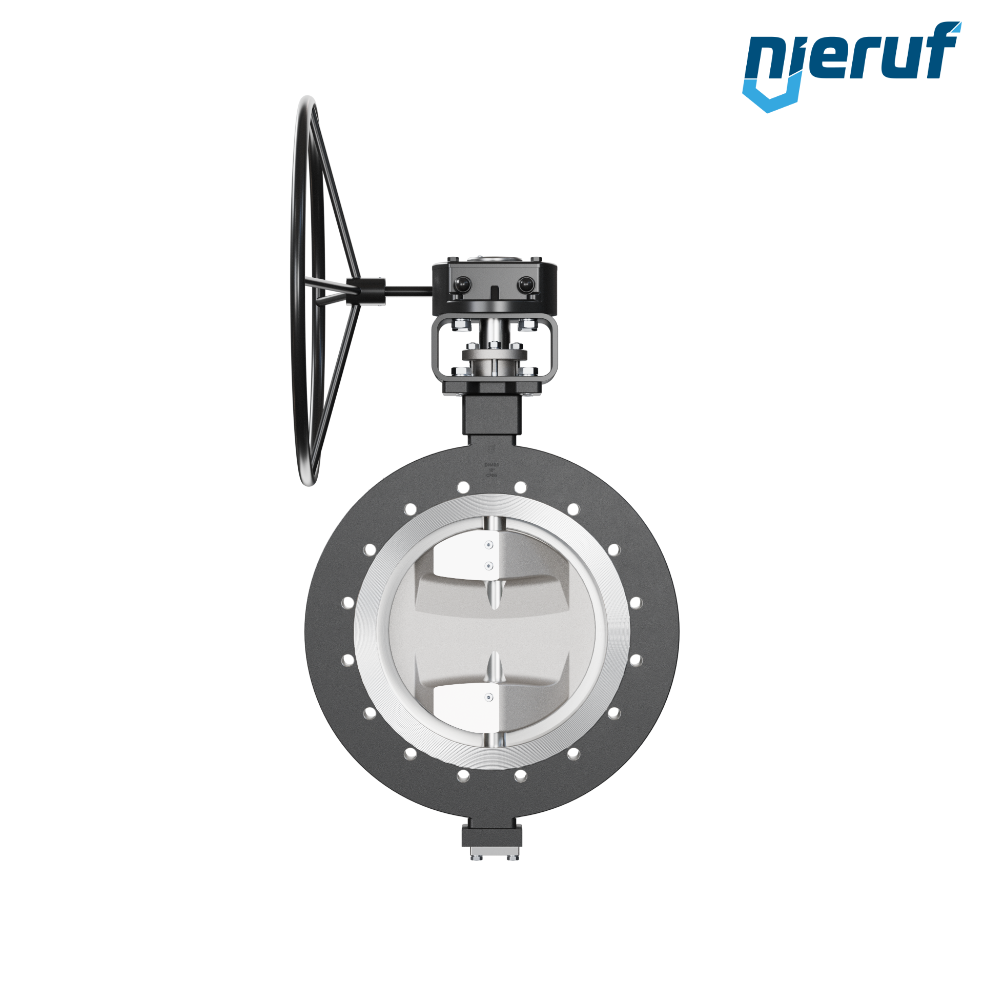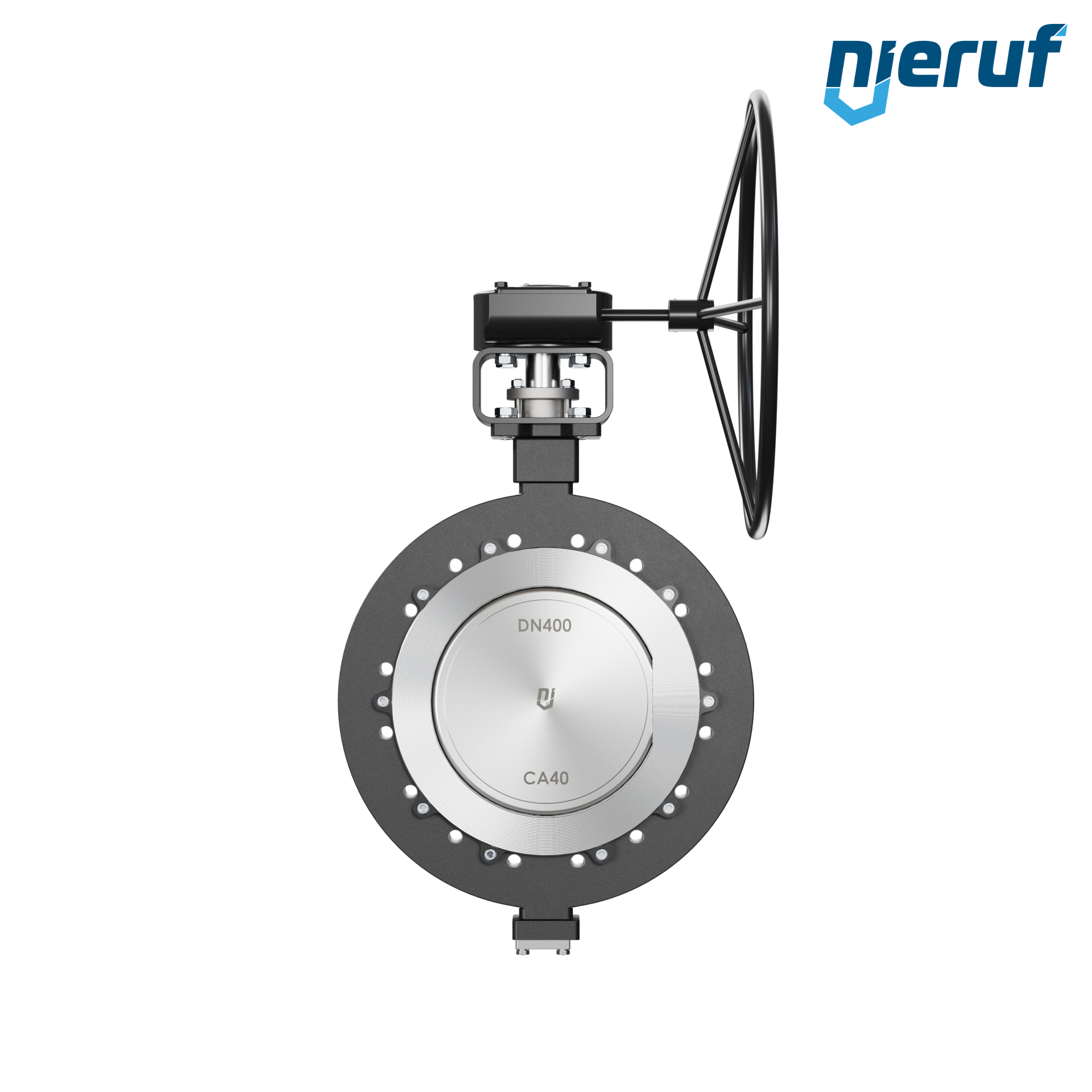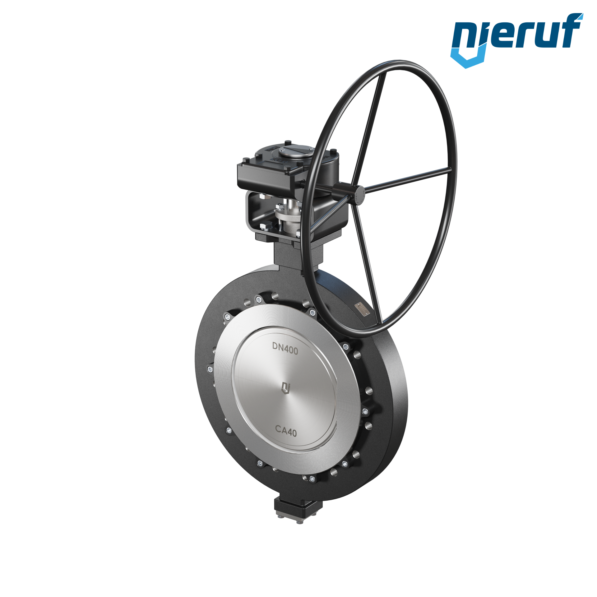Doppelexzentrische Absperrklappe Gewindeaugen AK12 DN 400 PN10 mit Gehäuse aus Stahlguss max. 25 bar Getriebe