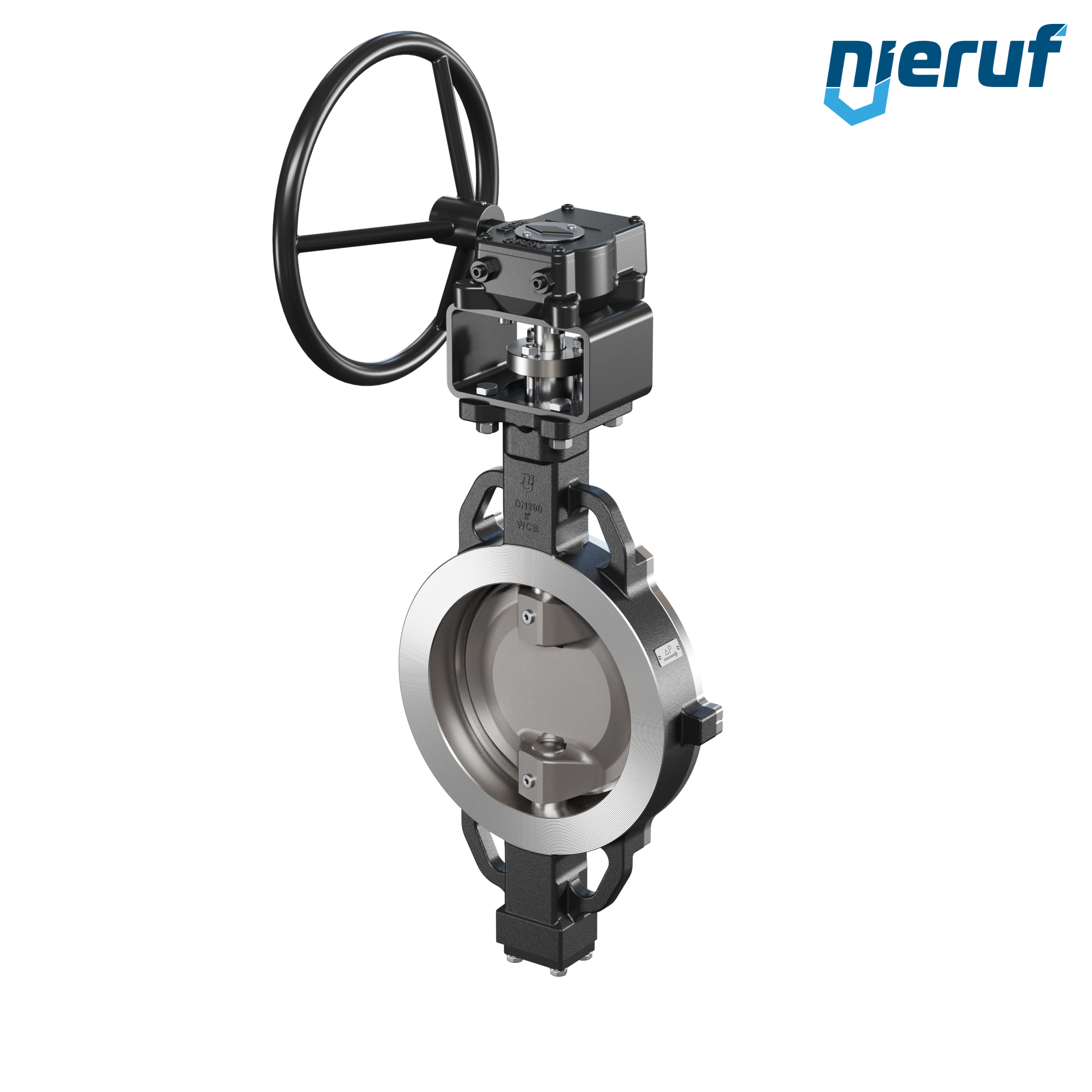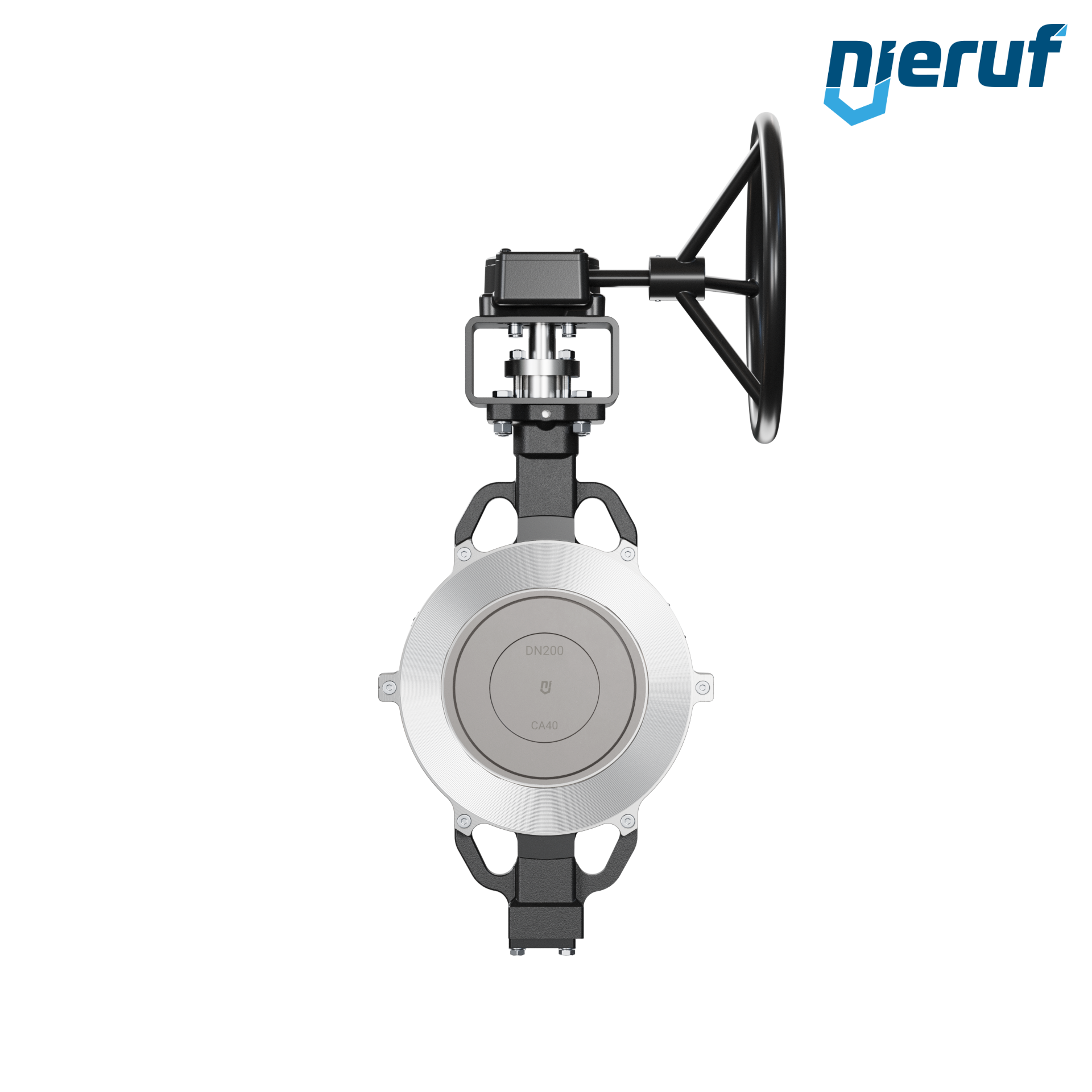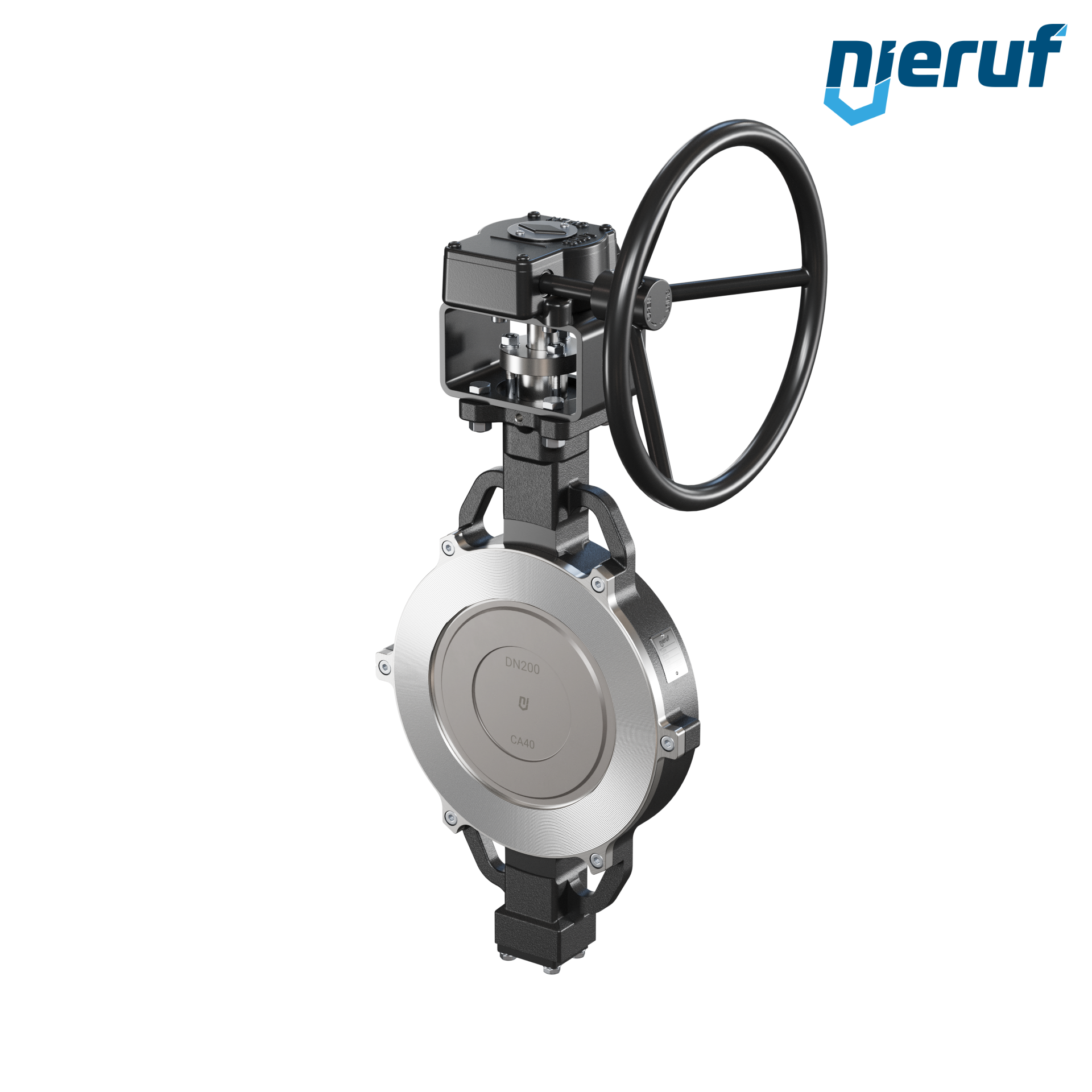 Dreifach-exzentrische Absperrklappe Zentrieraugen AK13 DN 200 PN10-PN16-PN25-PN40 & ANSI150-ANSI300 mit Gehäuse aus Stahlguss max. 40 bar Getriebe