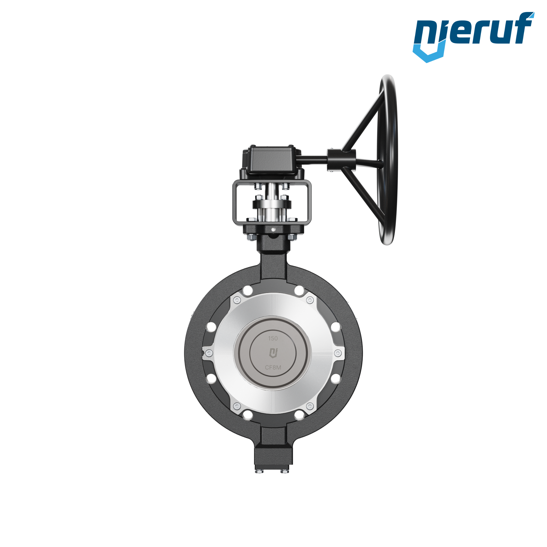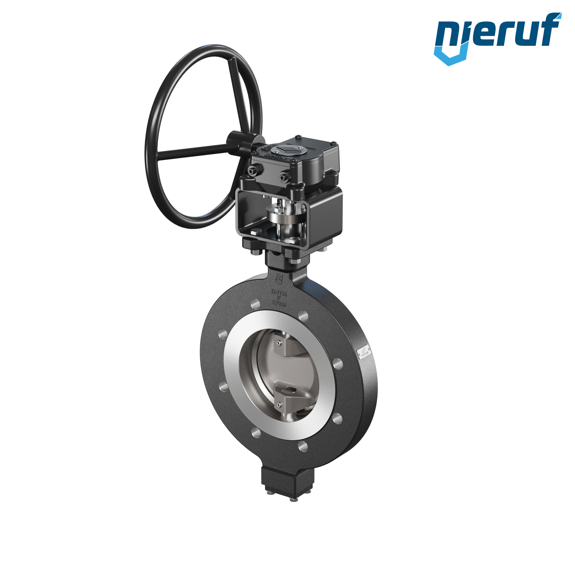3-fach exzentrische Absperrklappe Gewindeaugen AK14 DN 150 PN10-PN16 mit Gehäuse aus Stahlguss max. 40 bar Getriebe