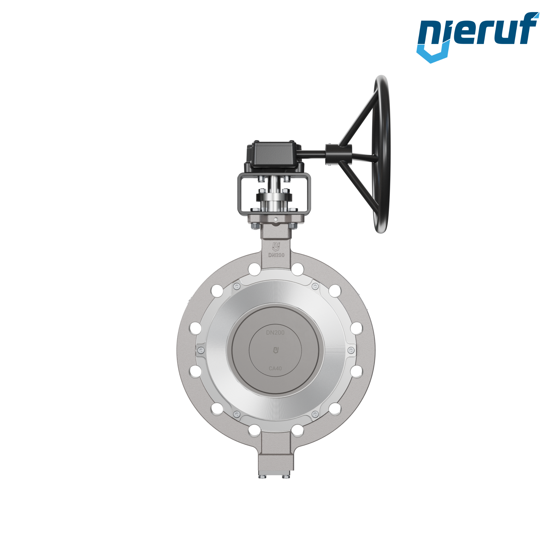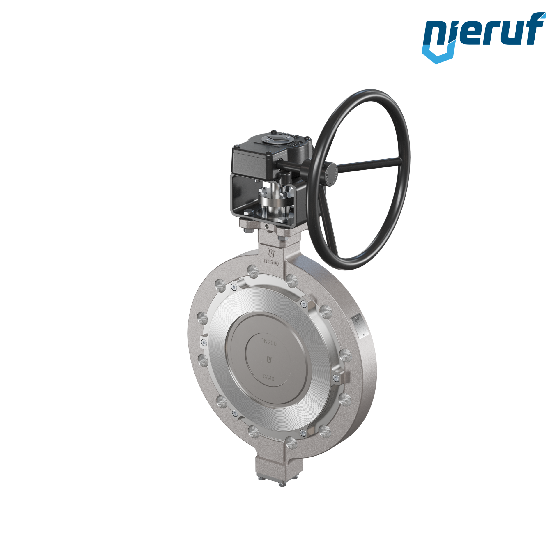 Dreifachexzentrische Absperrklappe Gewindeaugen AK14 DN 200 ANSI150 mit Gehäuse aus Edelstahl max. 40 bar Getriebe