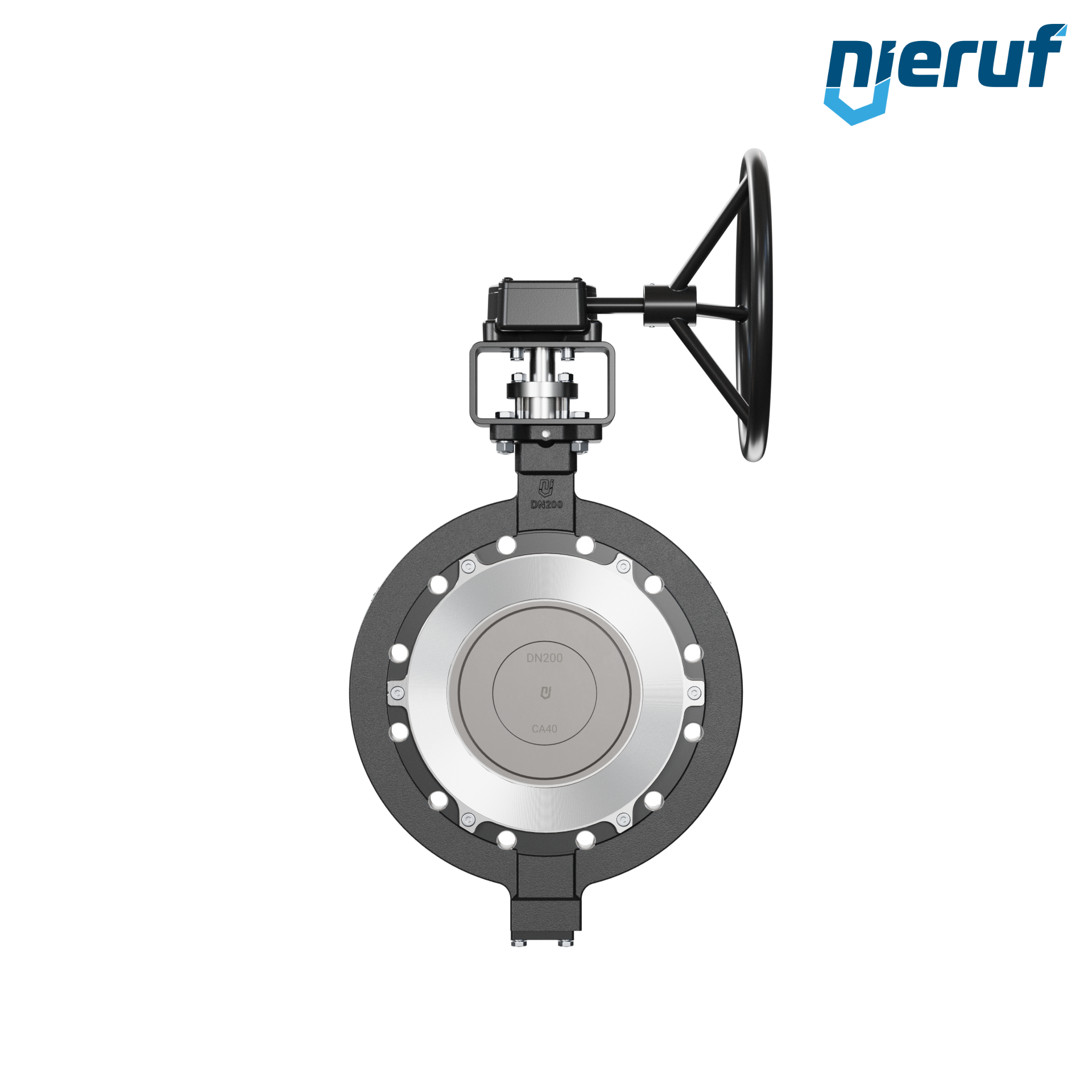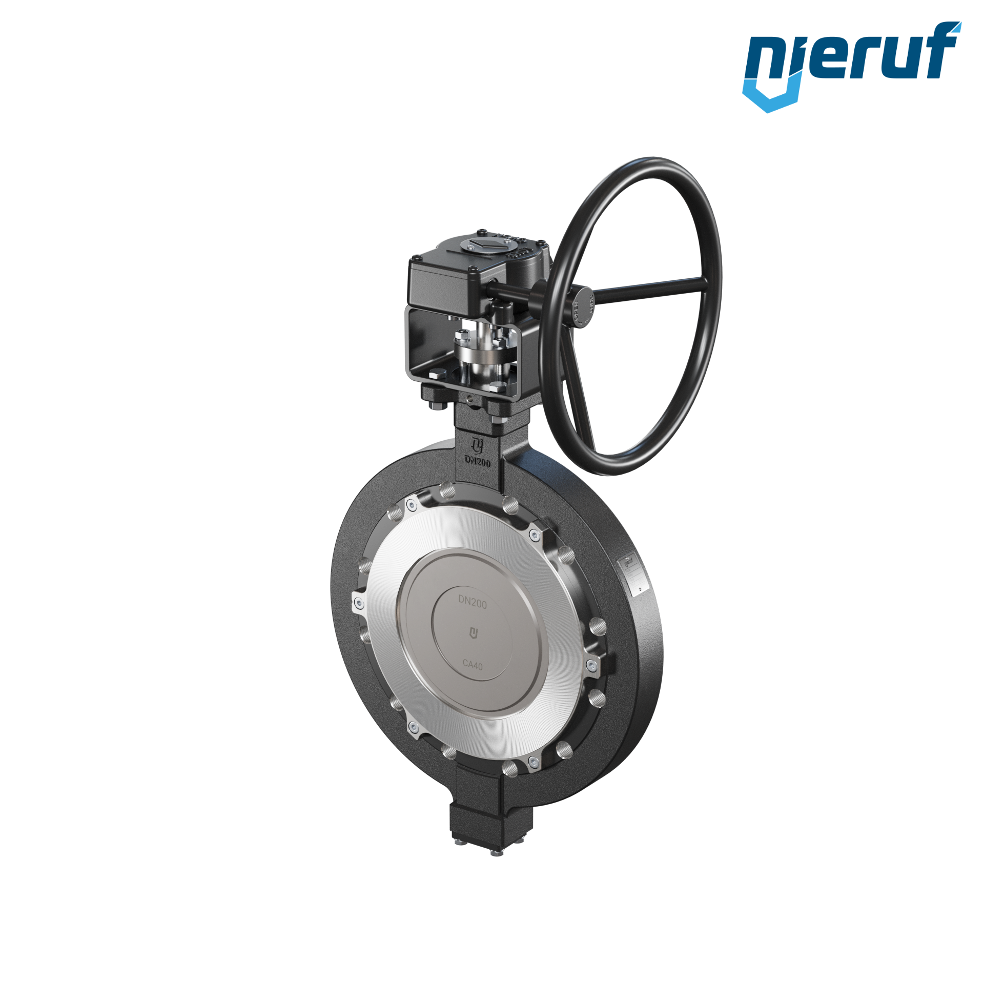 3-fach exzentrische Absperrklappe Gewindeaugen AK14 DN 200 PN16 mit Gehäuse aus Stahlguss max. 40 bar Getriebe