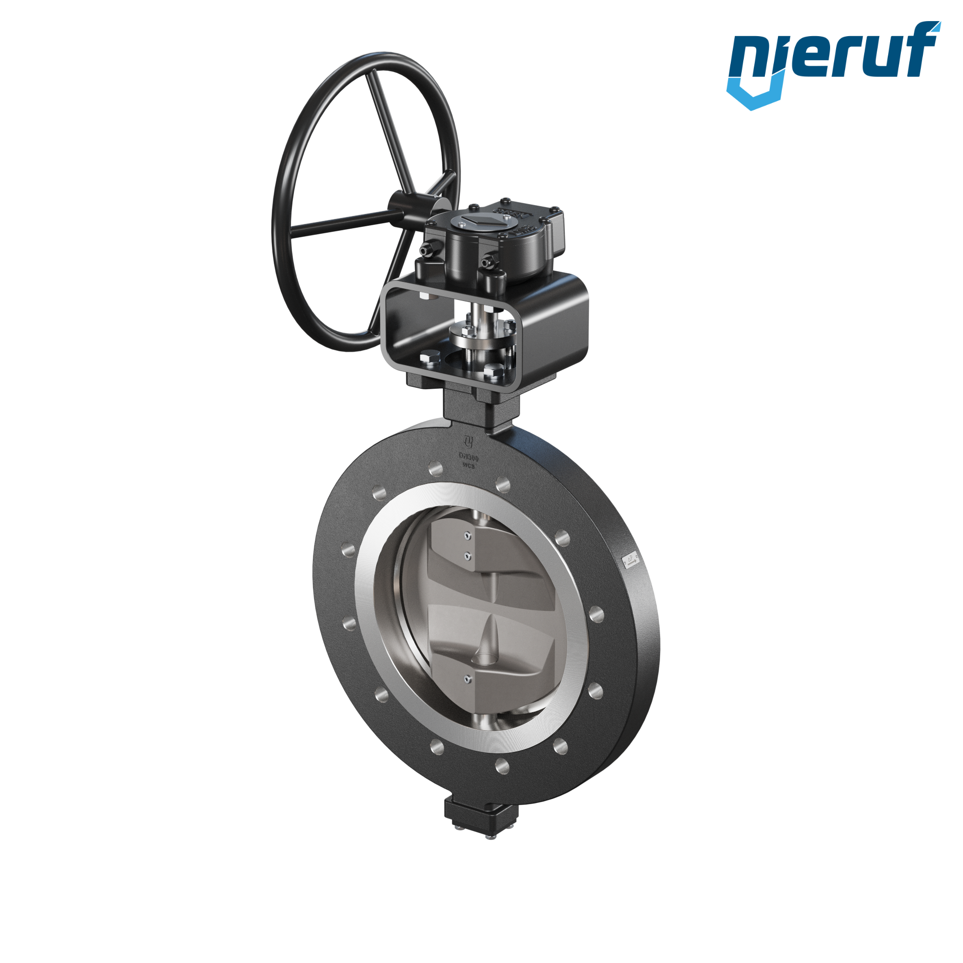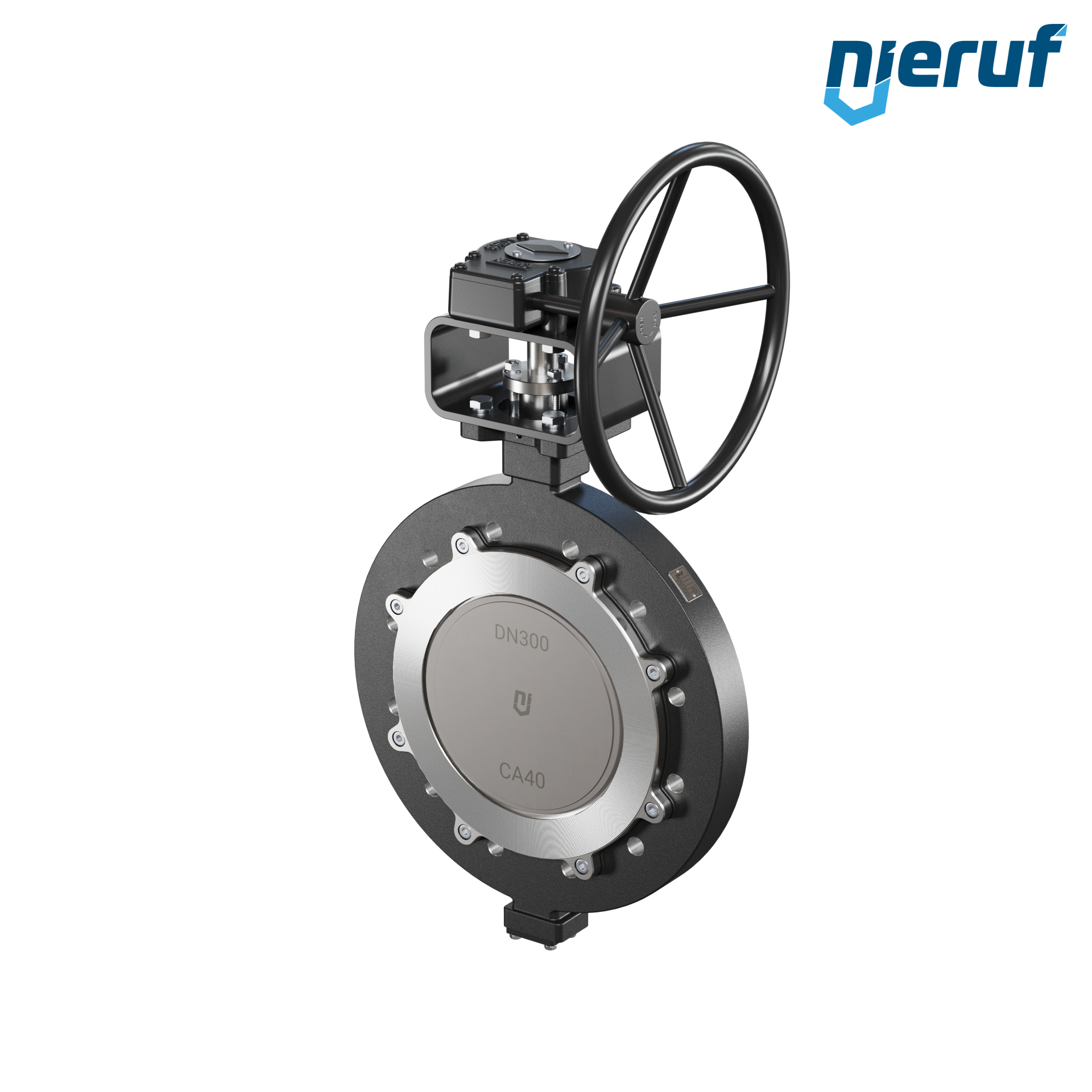 3-fach exzentrische Absperrklappe Gewindeaugen AK14 DN 300 PN16 mit Gehäuse aus Stahlguss max. 25 bar Getriebe