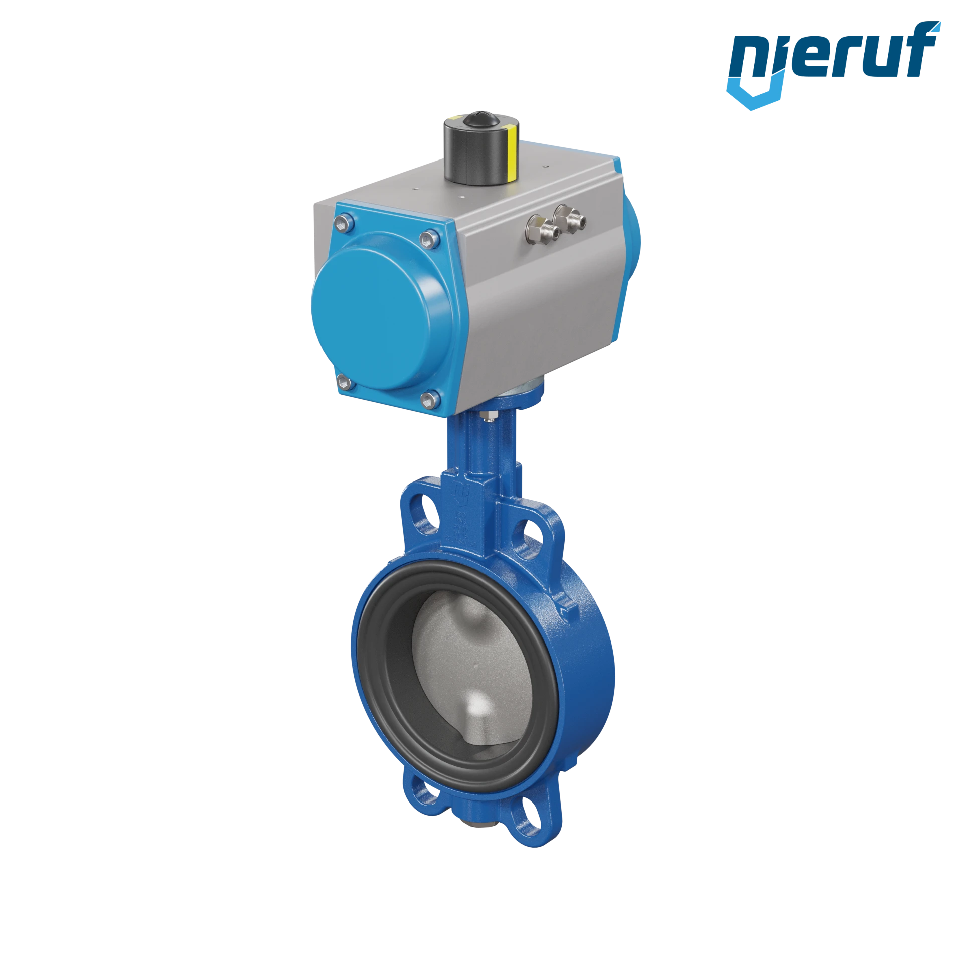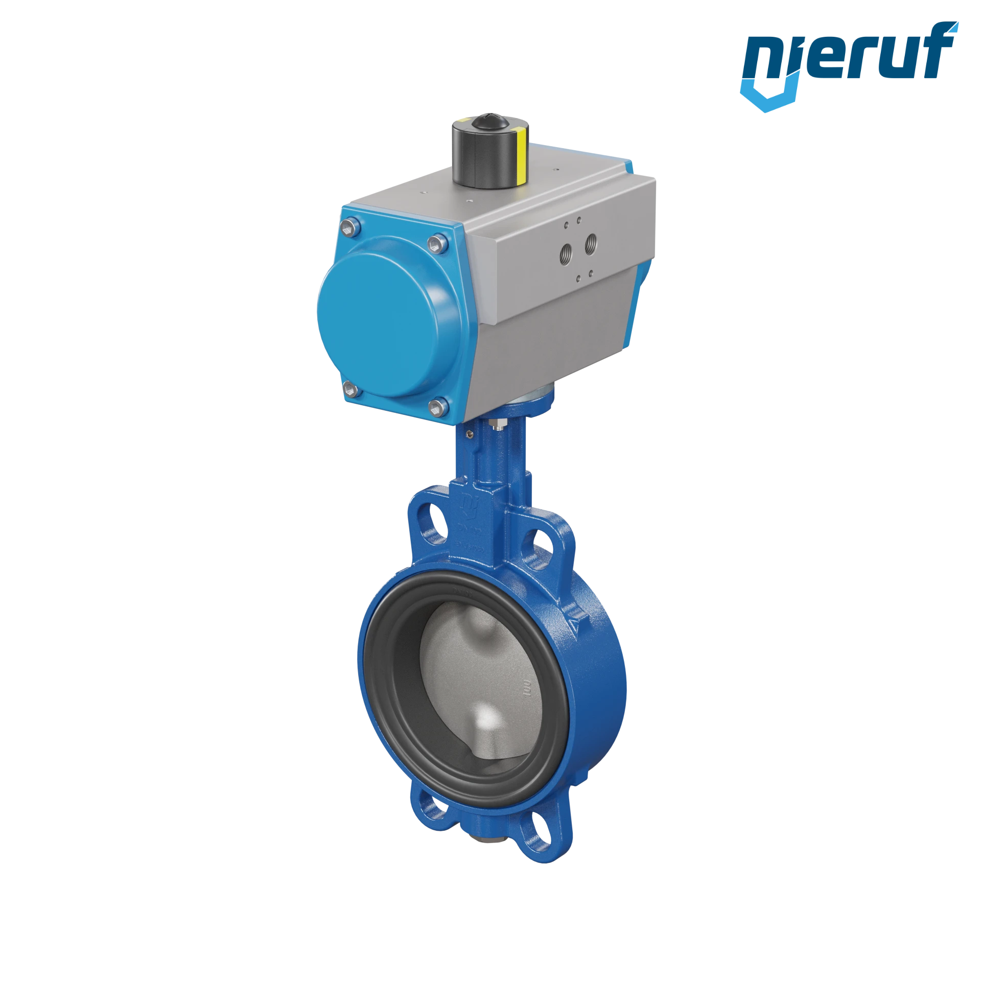Absperrklappe DN 100 mit Zentrieraugen Gehäuse aus Sphäroguss mit pneumatischer Schwenkantrieb doppeltwirkend Manschette aus FPM